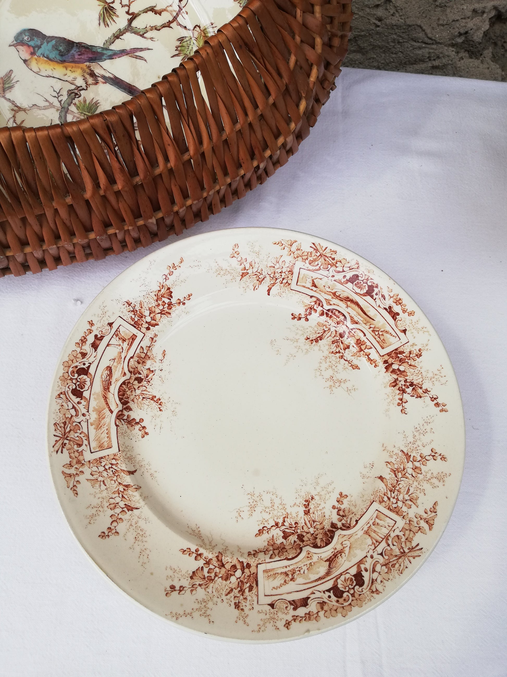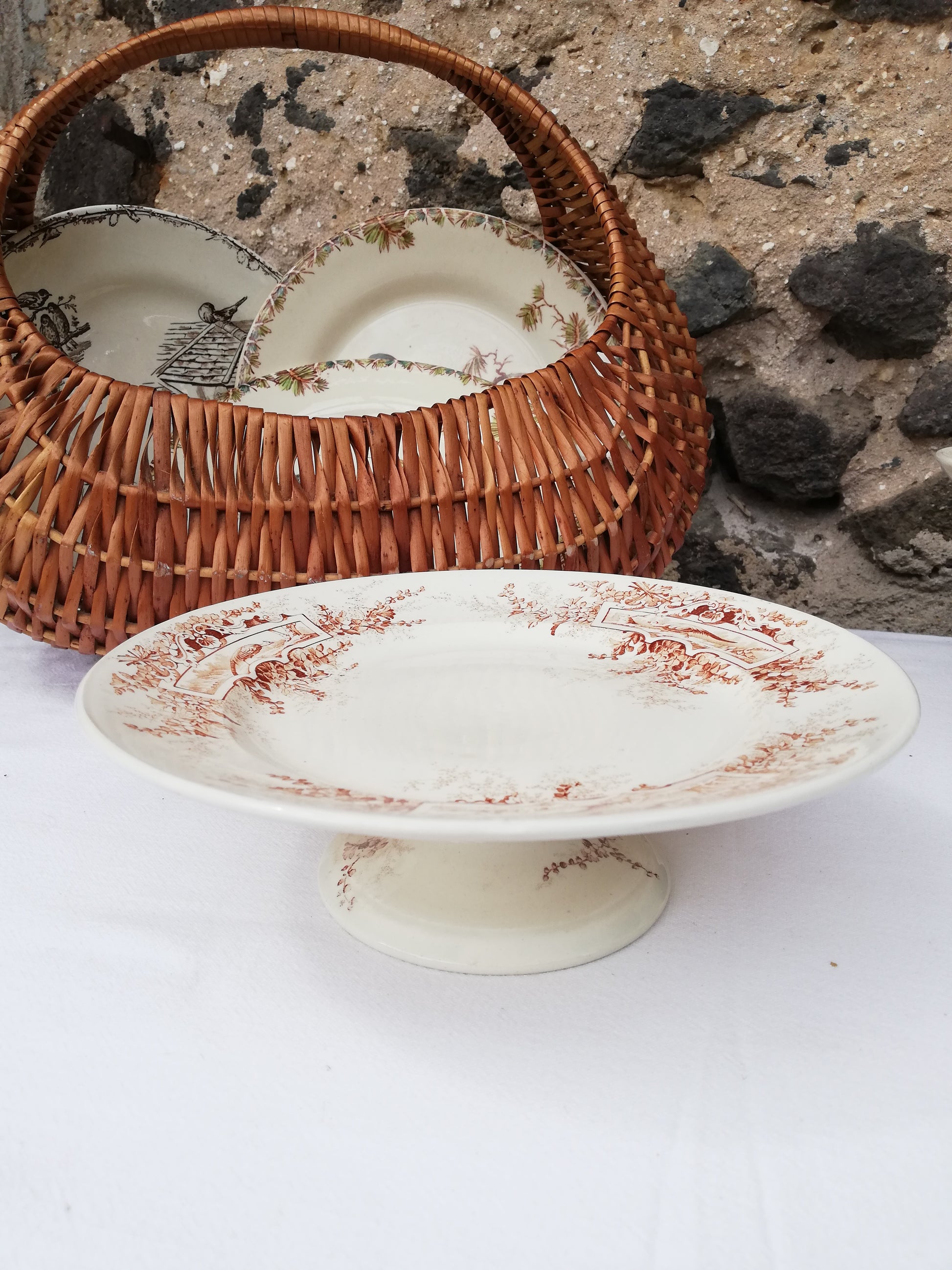 Niedrige Kompottschale aus Sepia-Eisenton, Modell KG Luneville, Modell Faisan