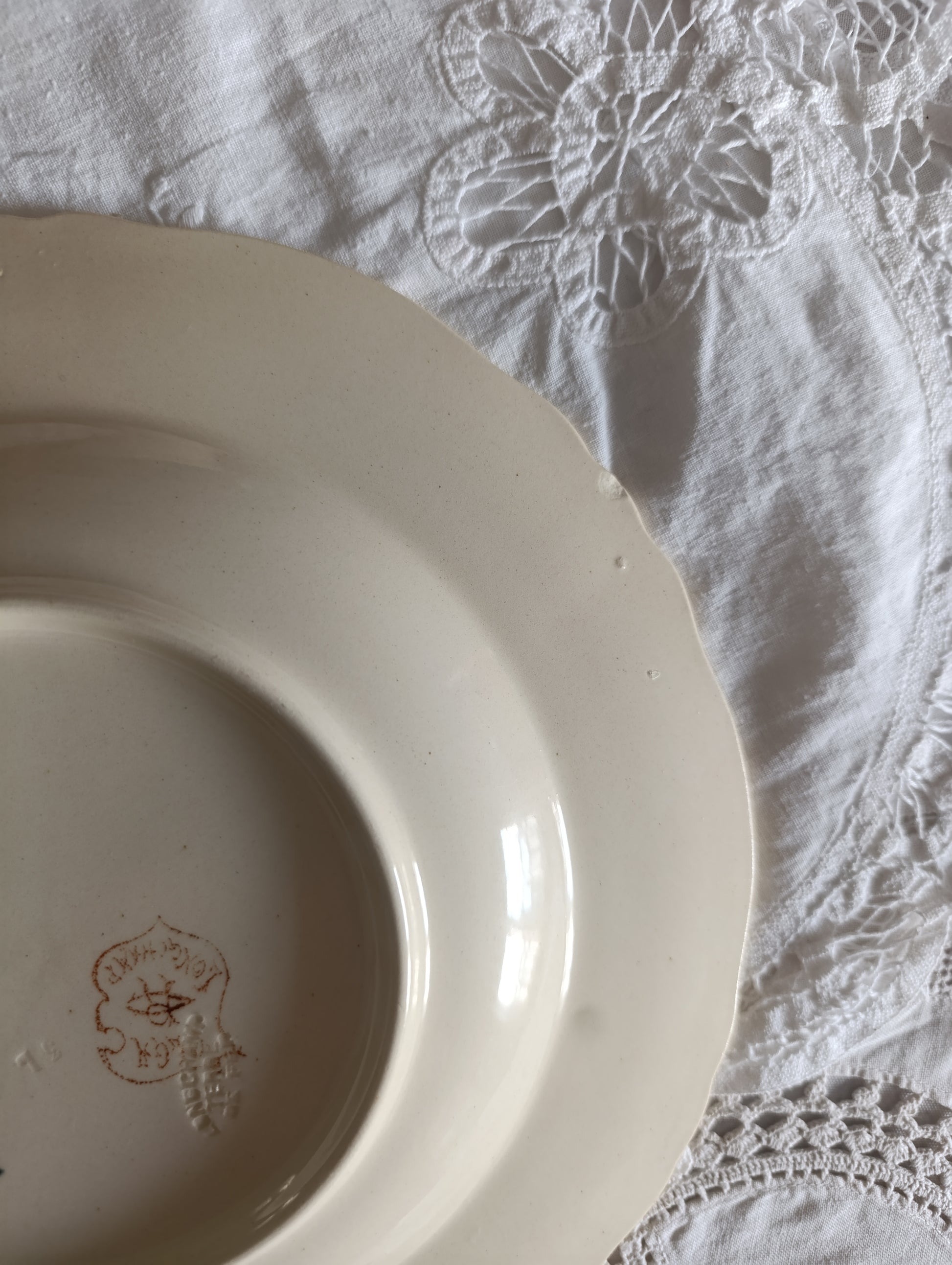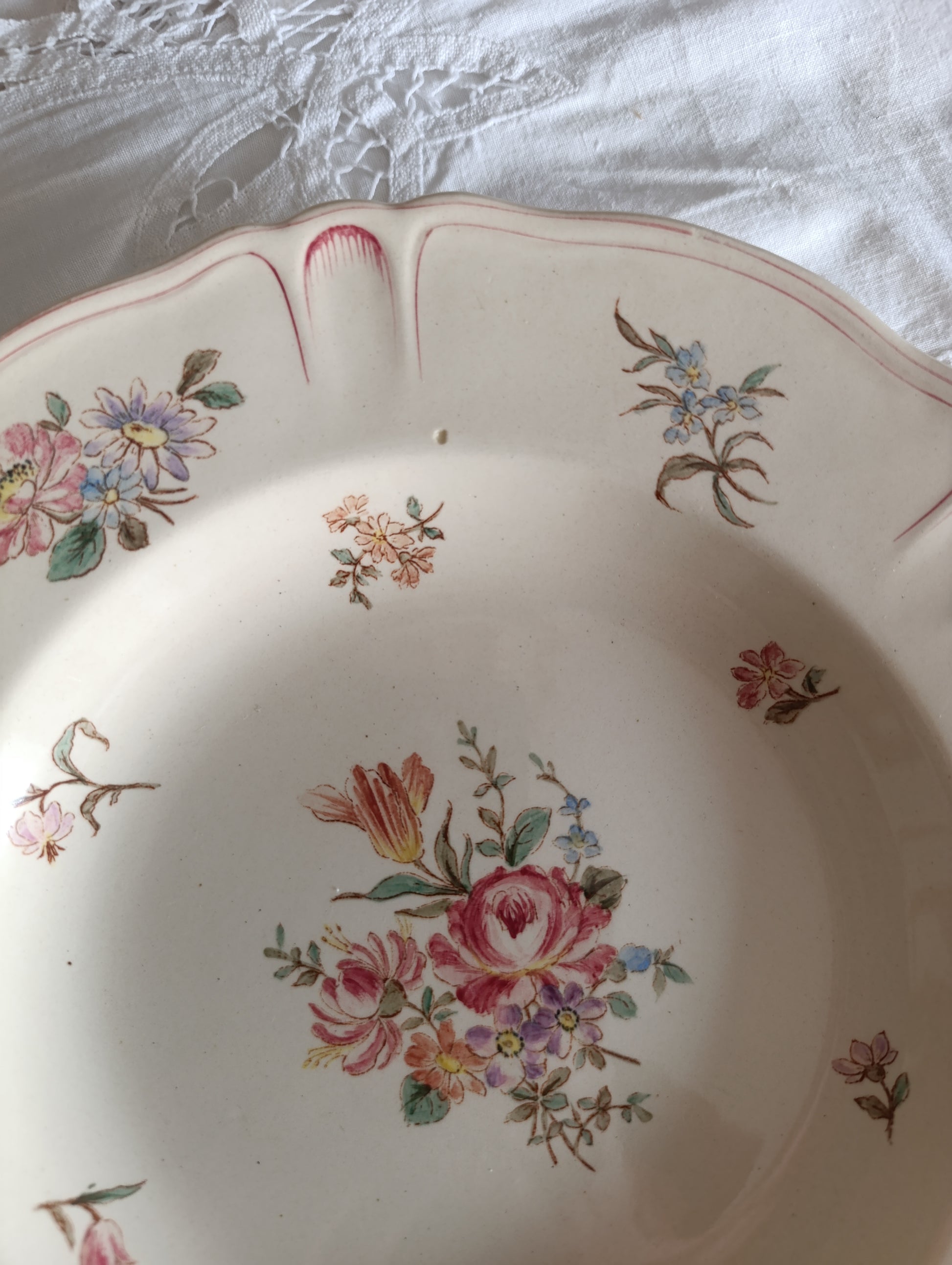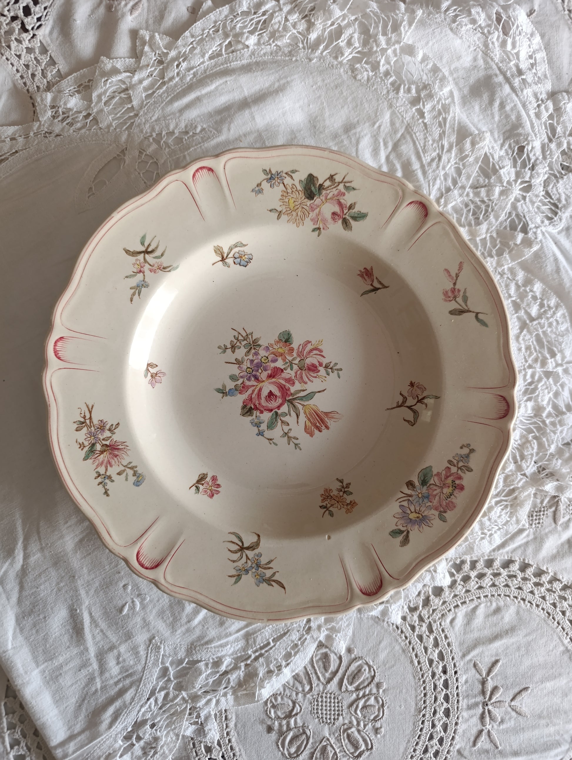Assiette à soupe en terre de fer polychrome décoré de fleurs modèle Olga de Longchamp