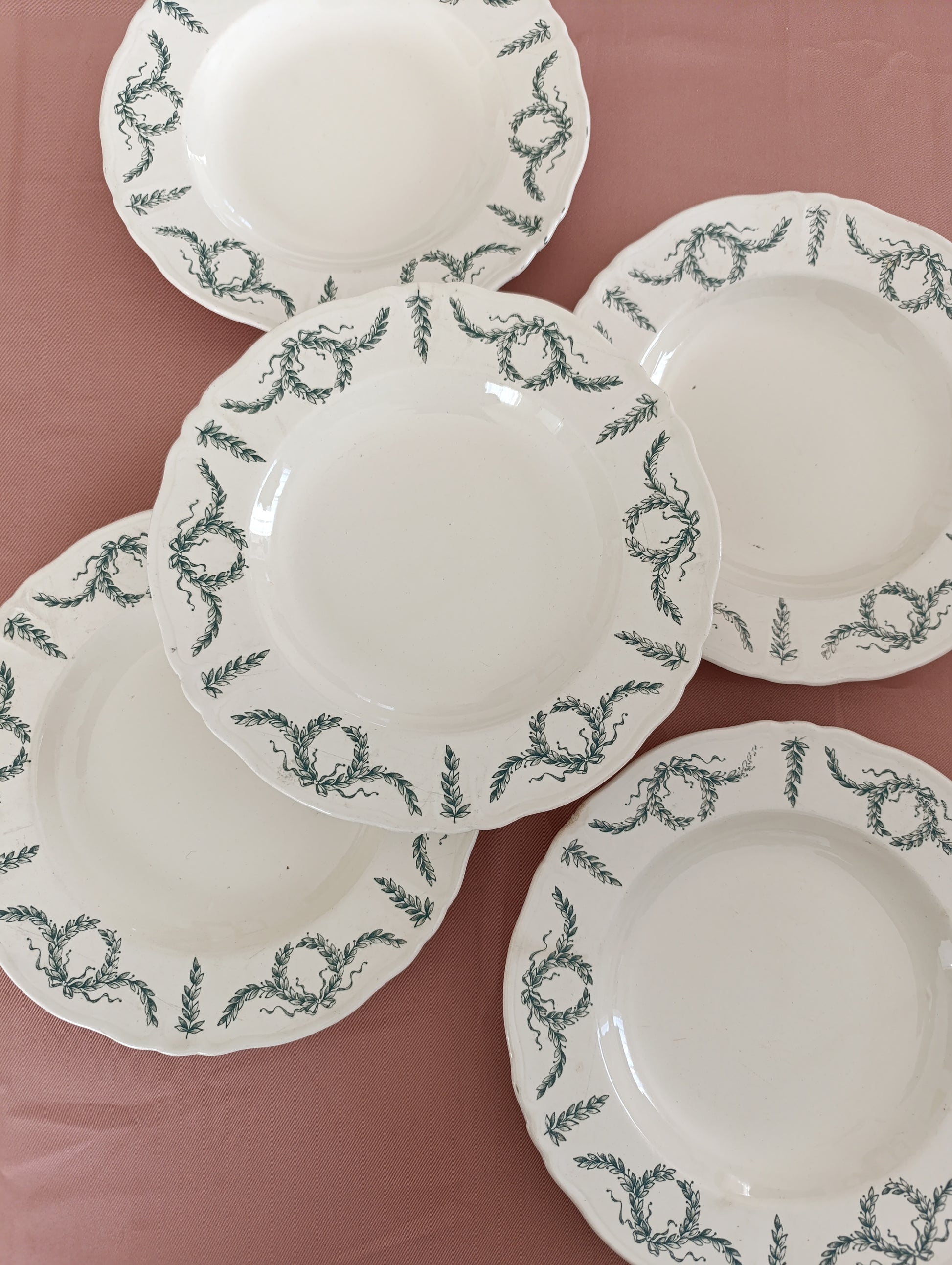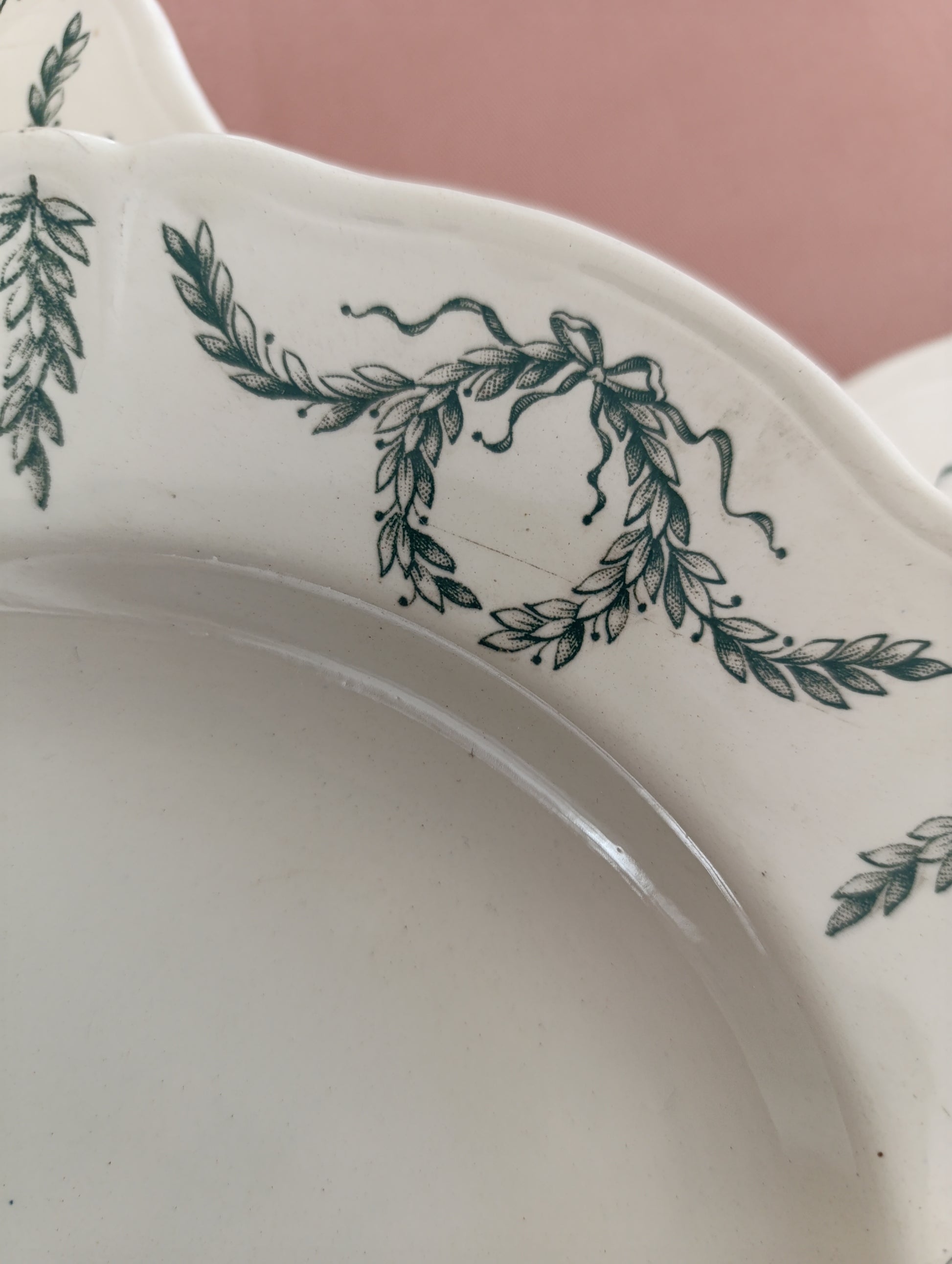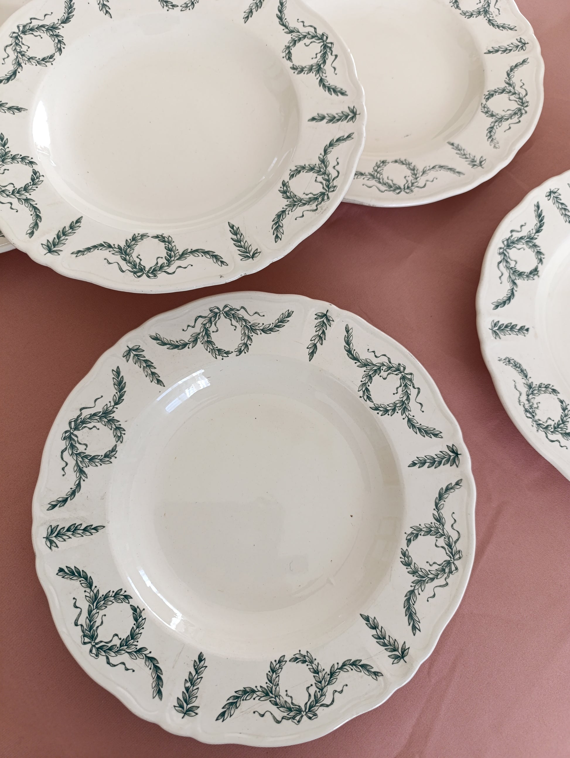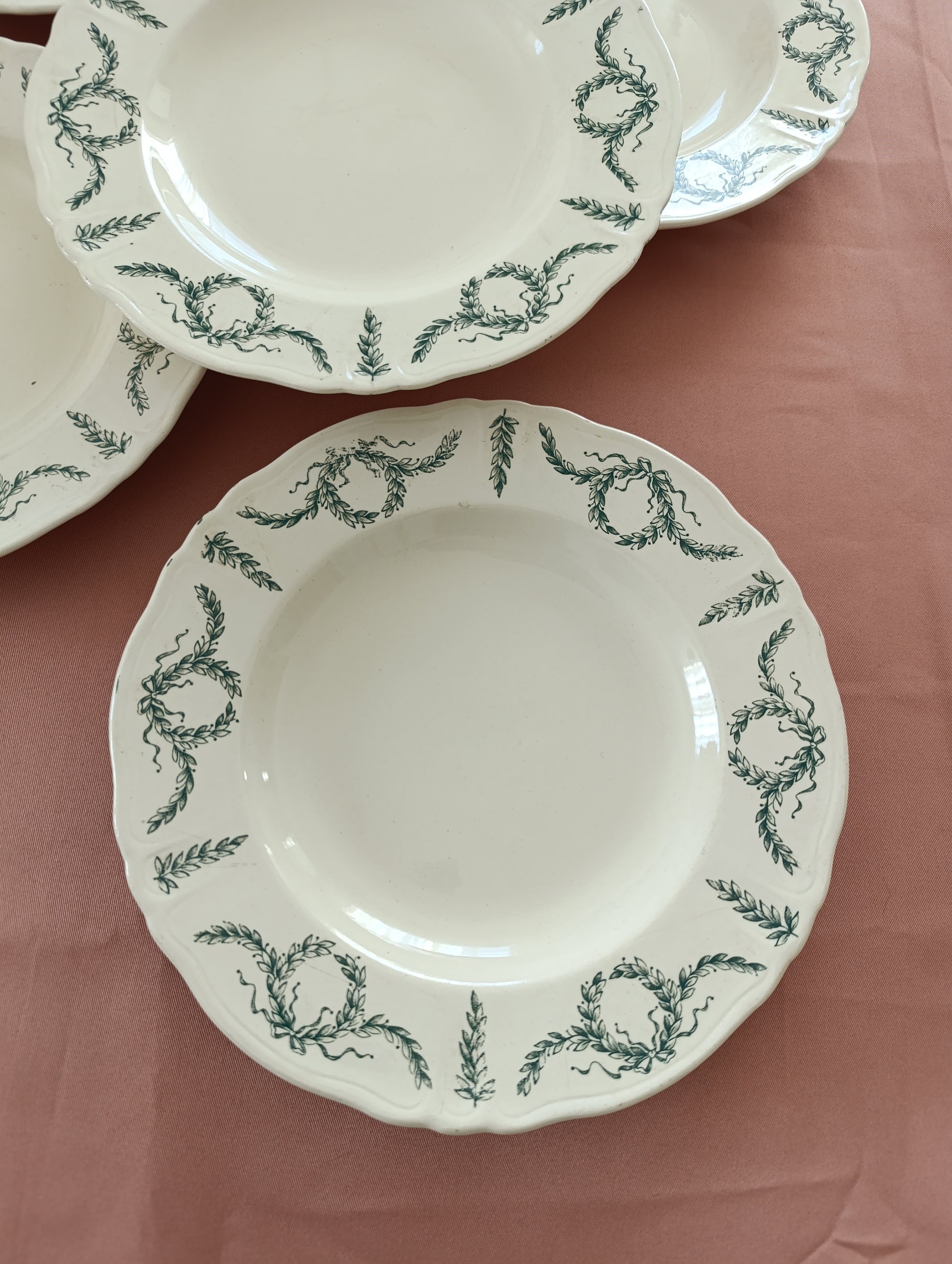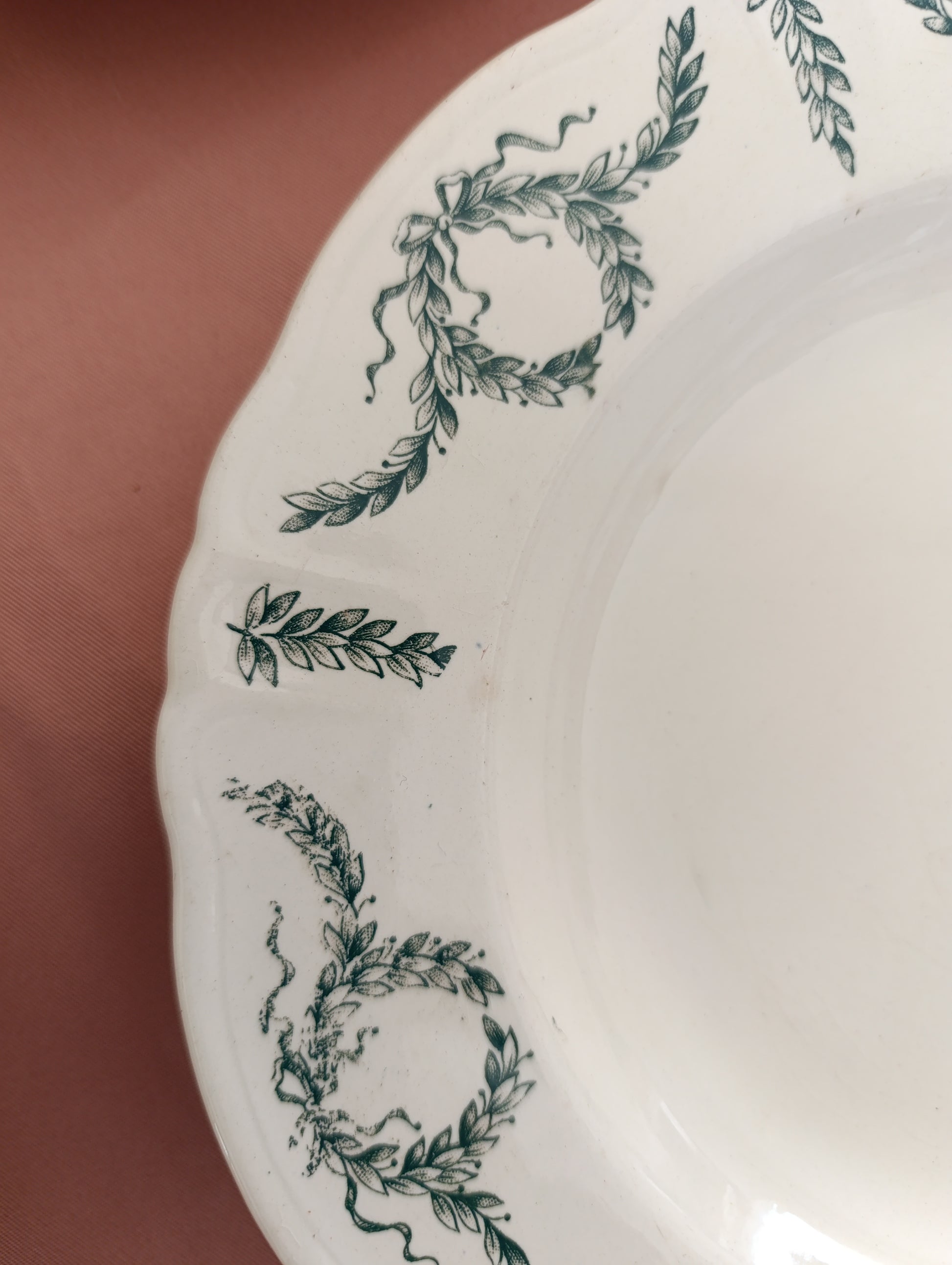 Assiette creuse ou à soupe modèle Villey de Longchamp en terre de fer motif couleur vert
