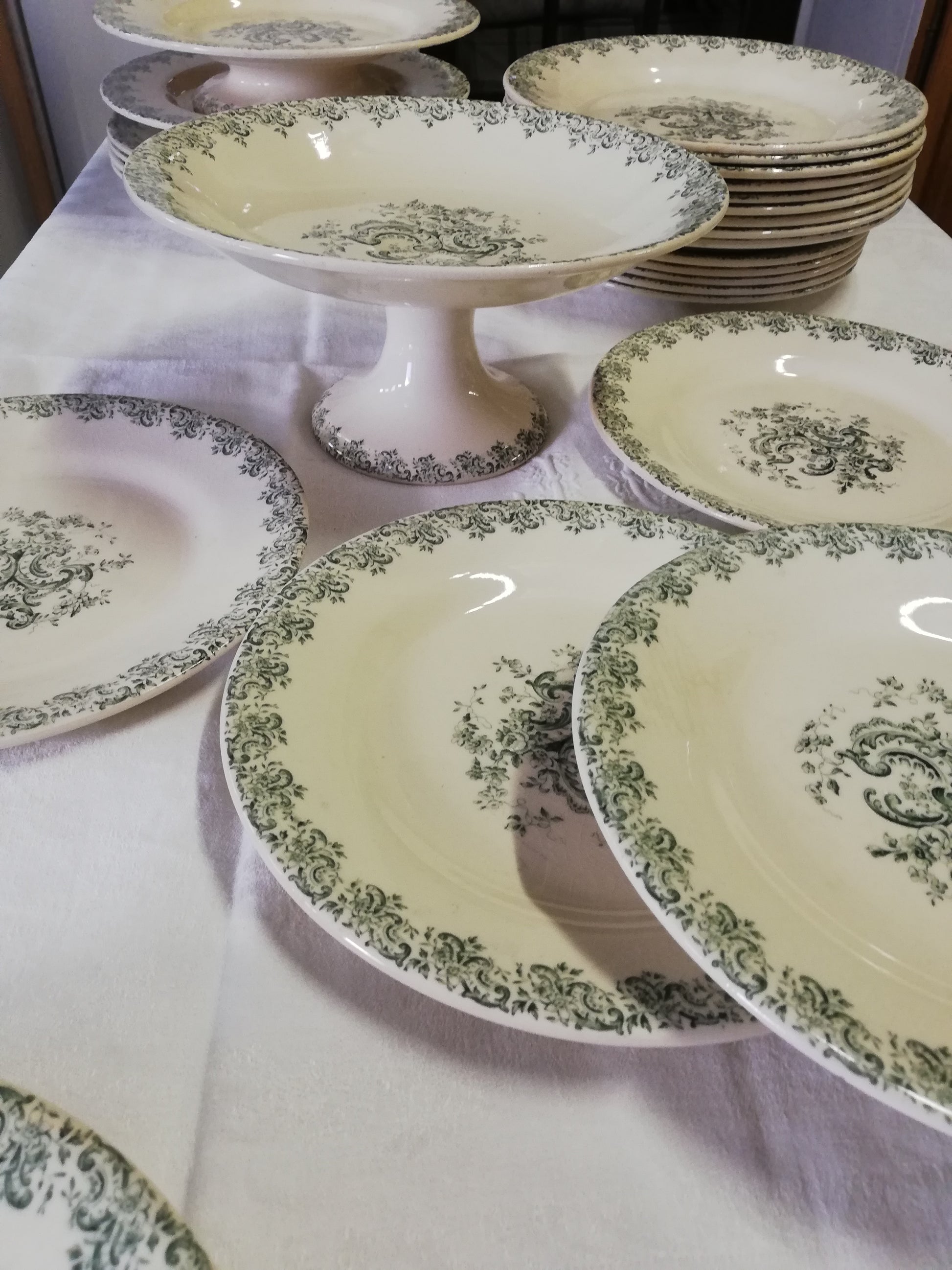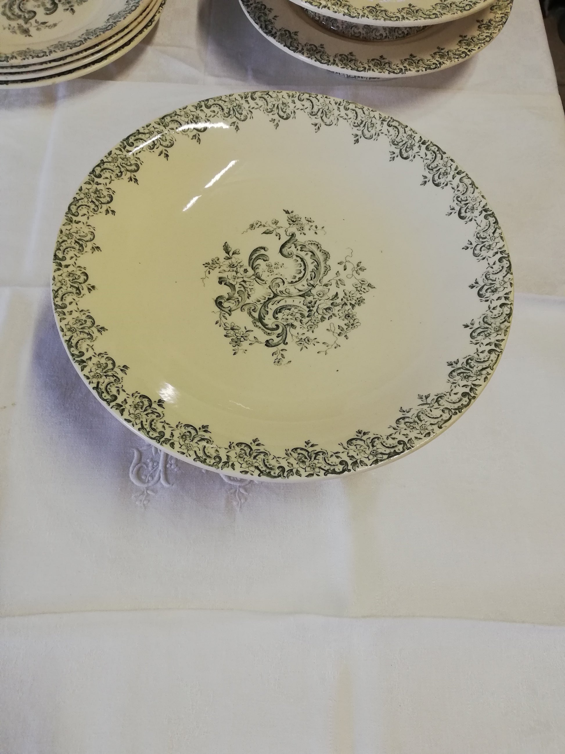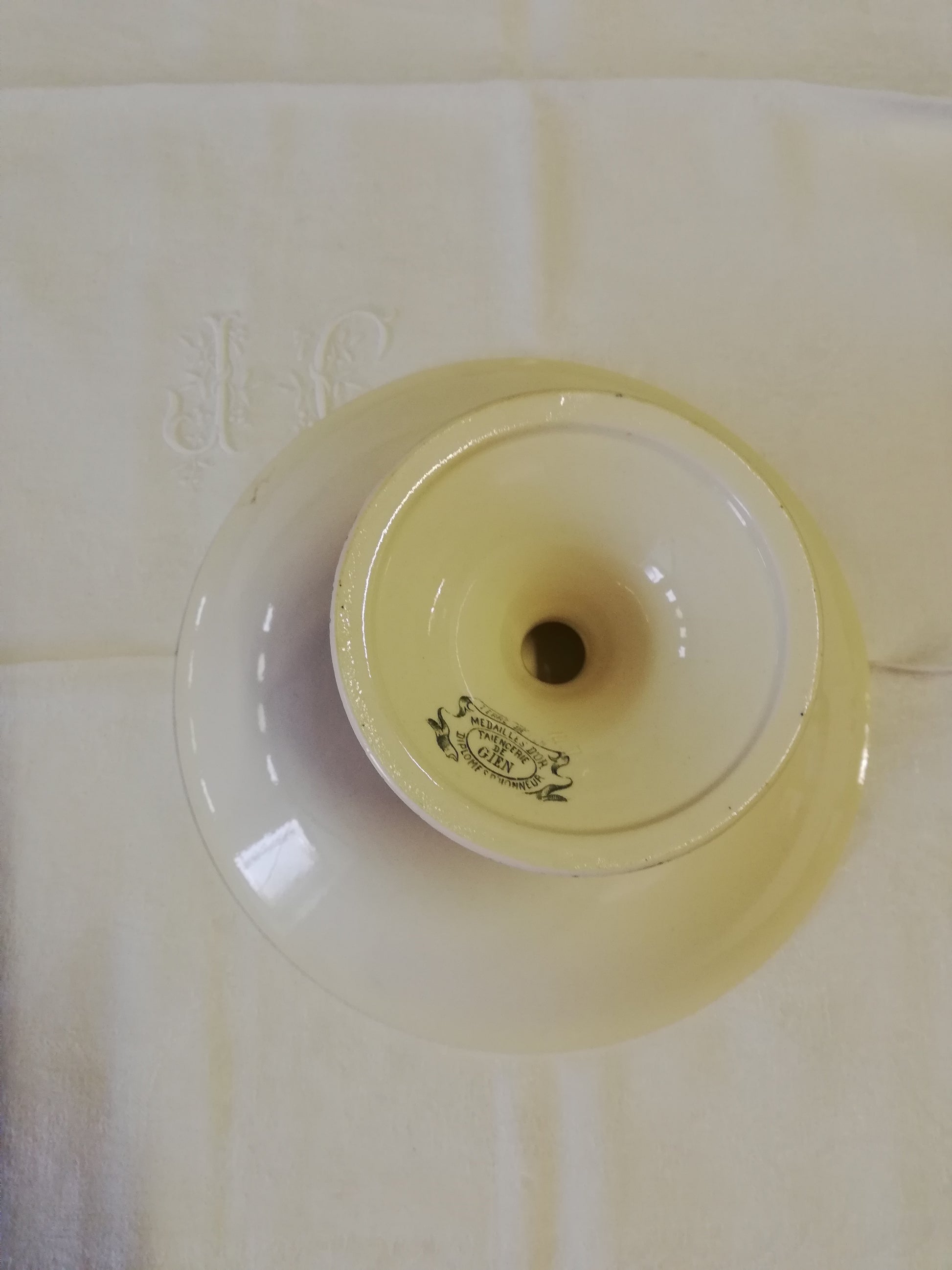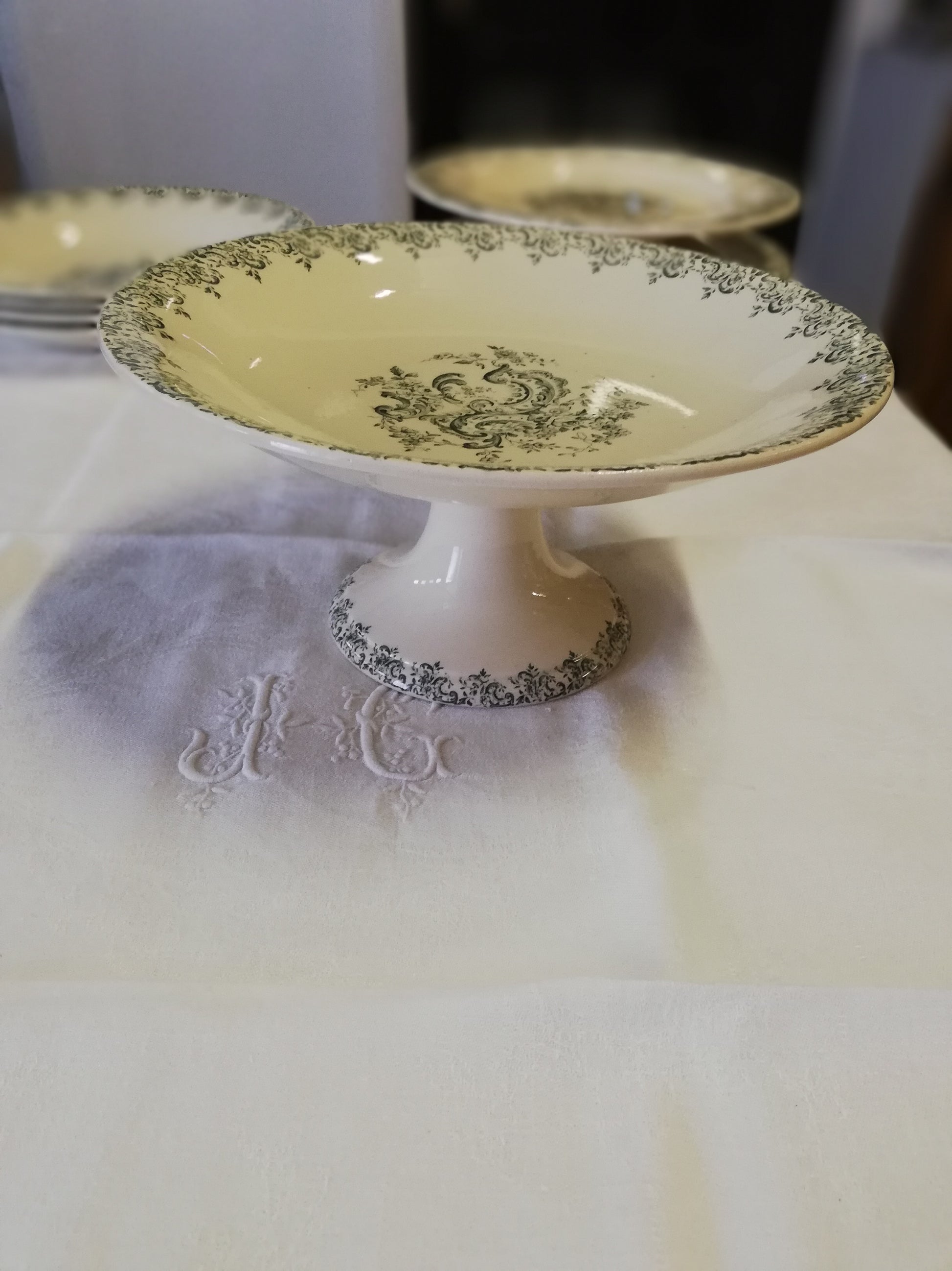 Compotier modèle Louis XV en terre de fer gris vert de Gien