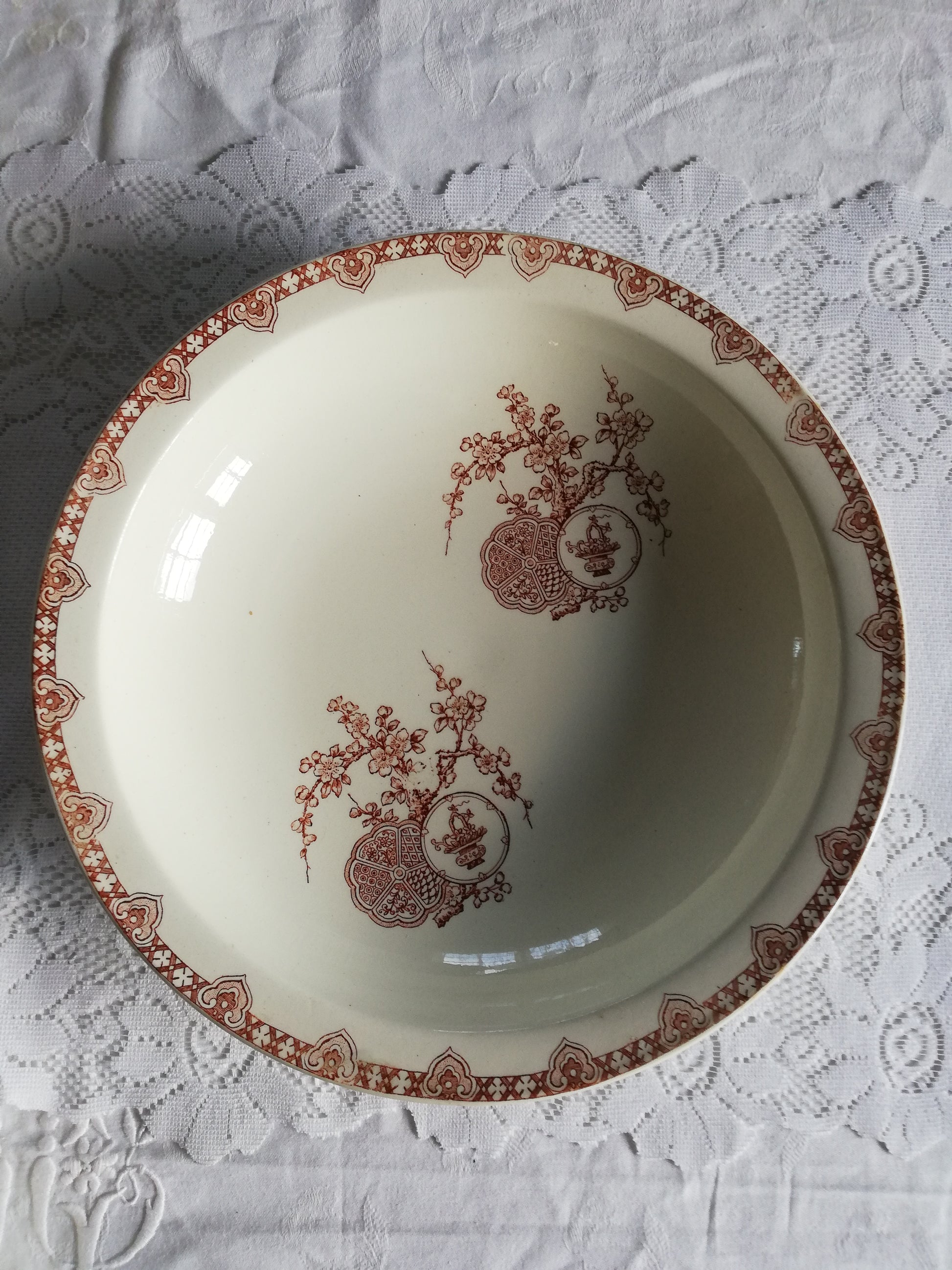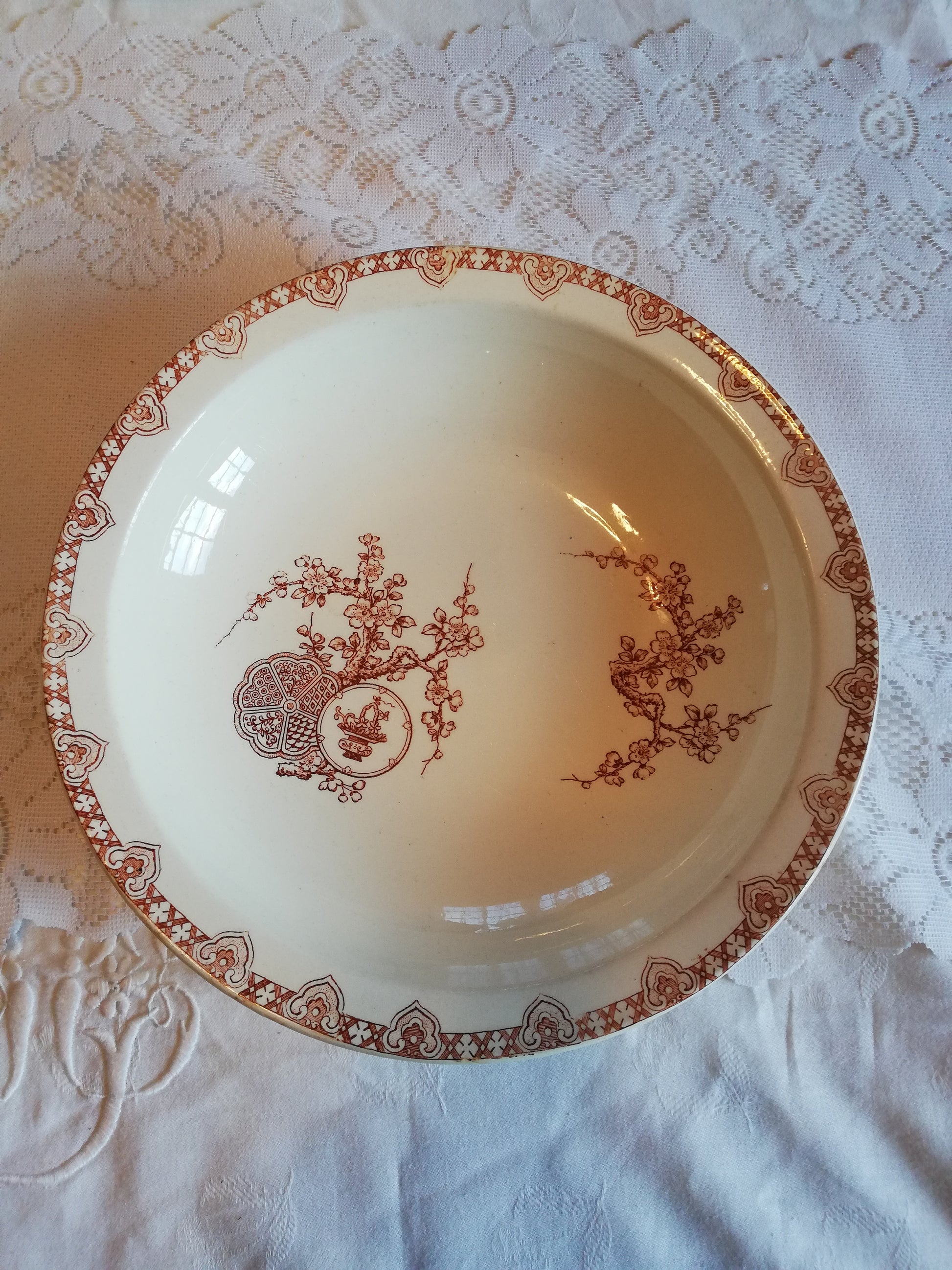 Plat rond et creux en terre de fer sépia Longwy modèle Kioto