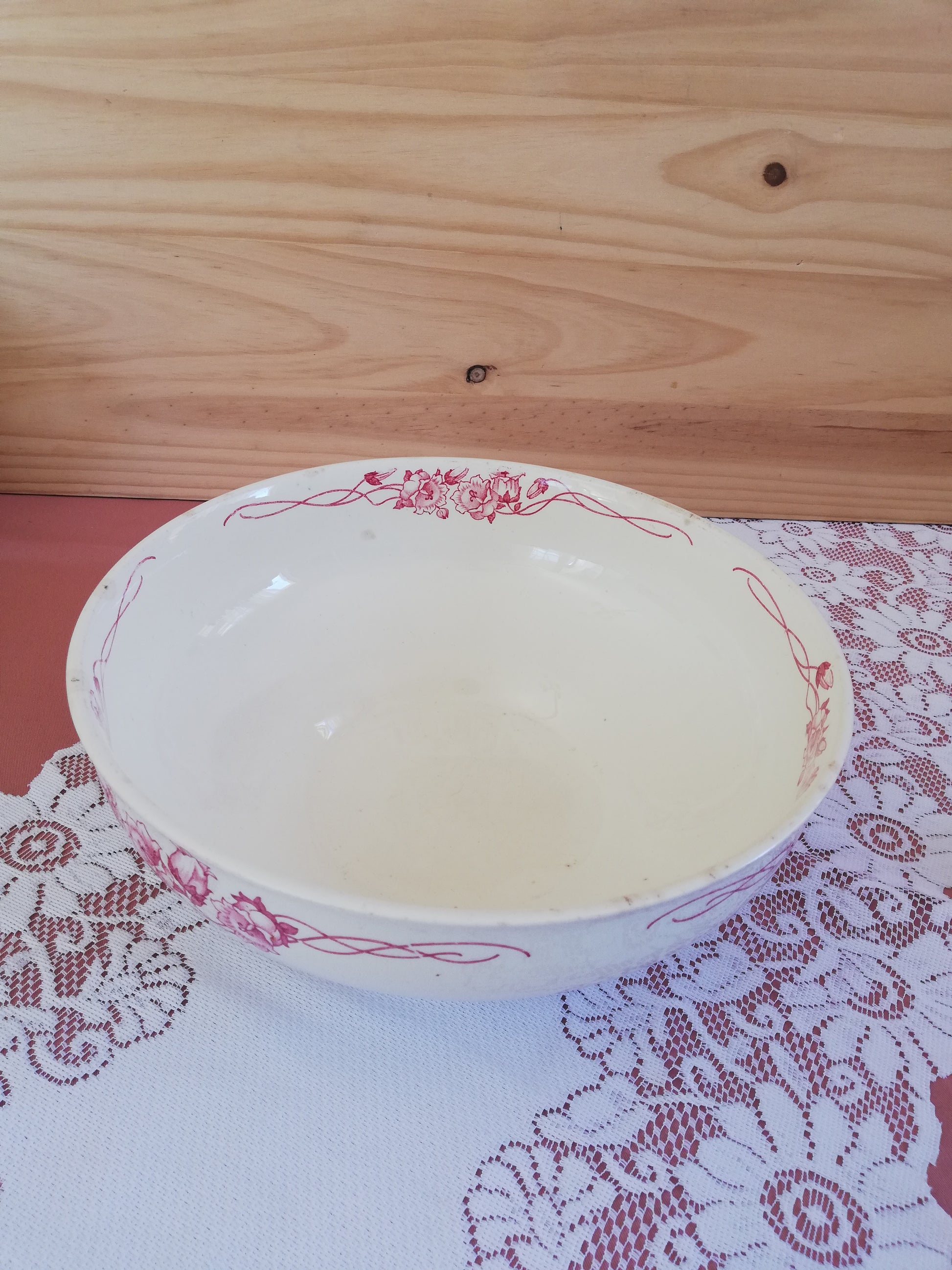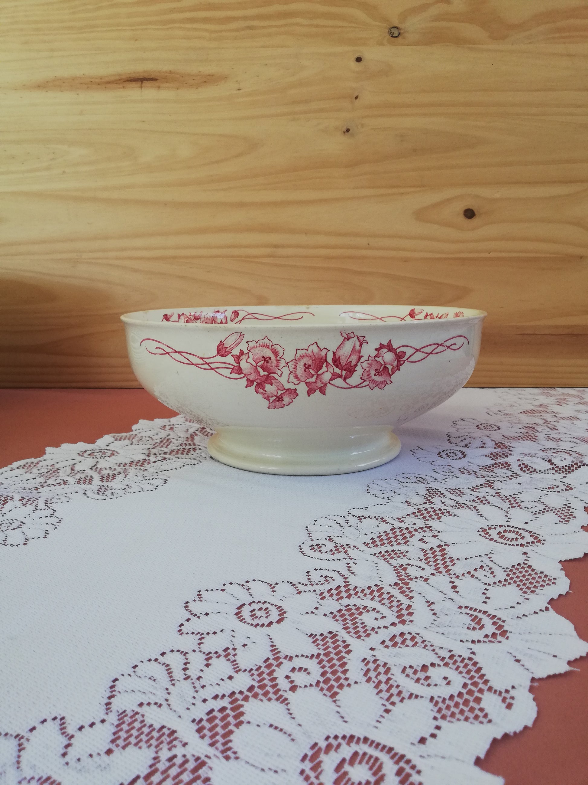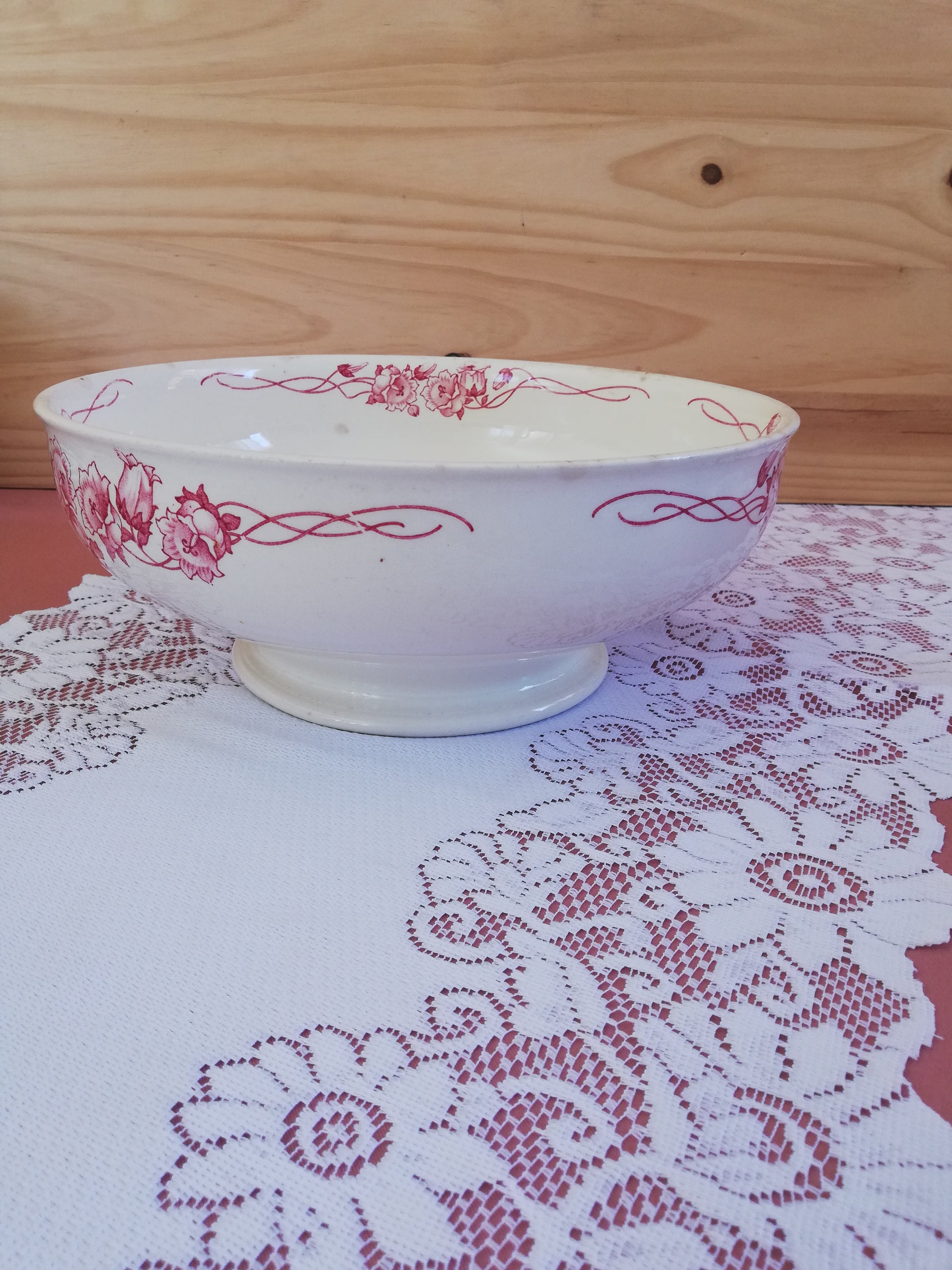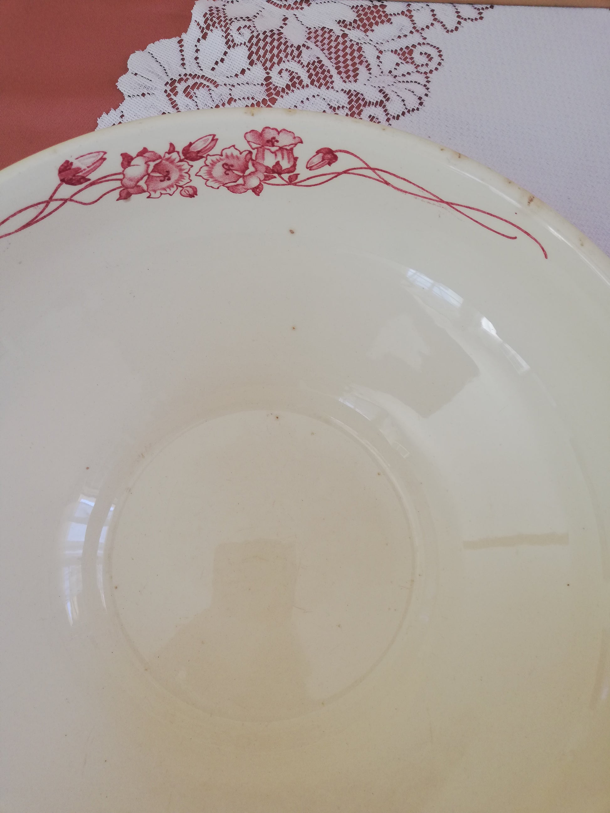 Saladier modèle Palerme de Sarreguemines en terre de fer rose rouge