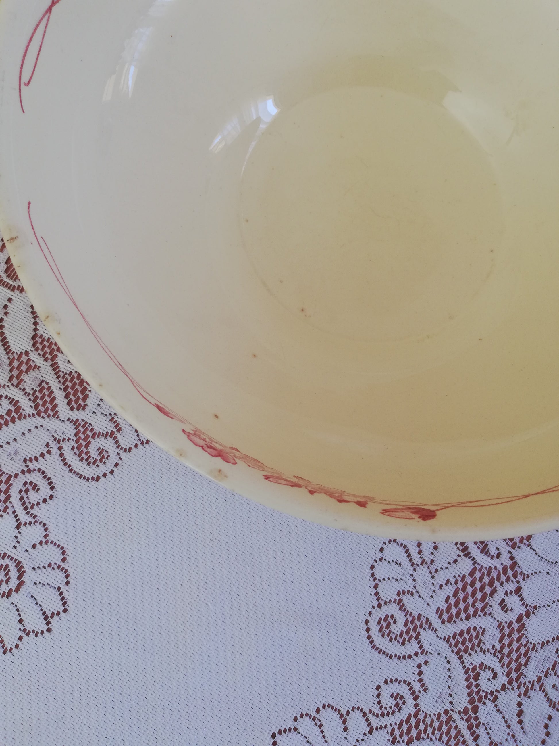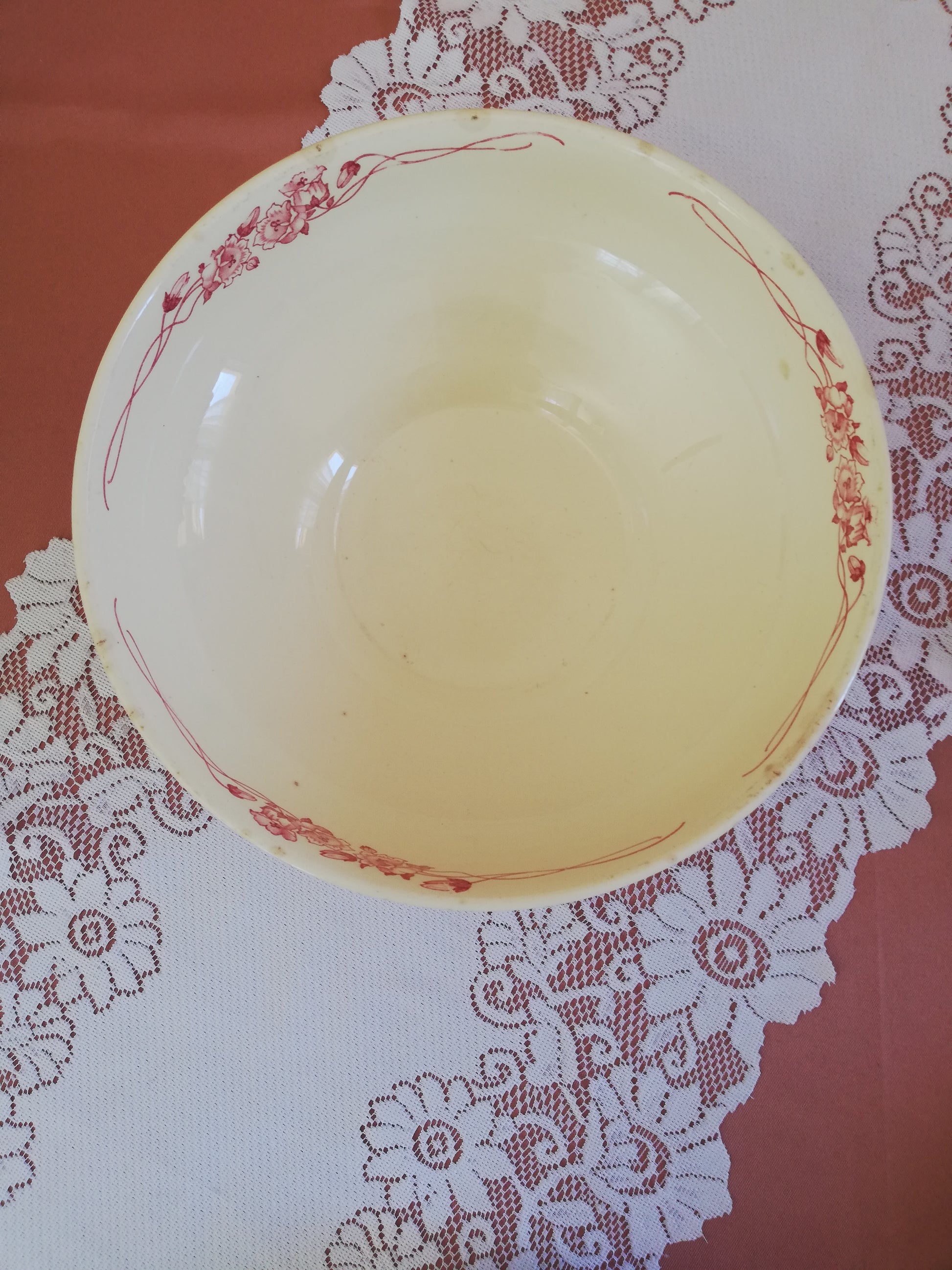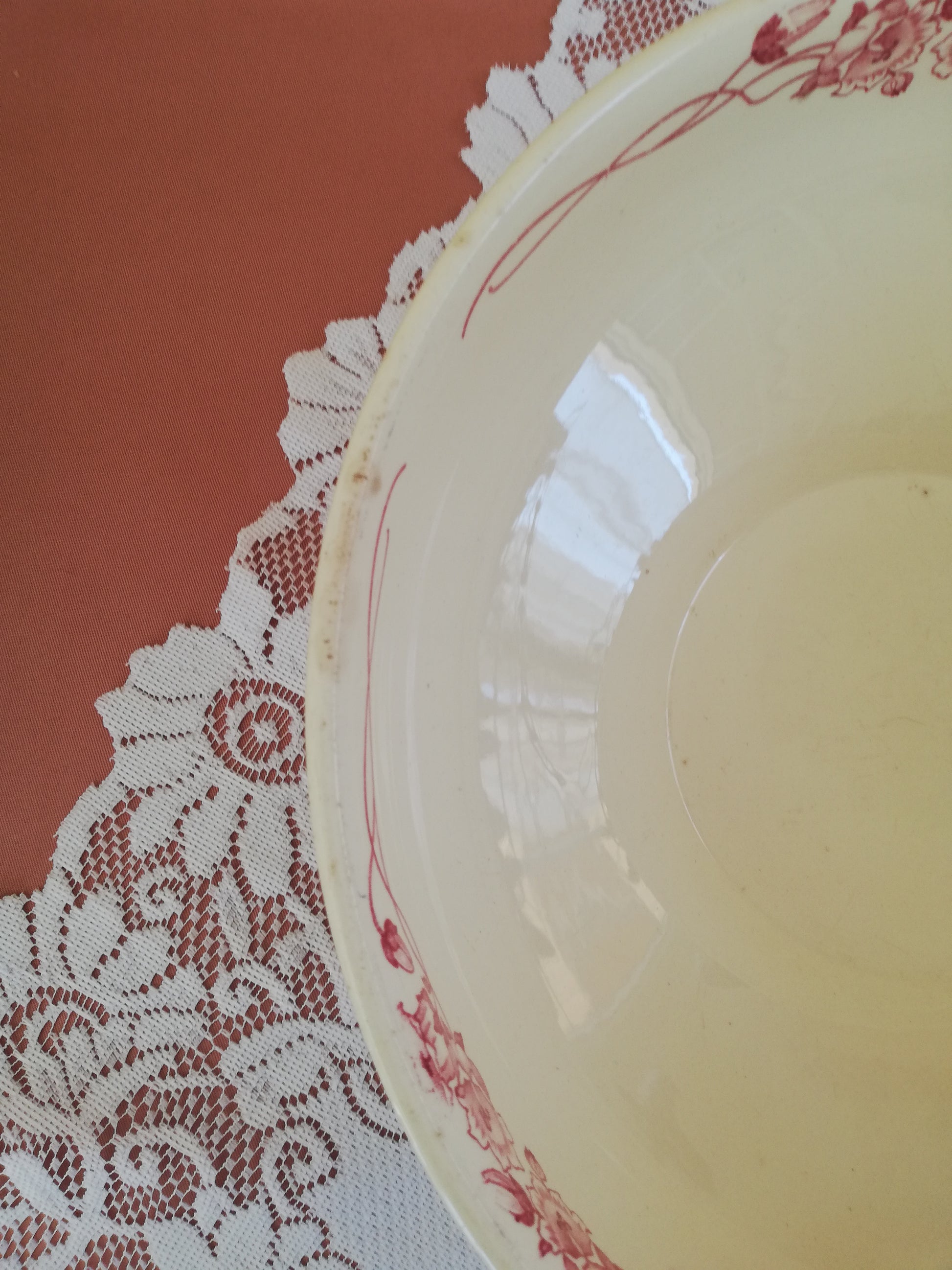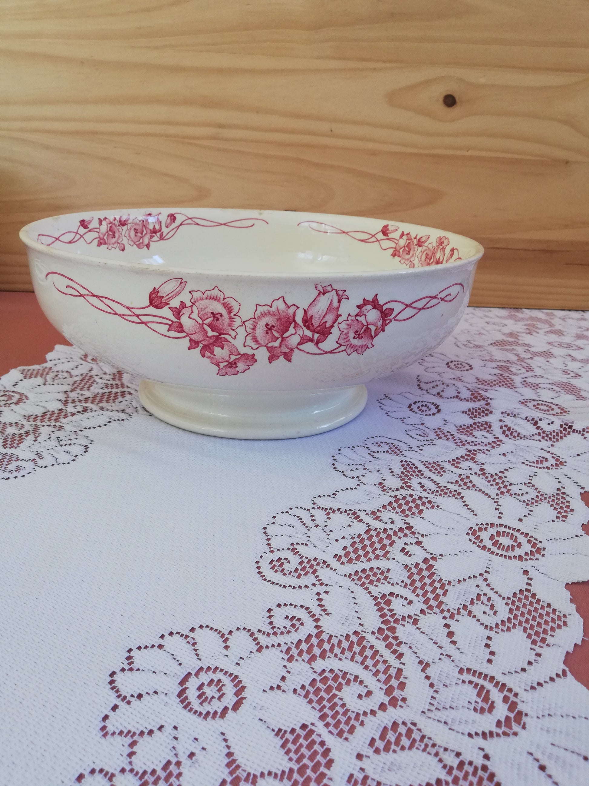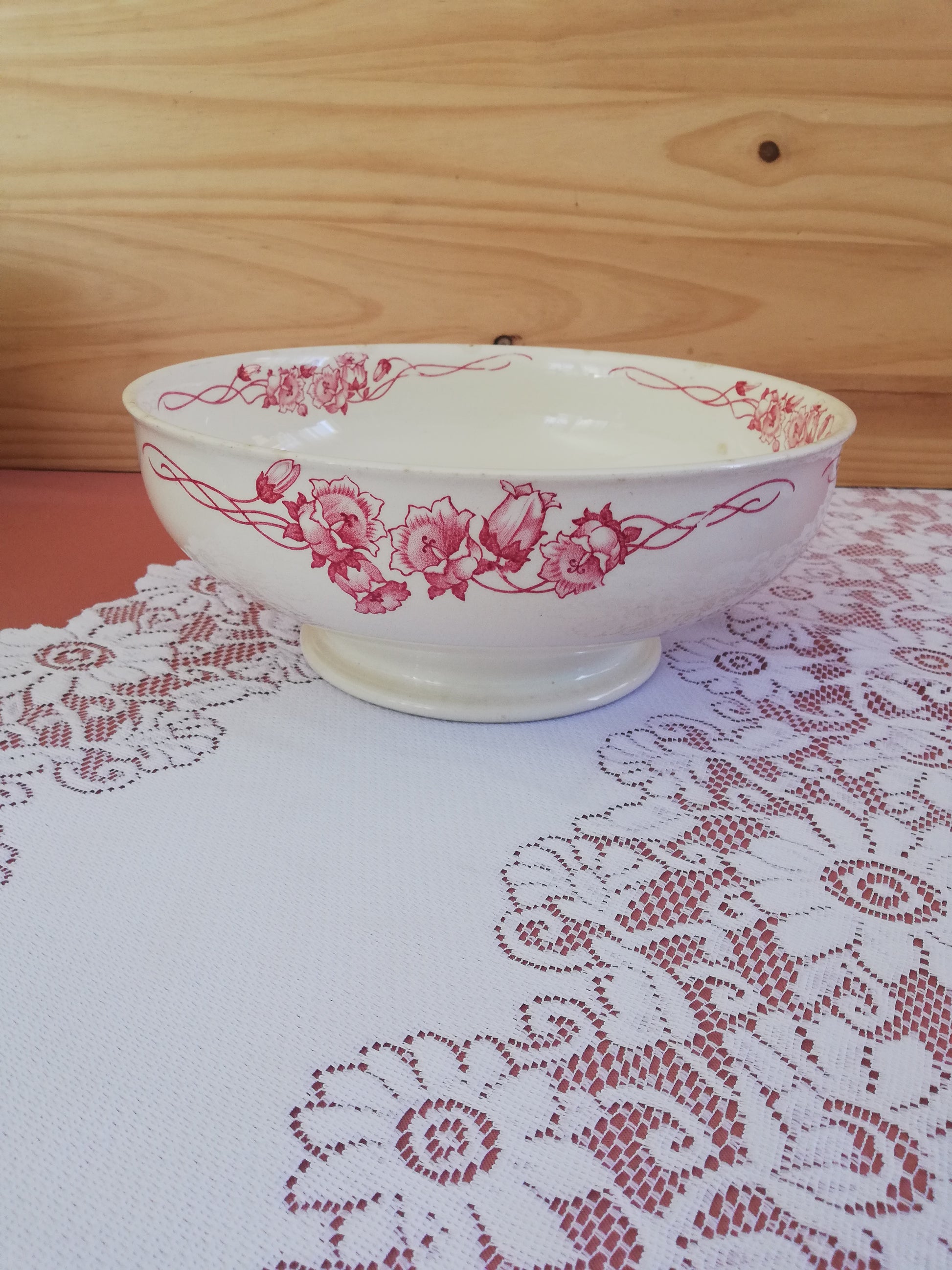 Saladier modèle Palerme de Sarreguemines en terre de fer rose rouge