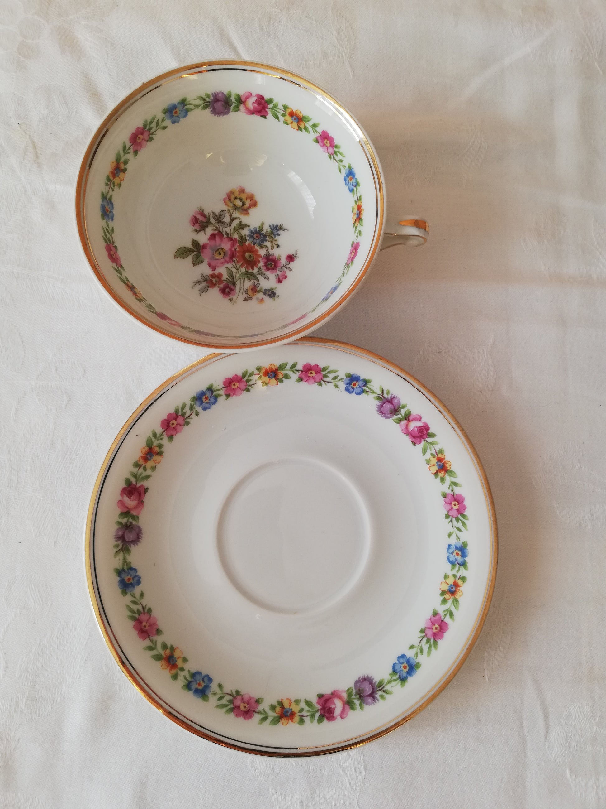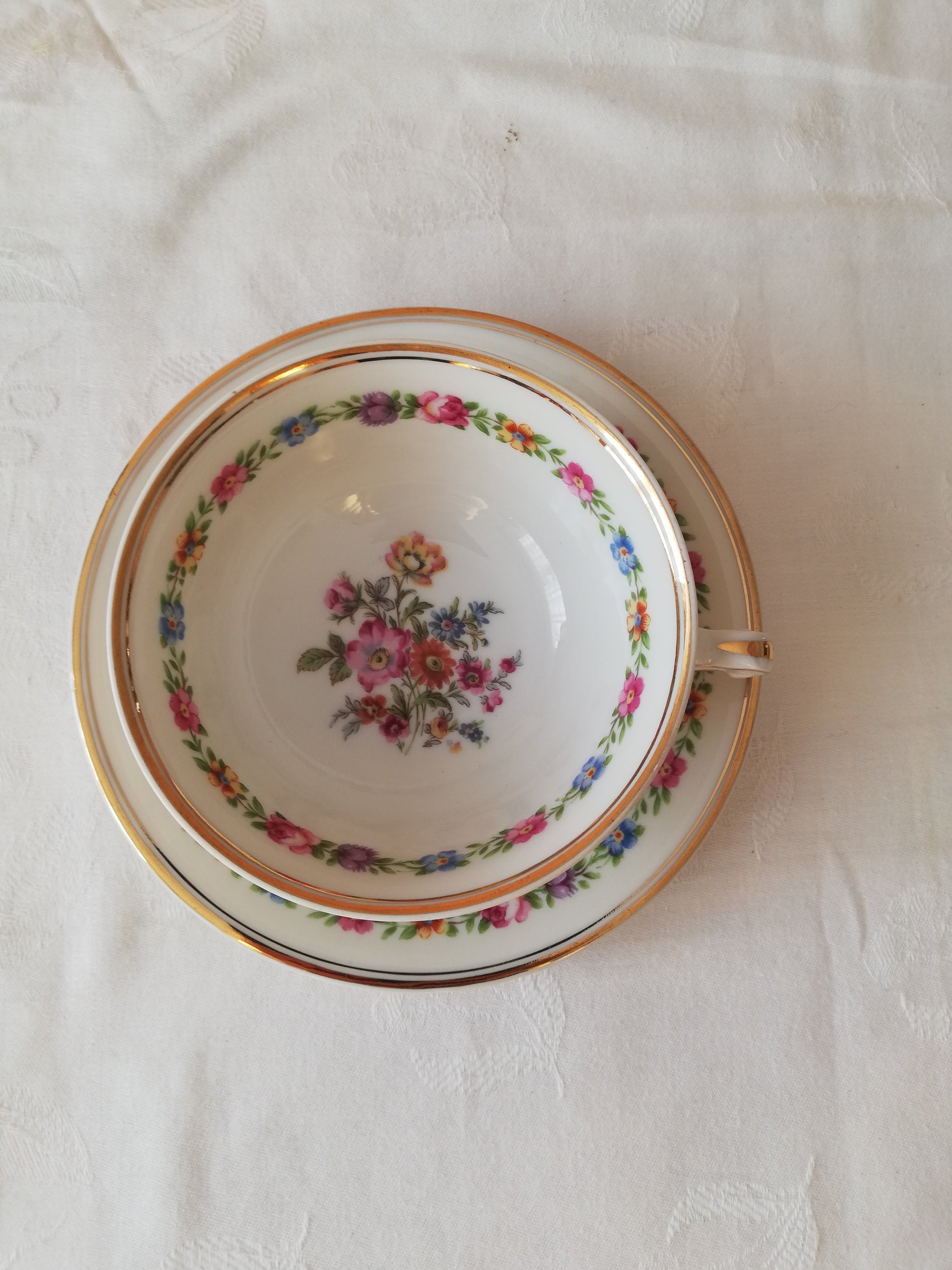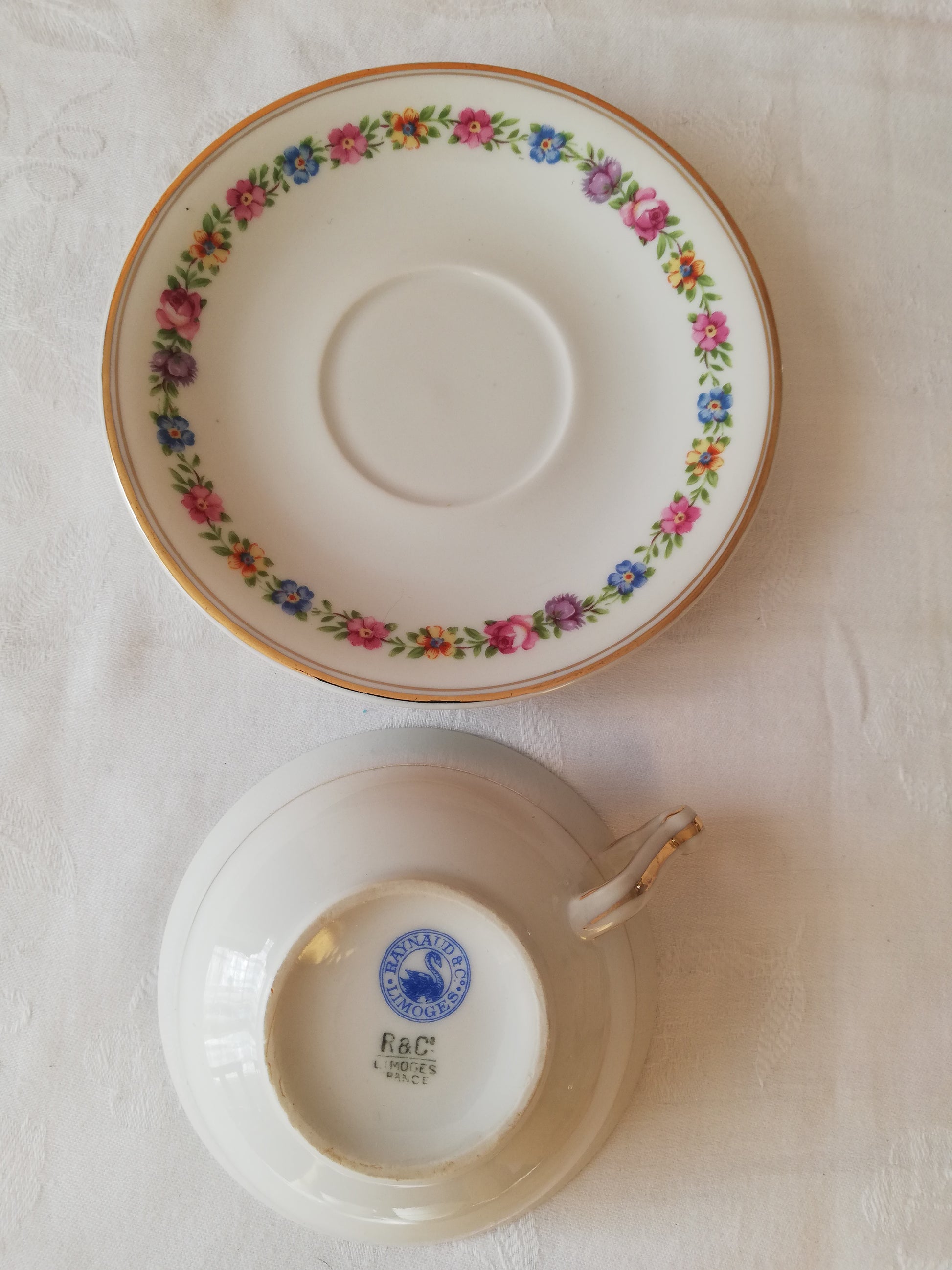 Service à thé limoges Raynaud et Cie composé de 4 assiettes à dessert, 4 sous tasses et tasses