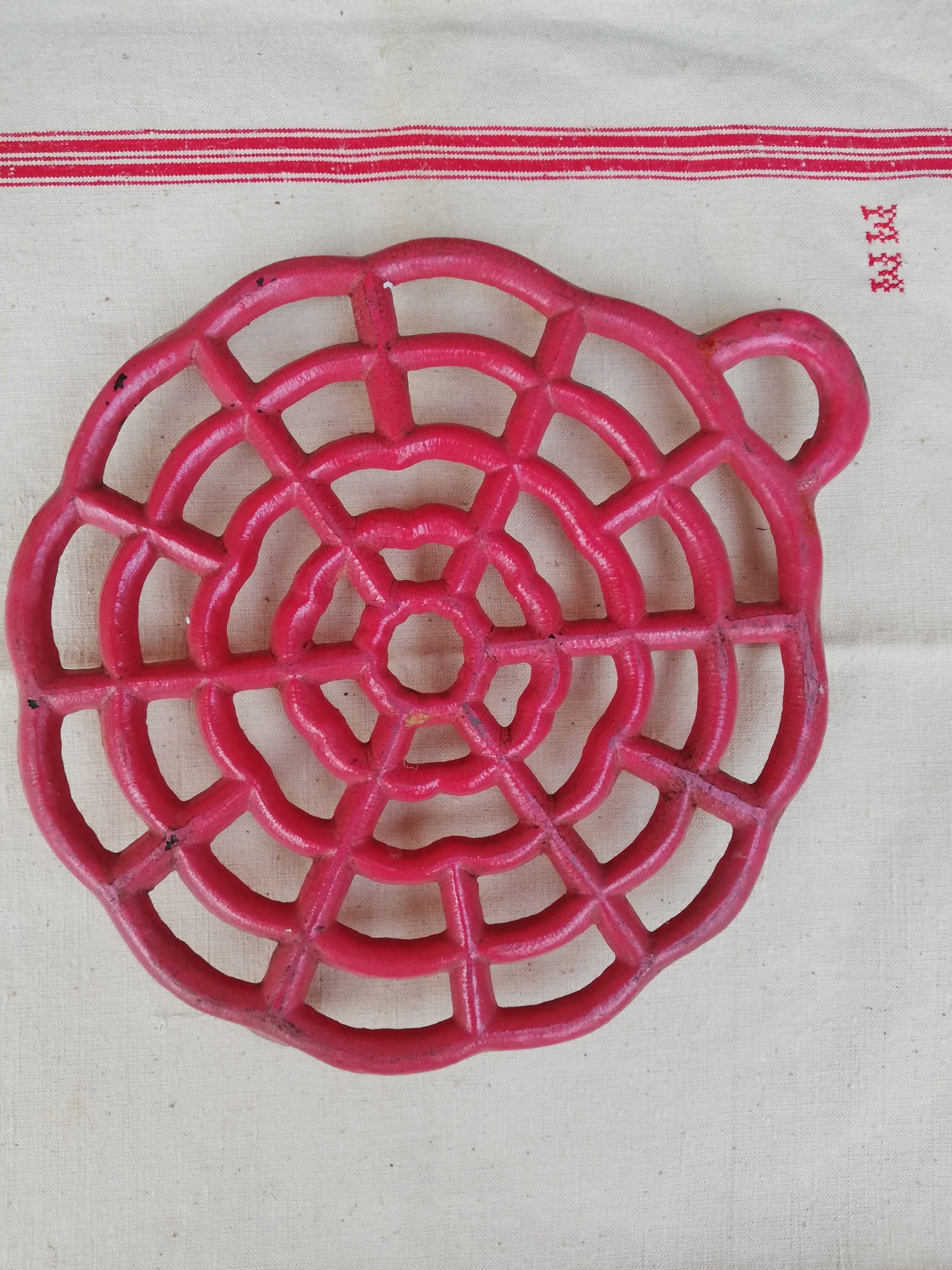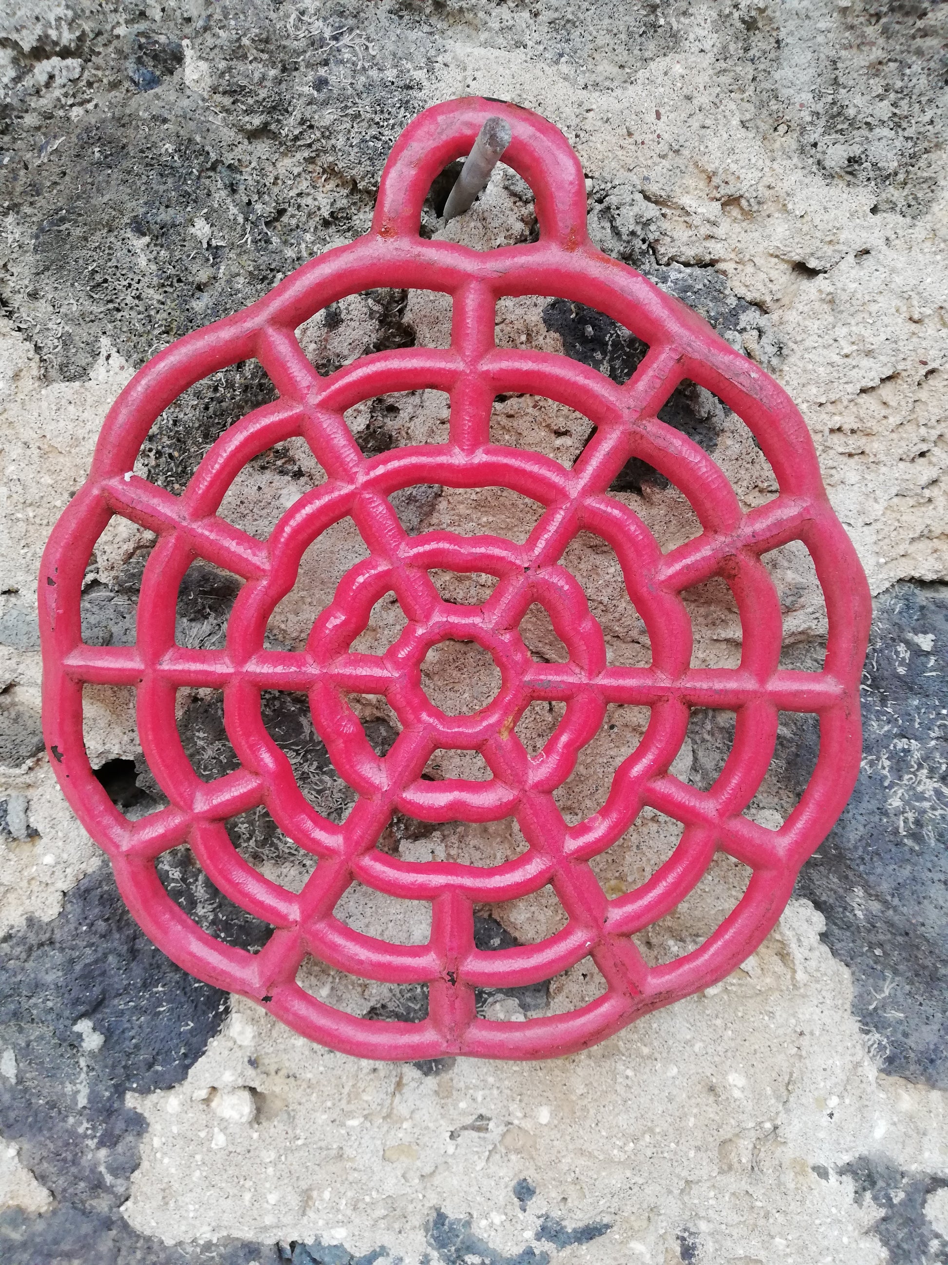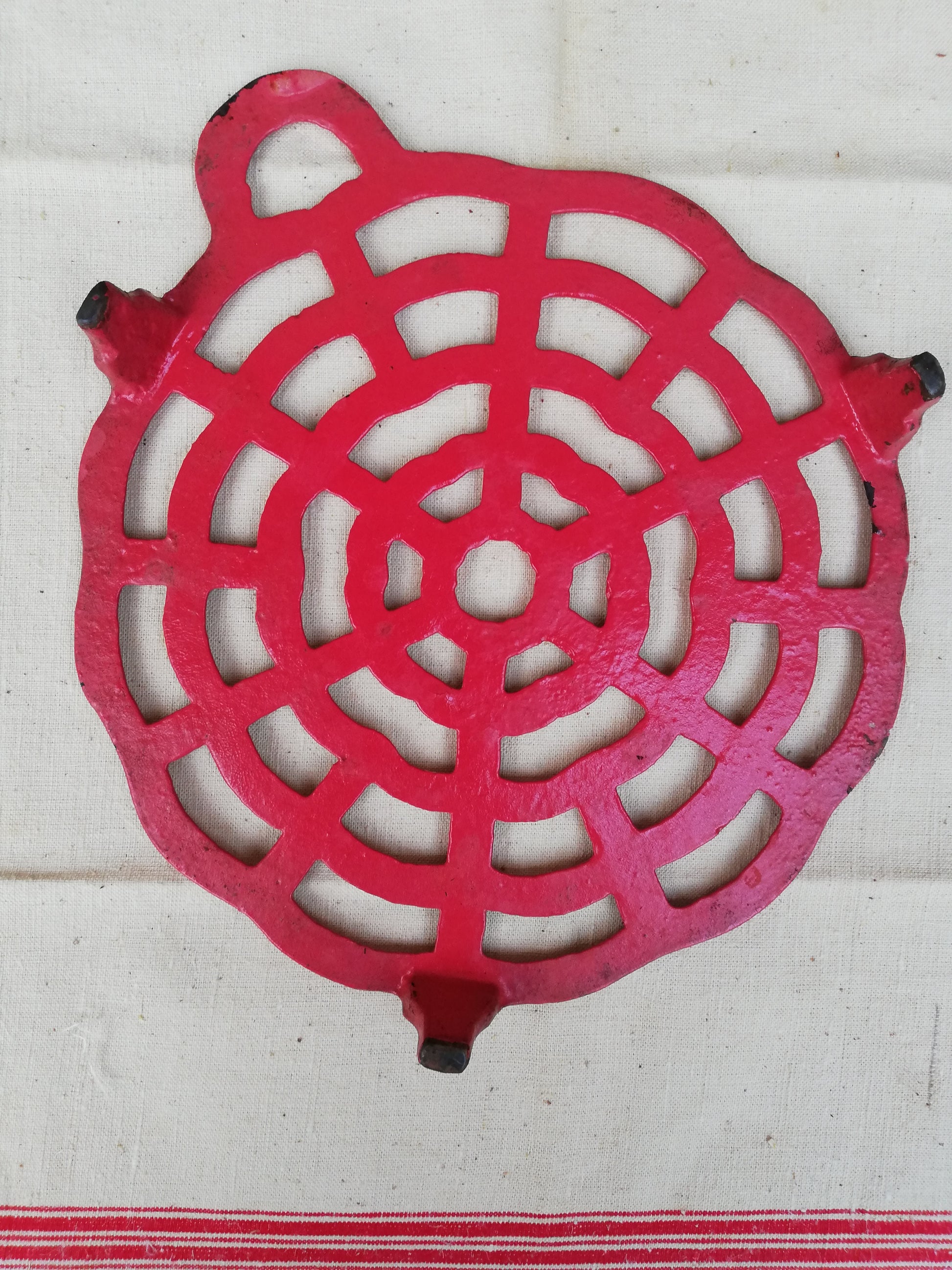 Dessous de plat rouge ancien en fonte diamètre 24 cm