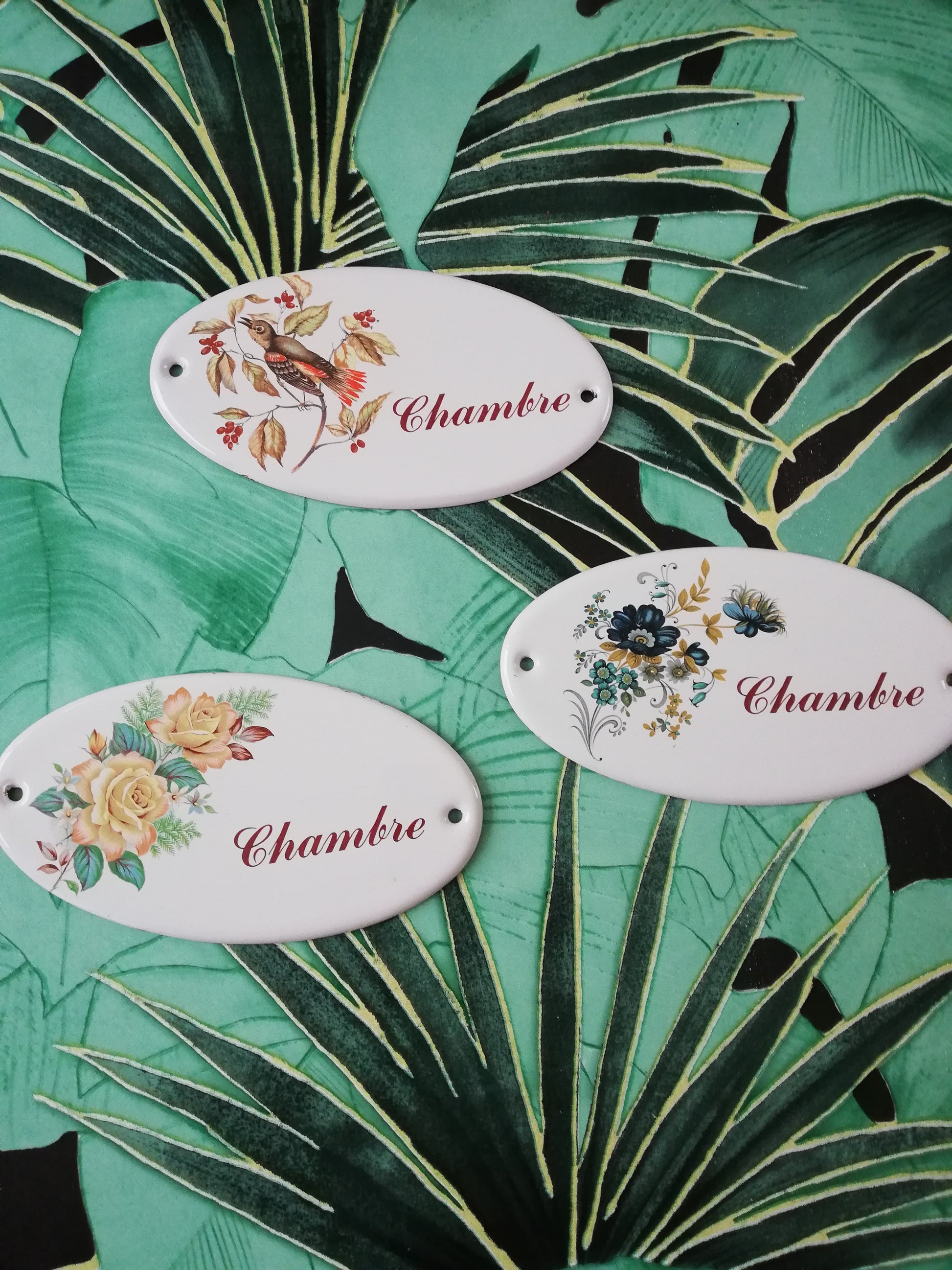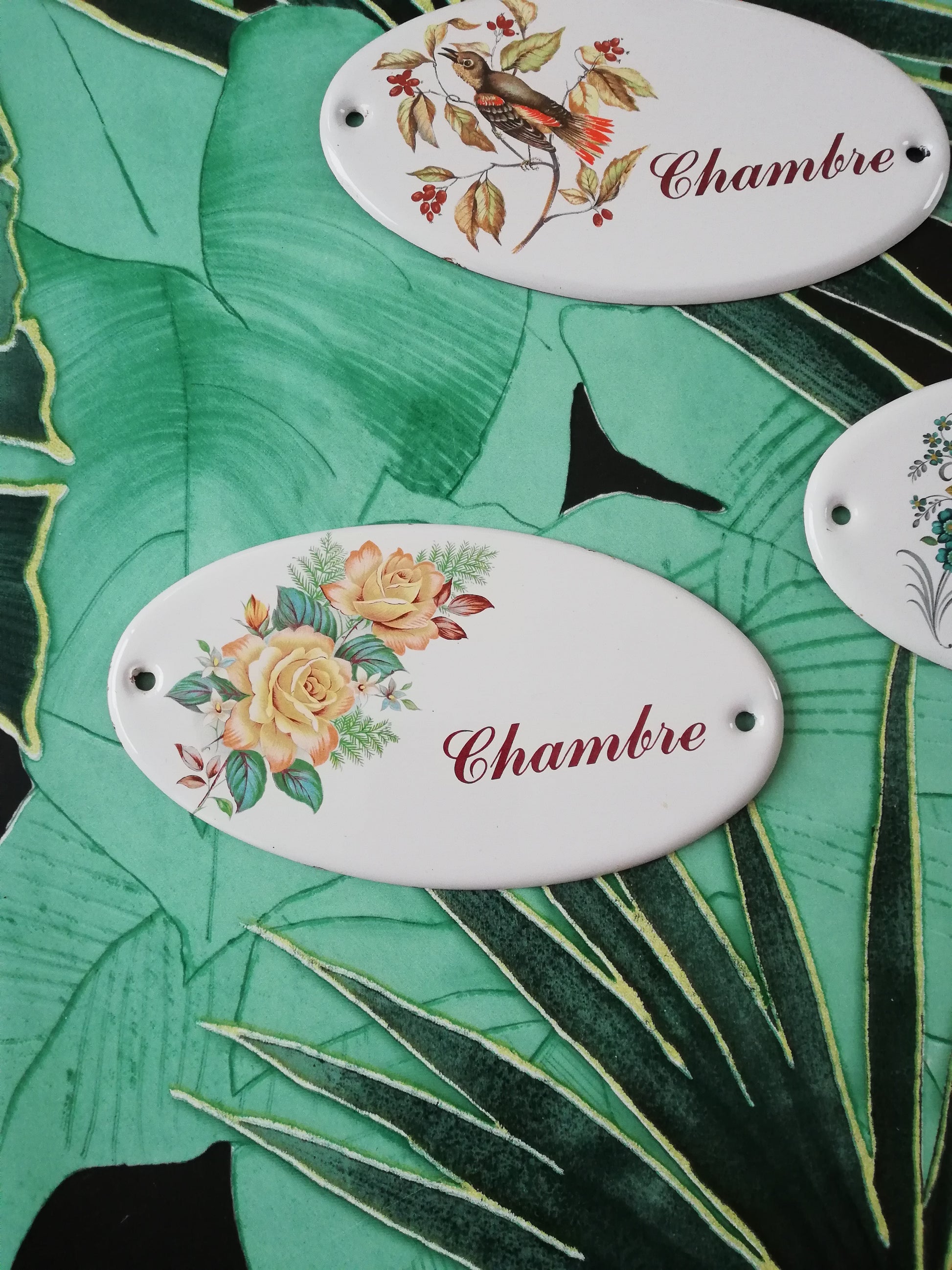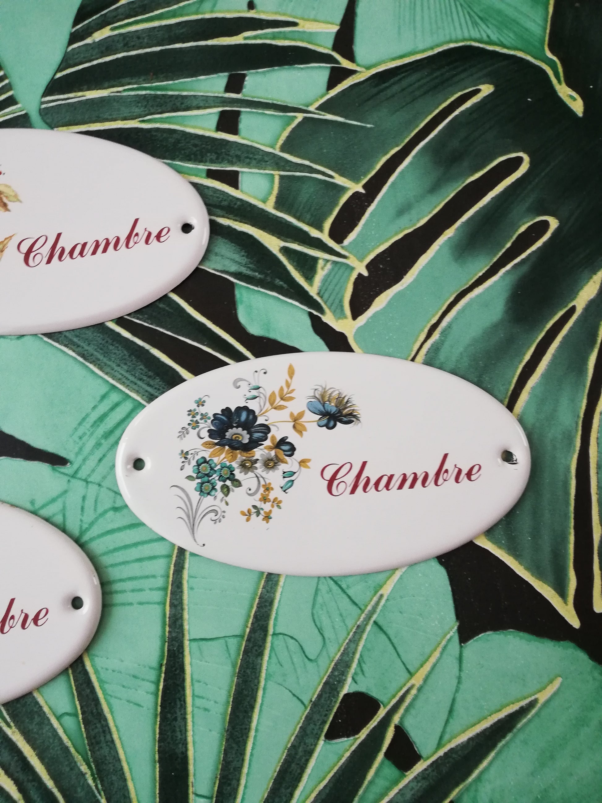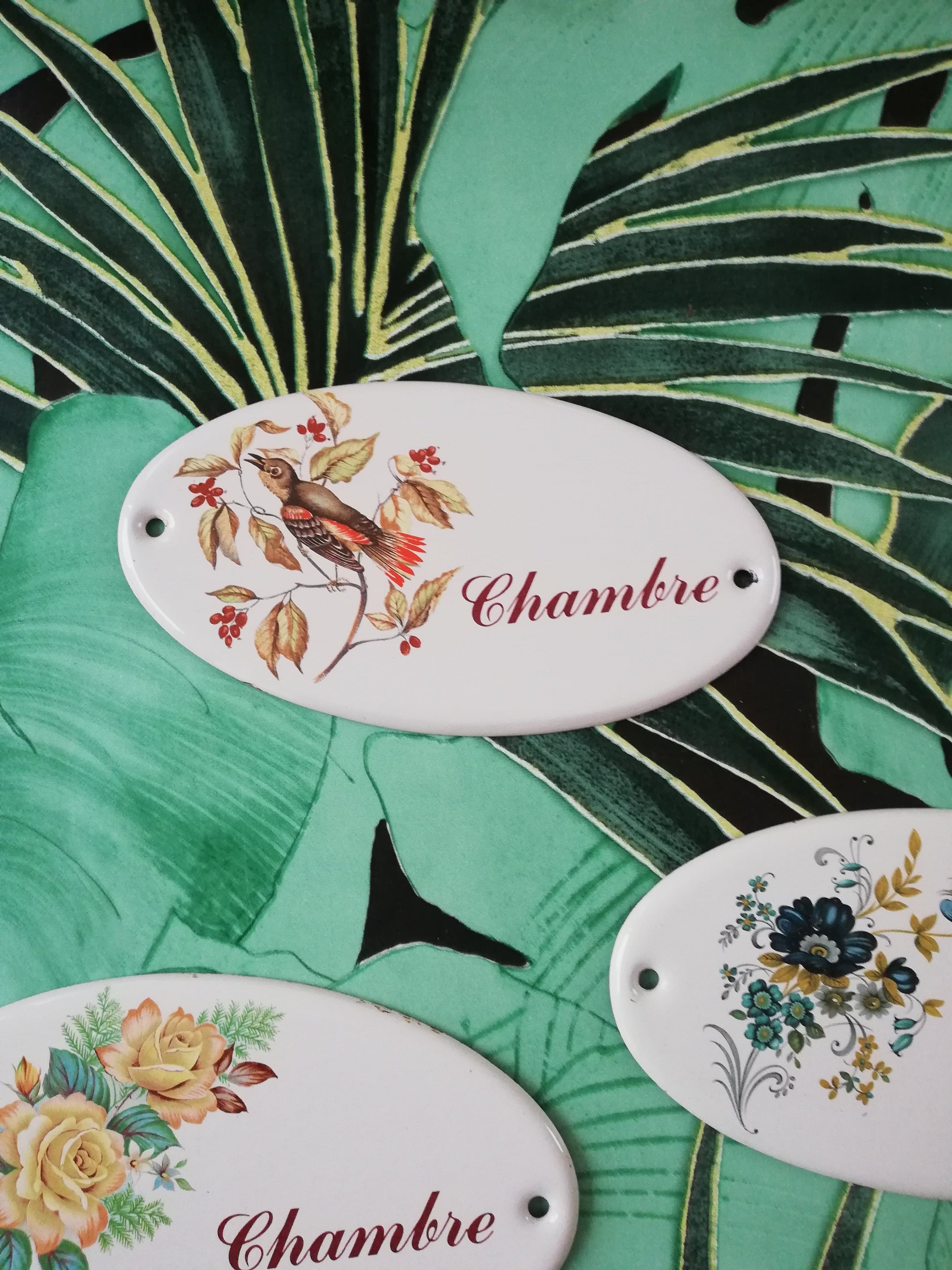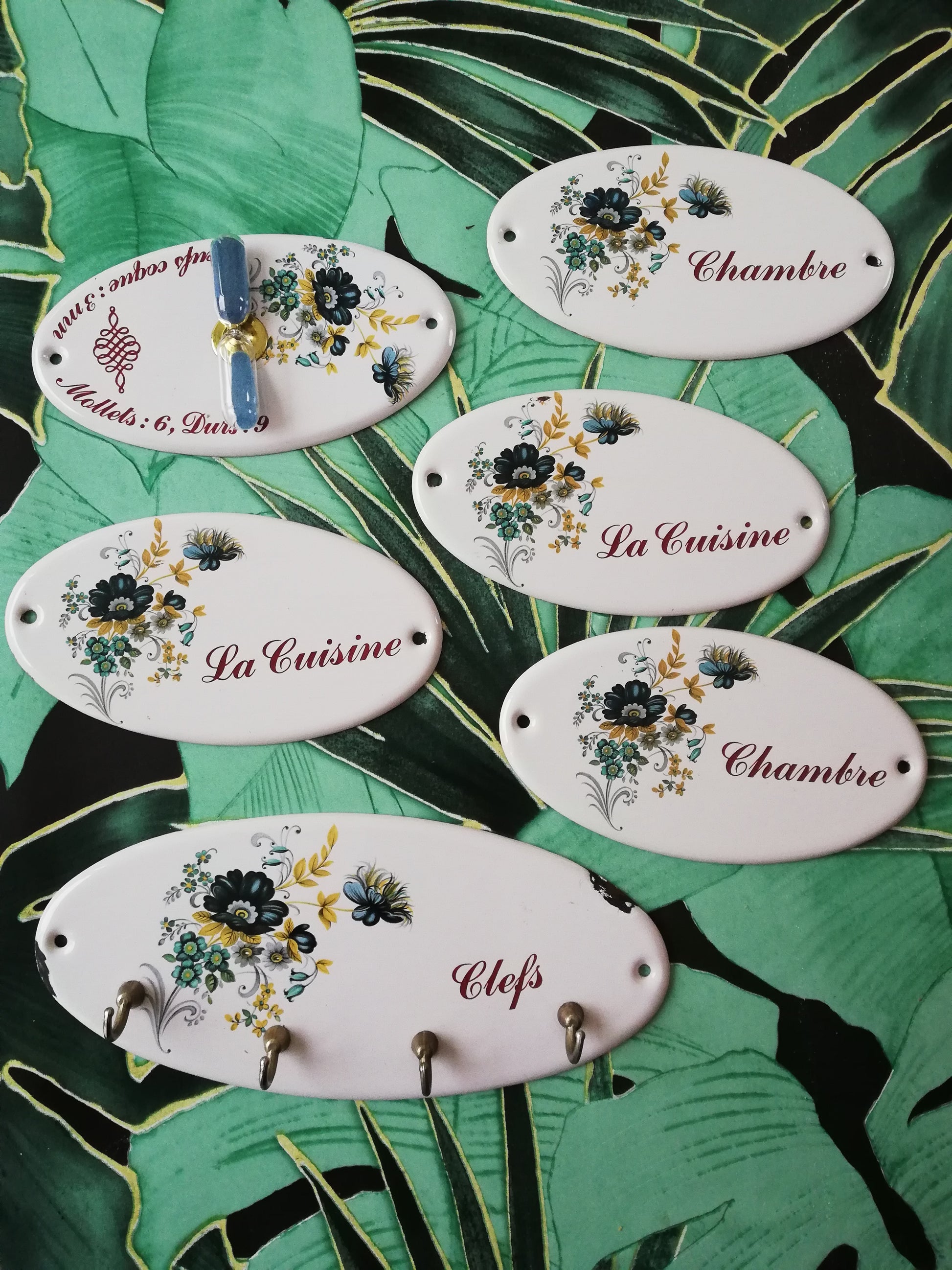 ➡️Petites plaques en tôles émaillées de porte chambre et cuisine