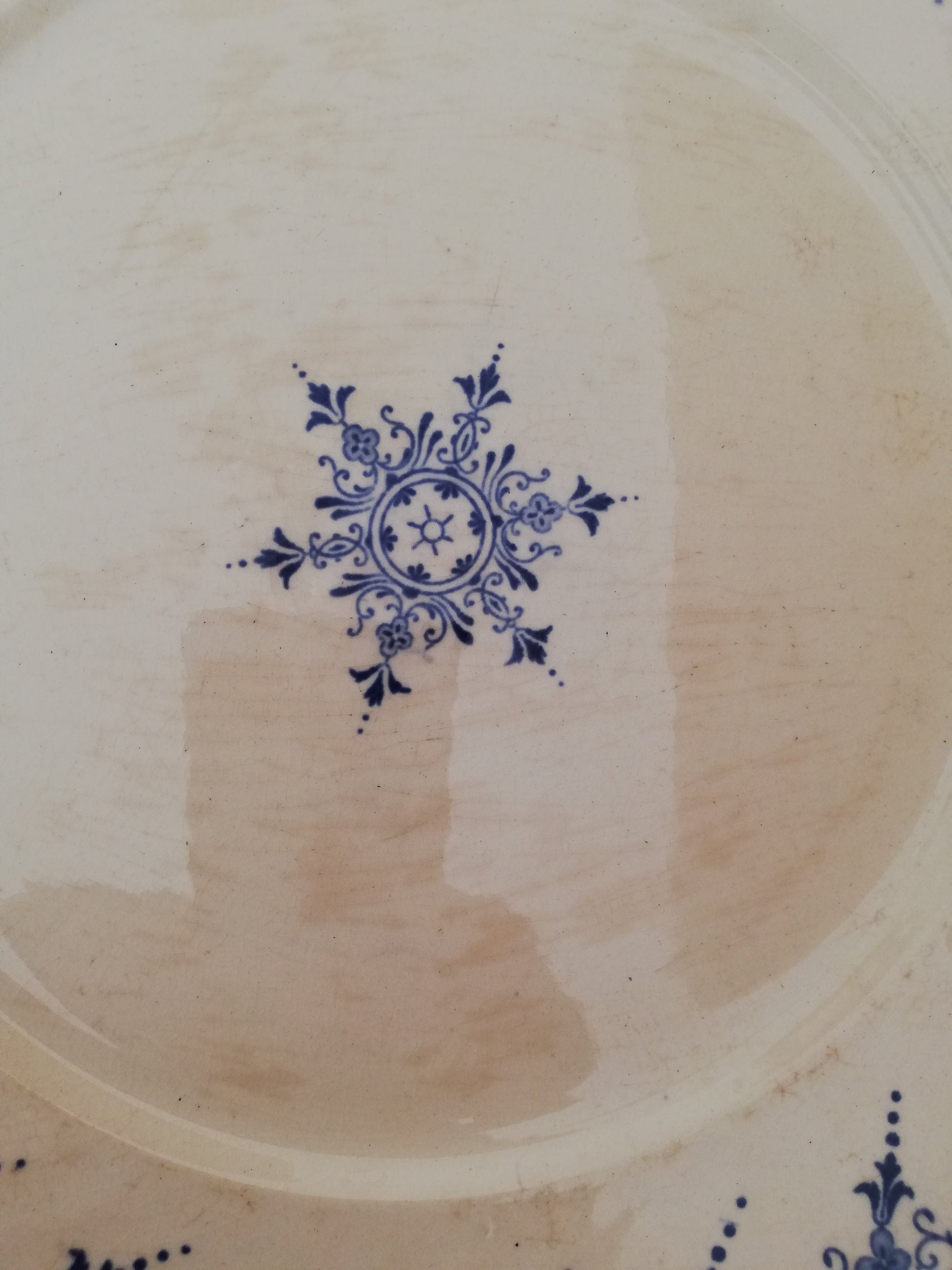 assiette en terre de fer modèle Moustier de Sarreguemines au contour chantourné
