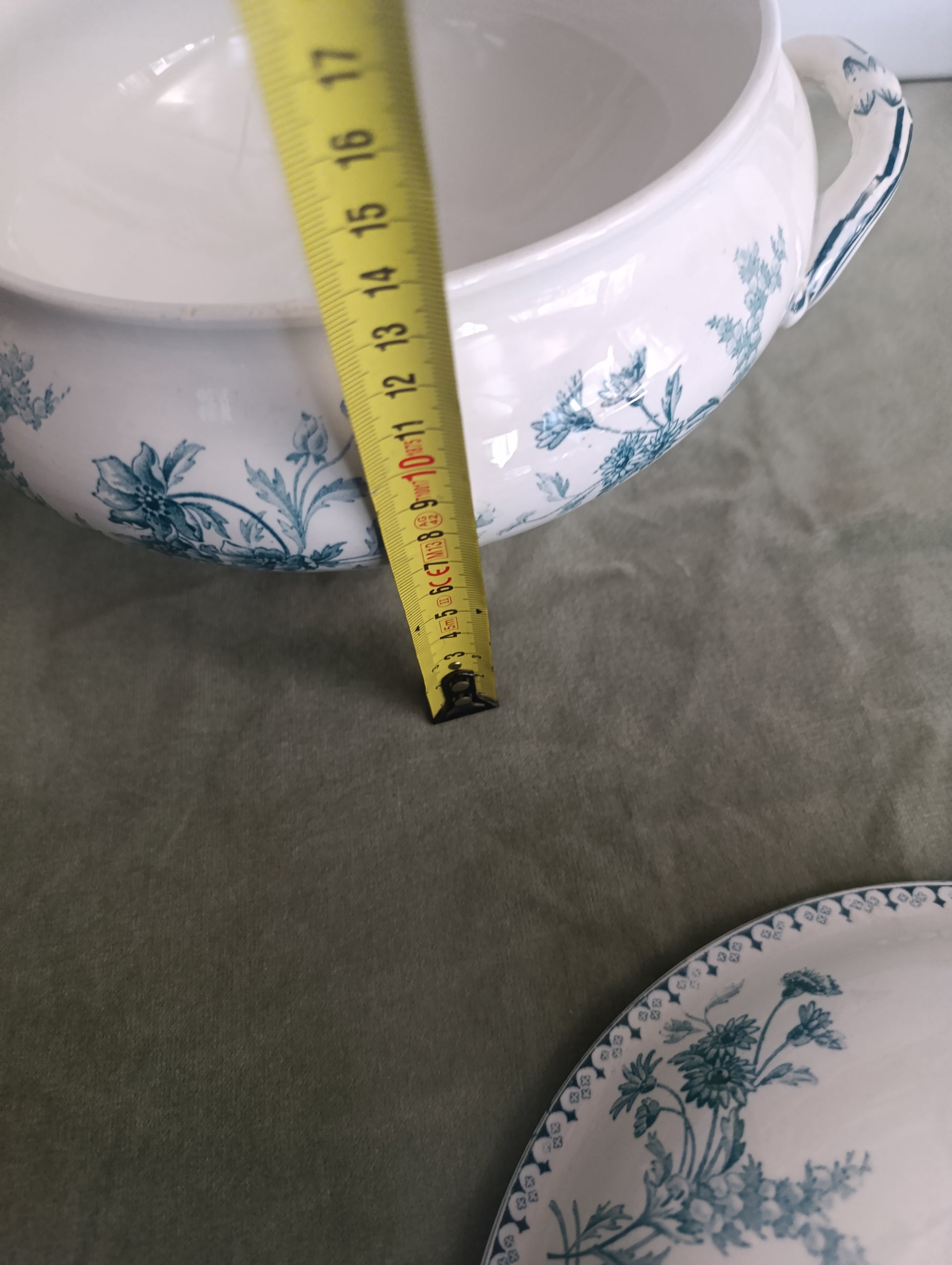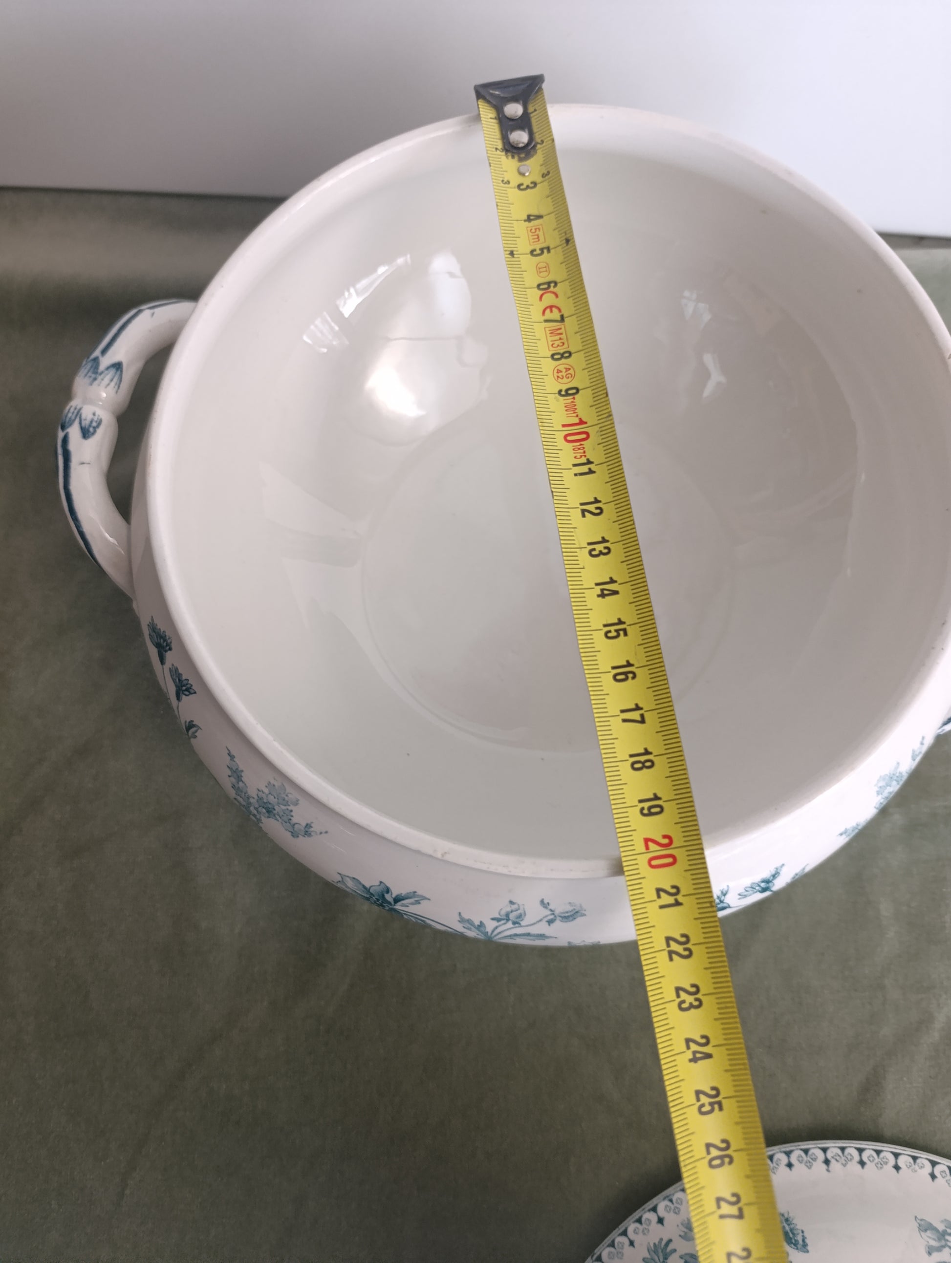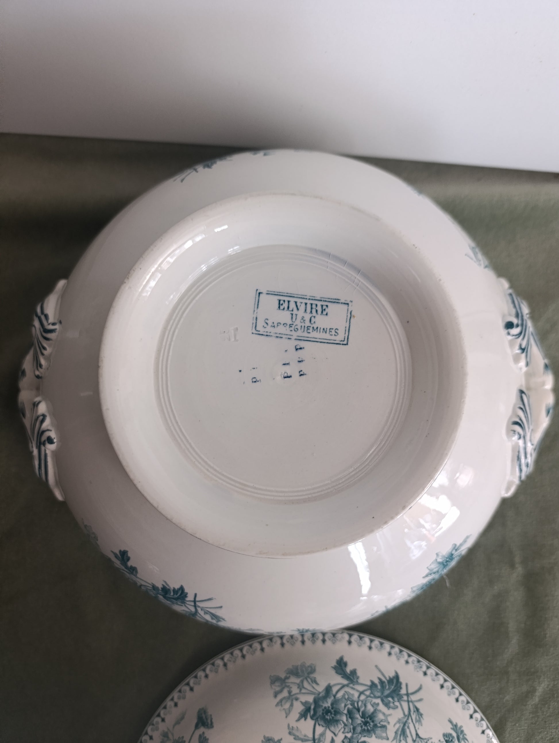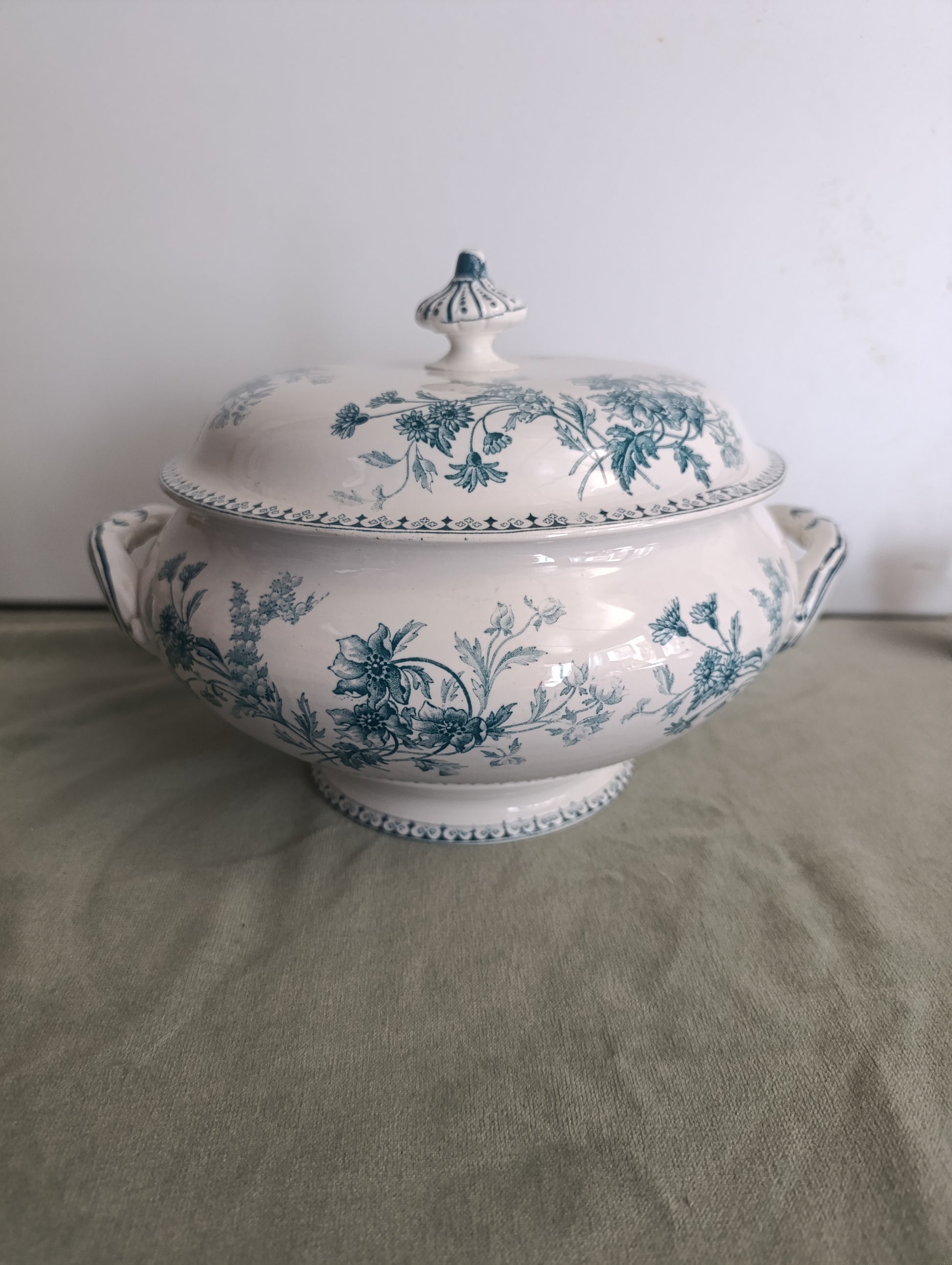 Magnifique soupière modèle Elvire de la manufacture de Sarreguemines en terre de fer bleu vert