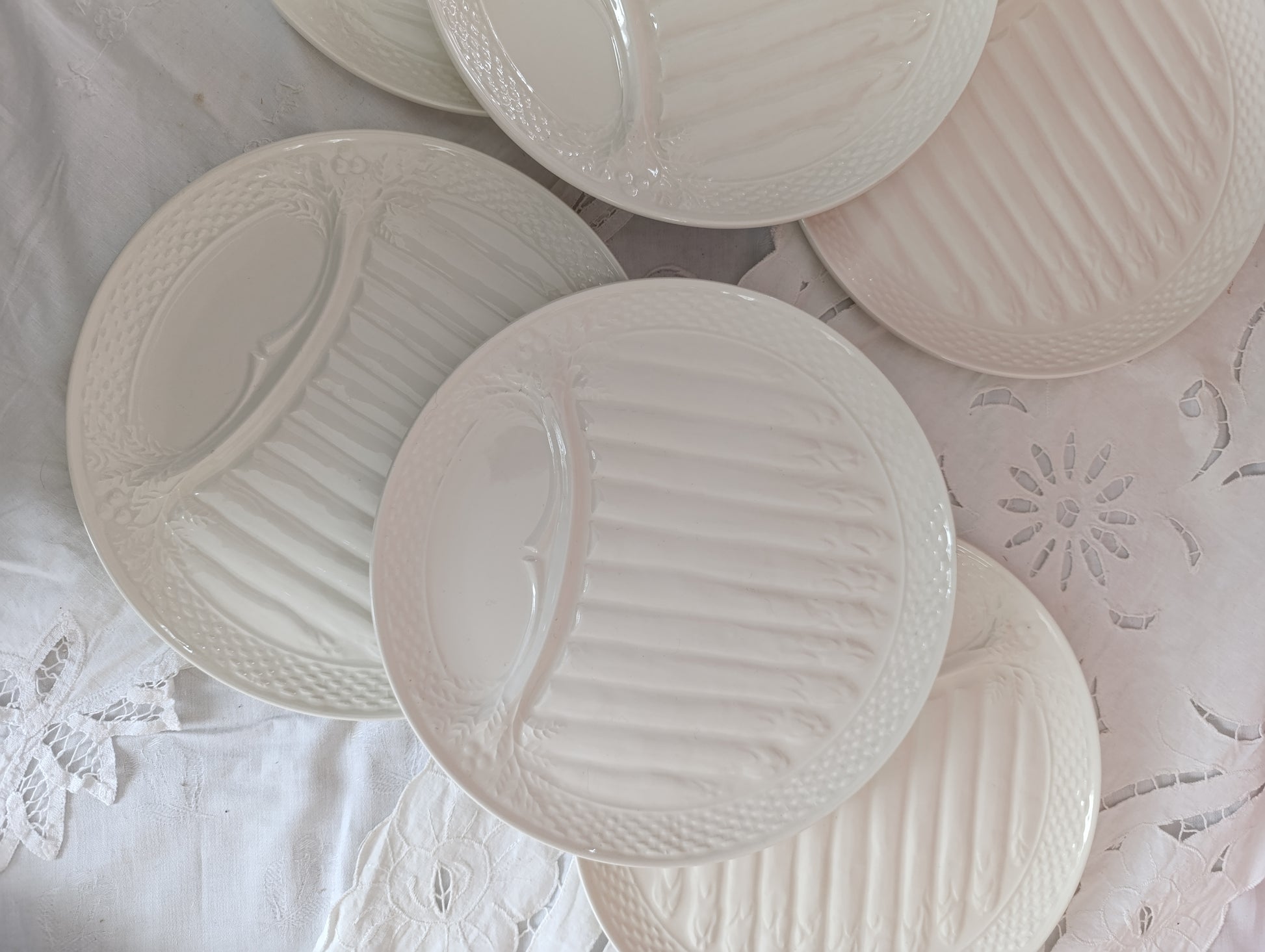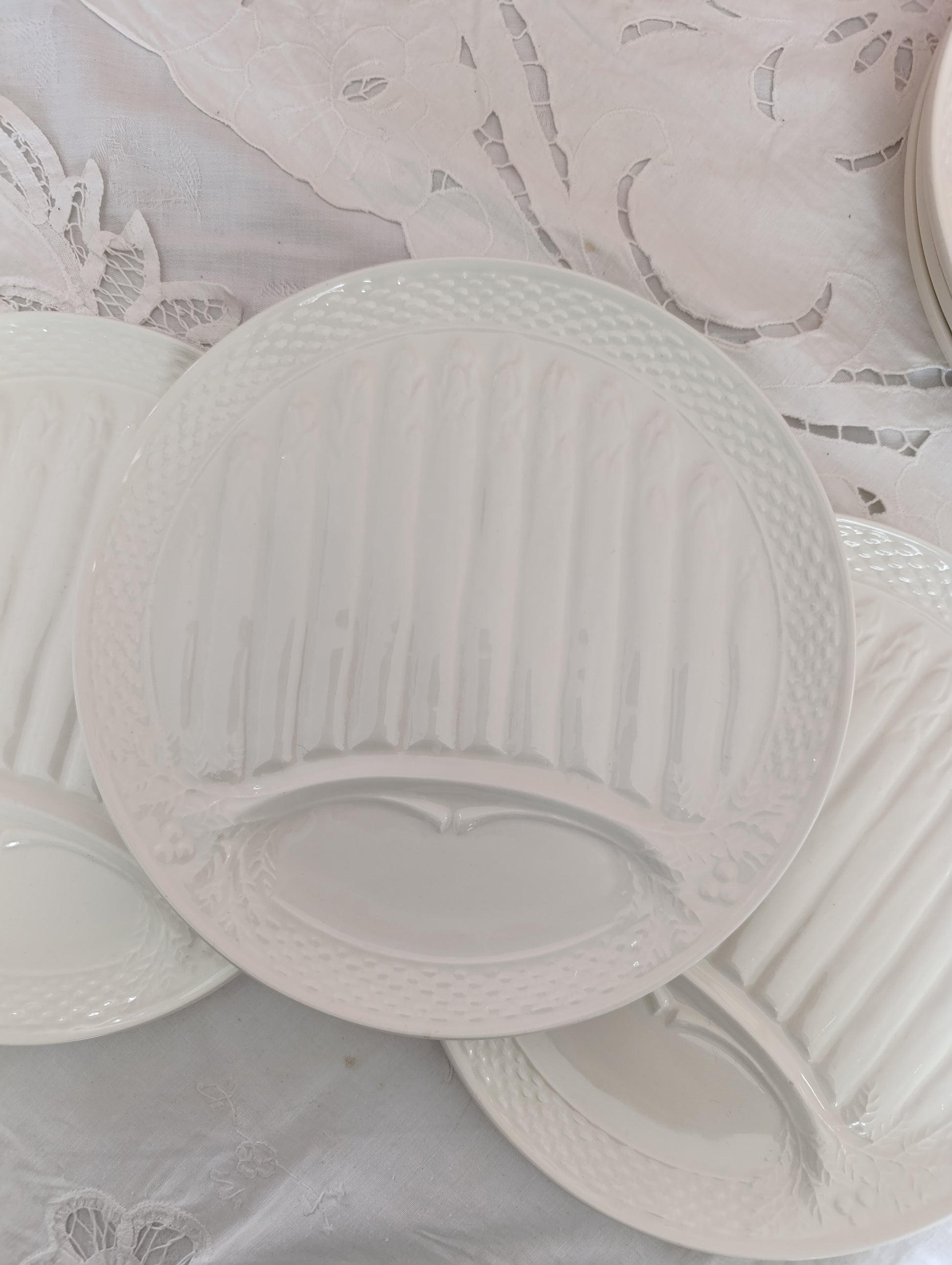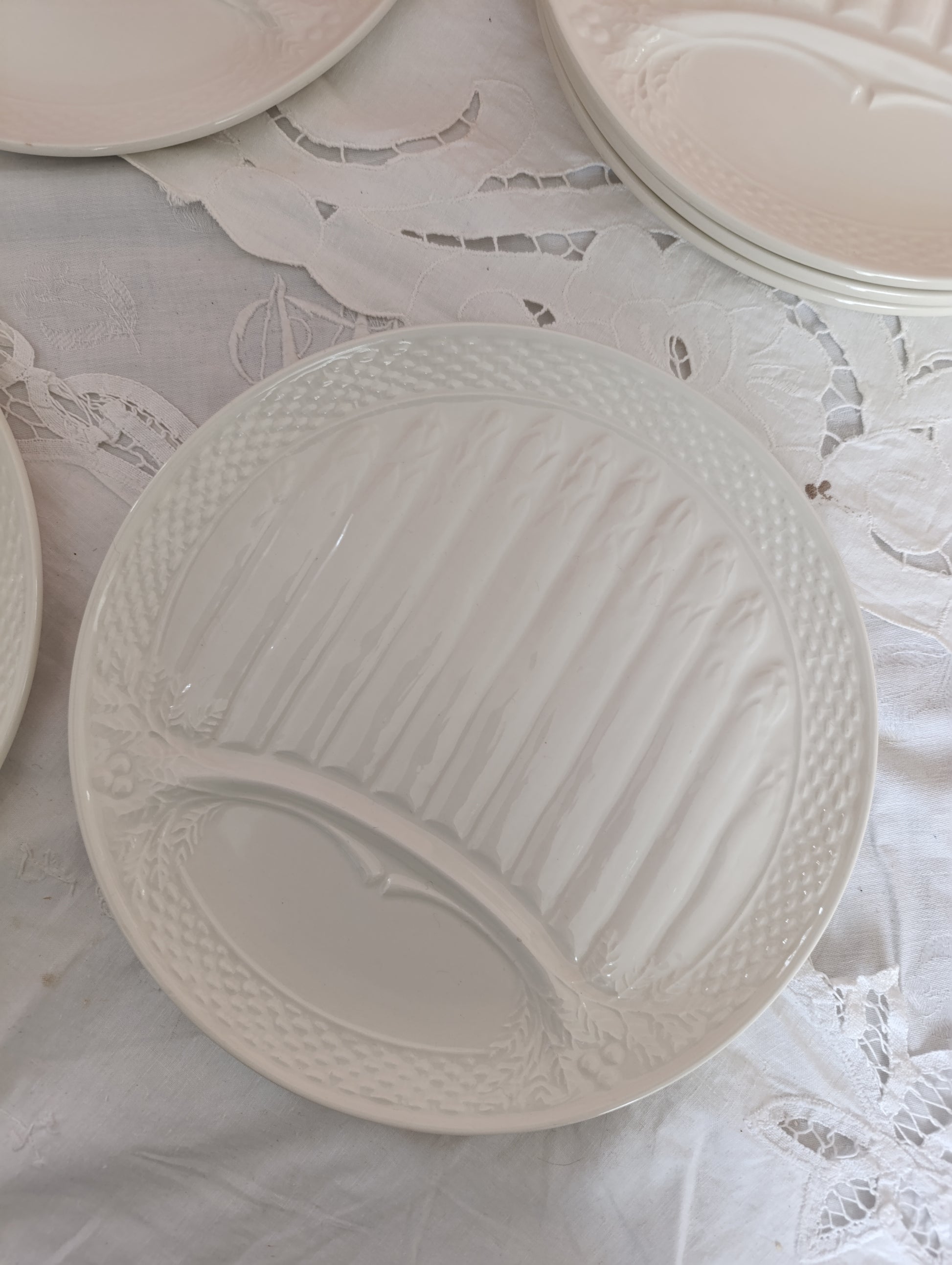 Ensemble de 6 assiettes à asperge Saint Amand en terre de fer blanche