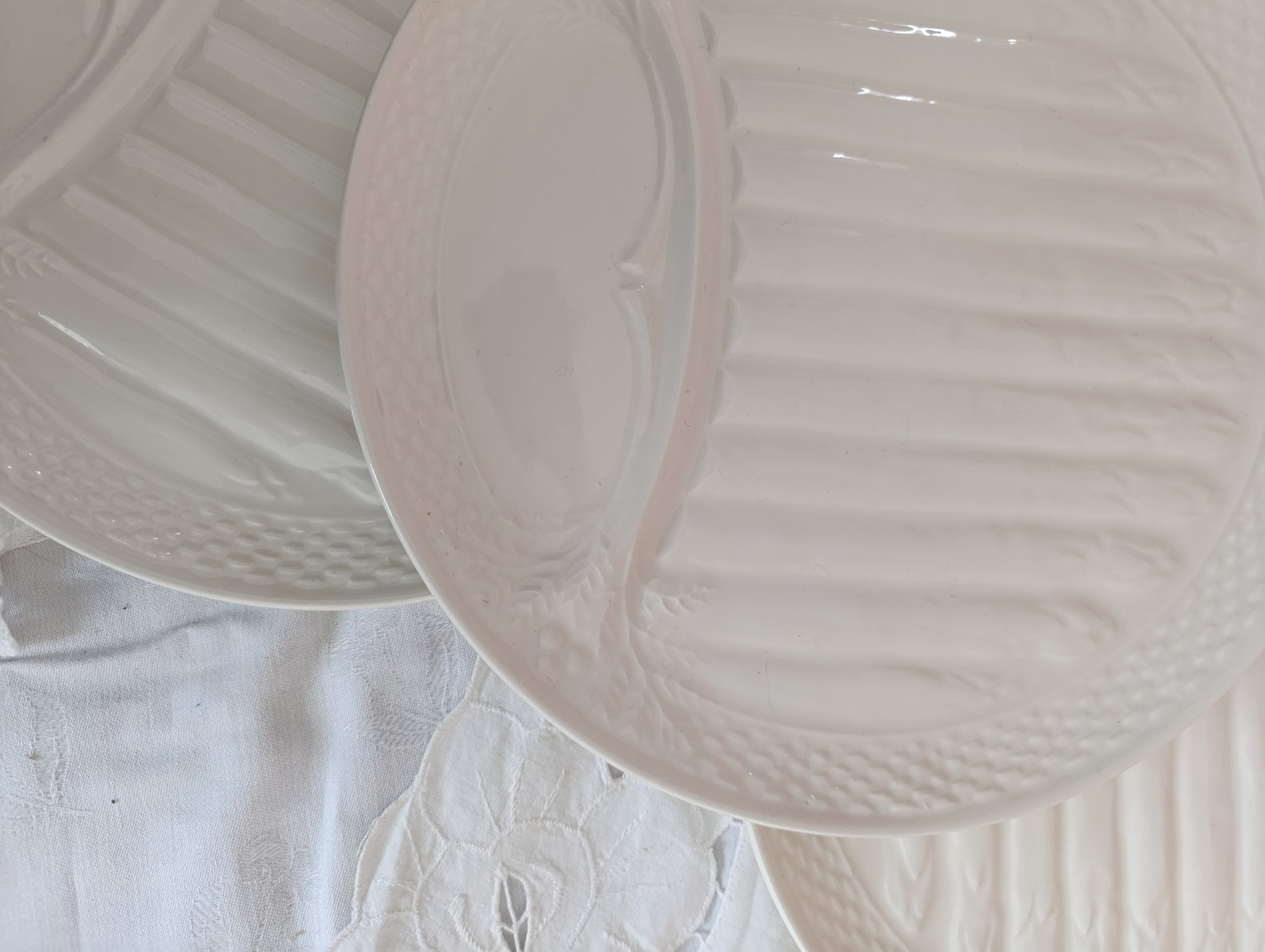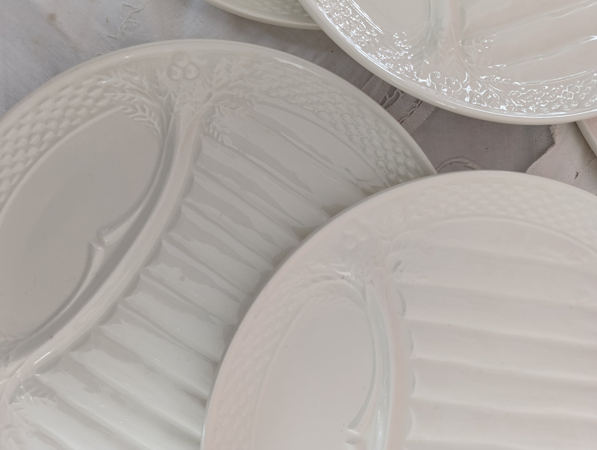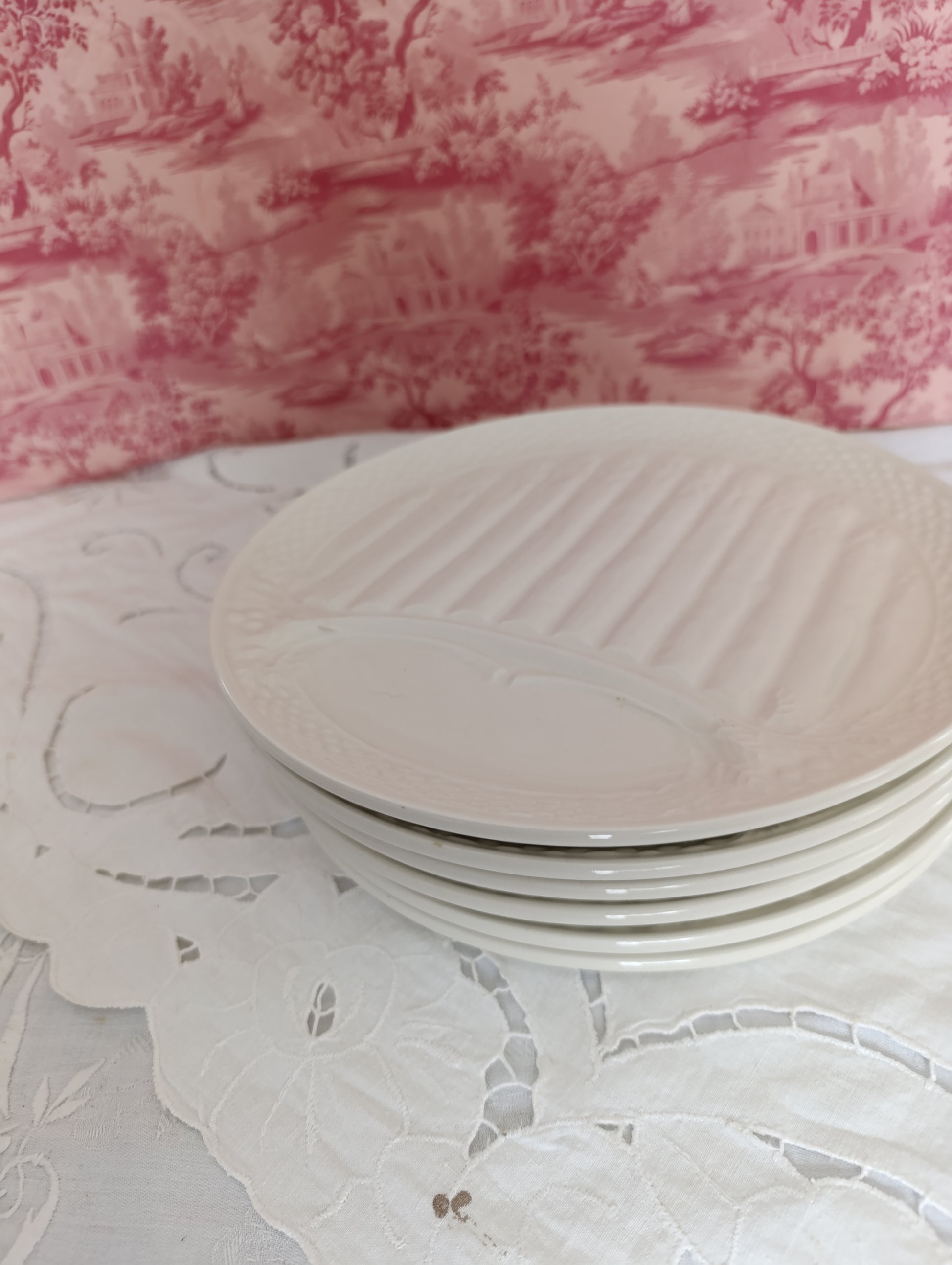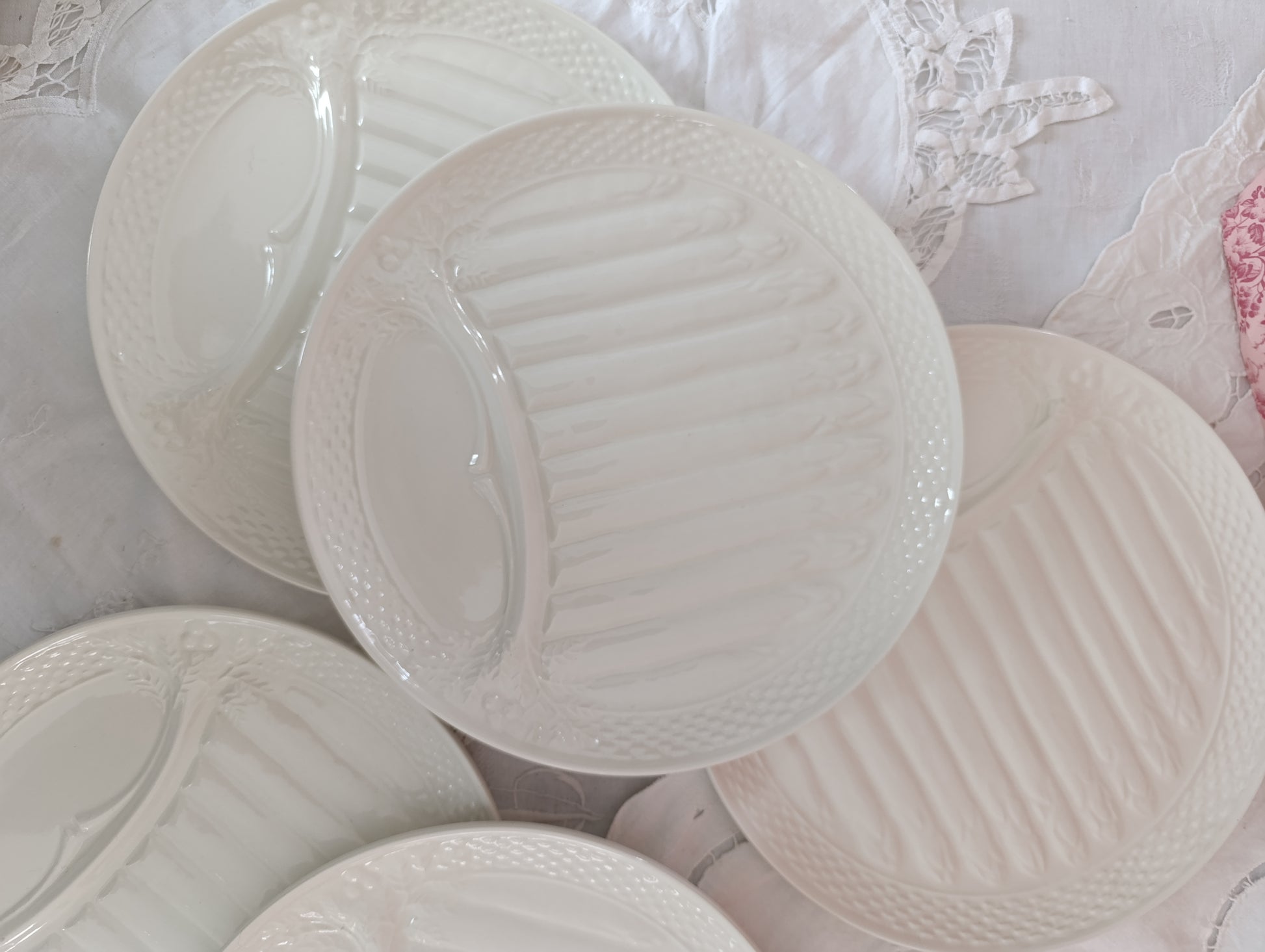 Ensemble de 6 assiettes à asperge Saint Amand en terre de fer blanche
