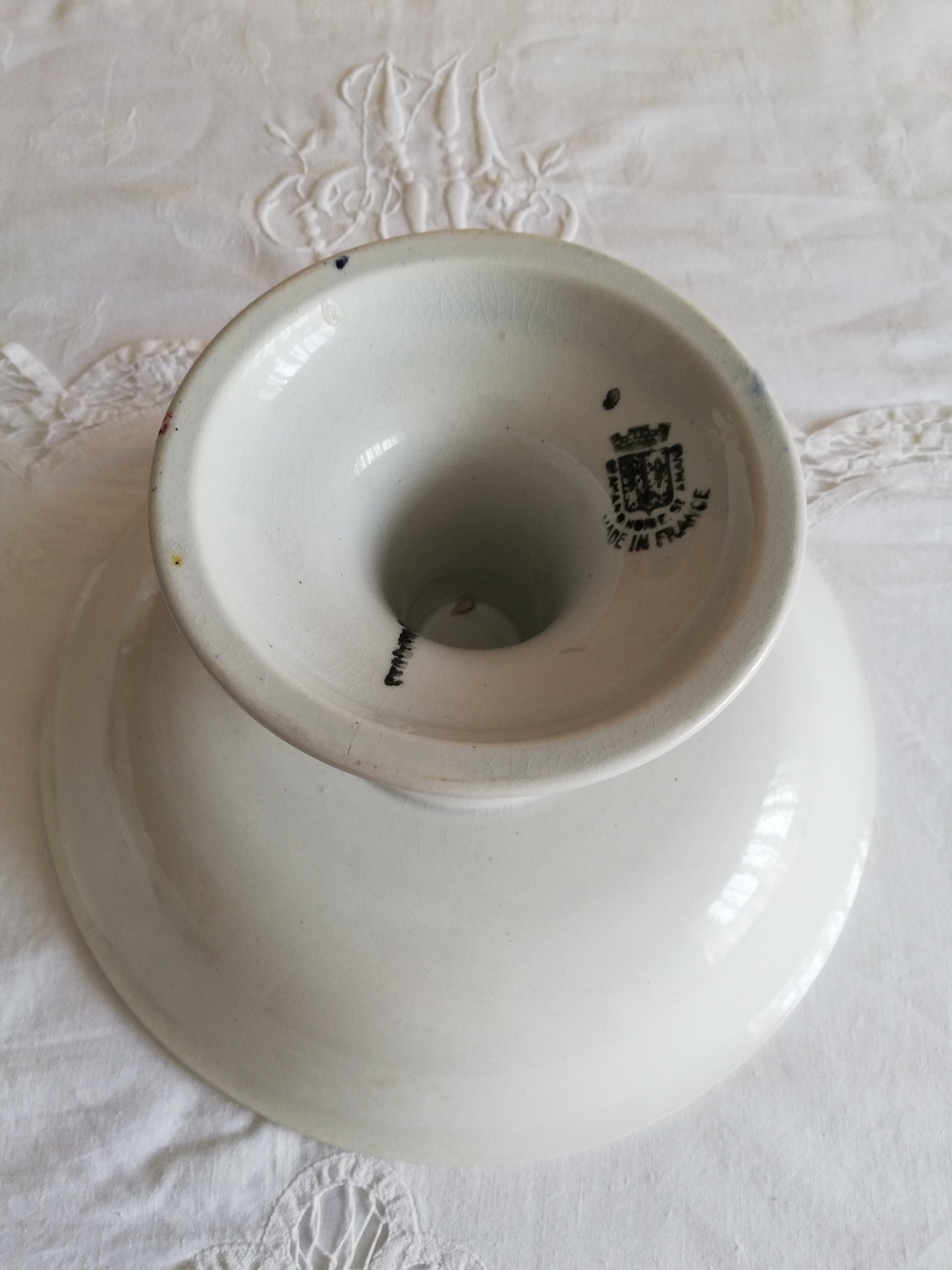 Compotier haut diamètre 23 cm environ hauteur 11 cm, légère trace d usure sur le contour