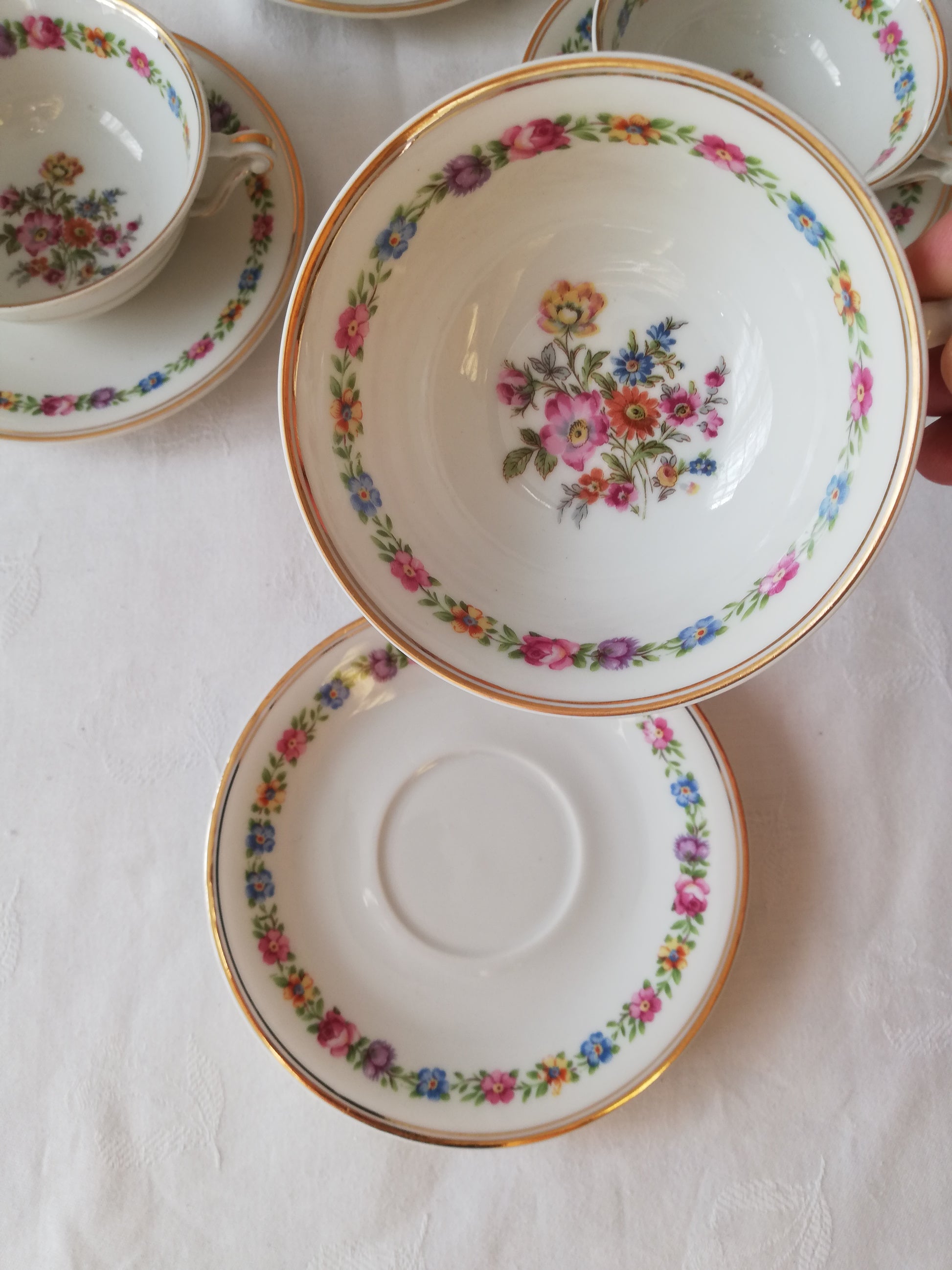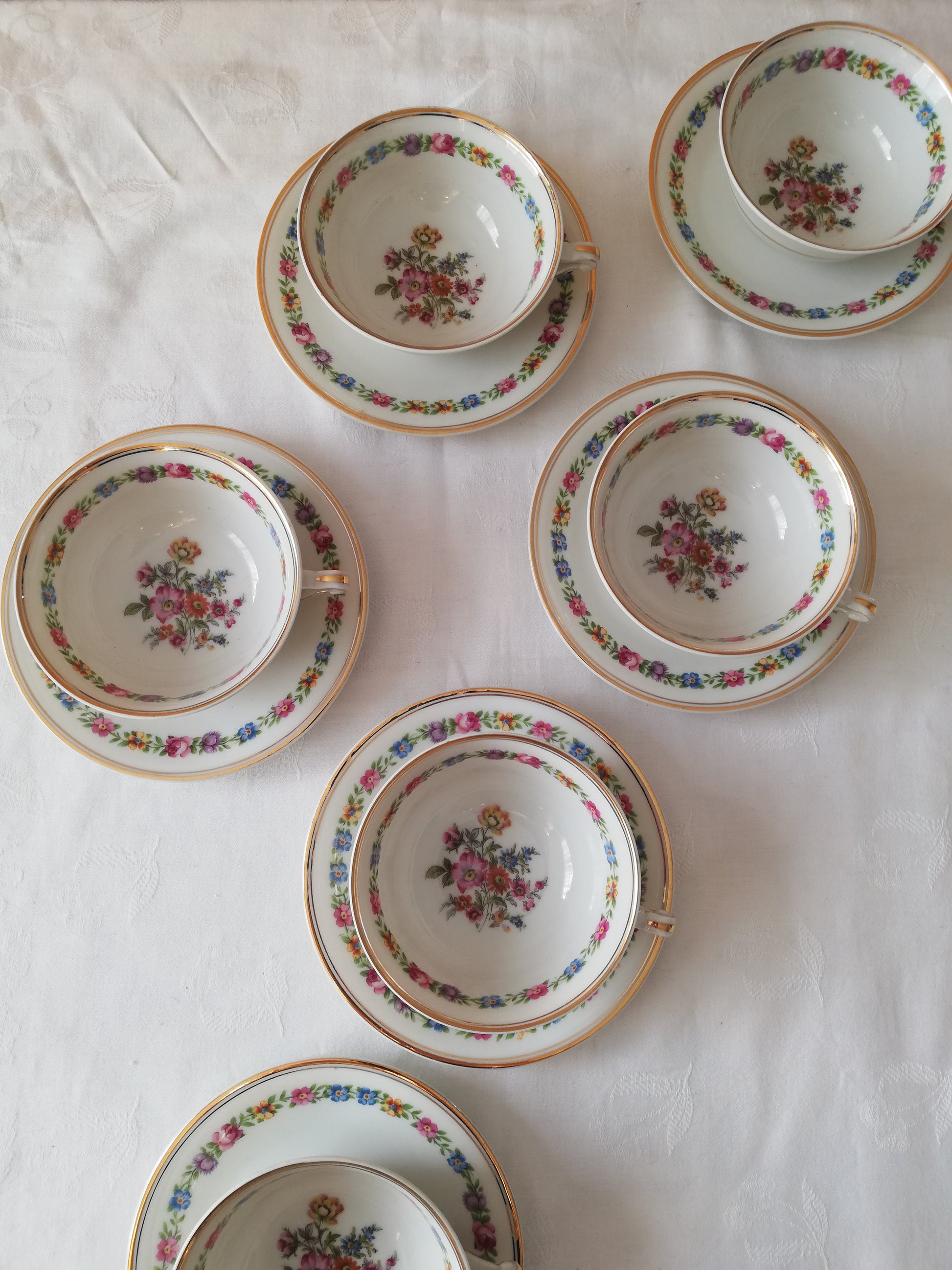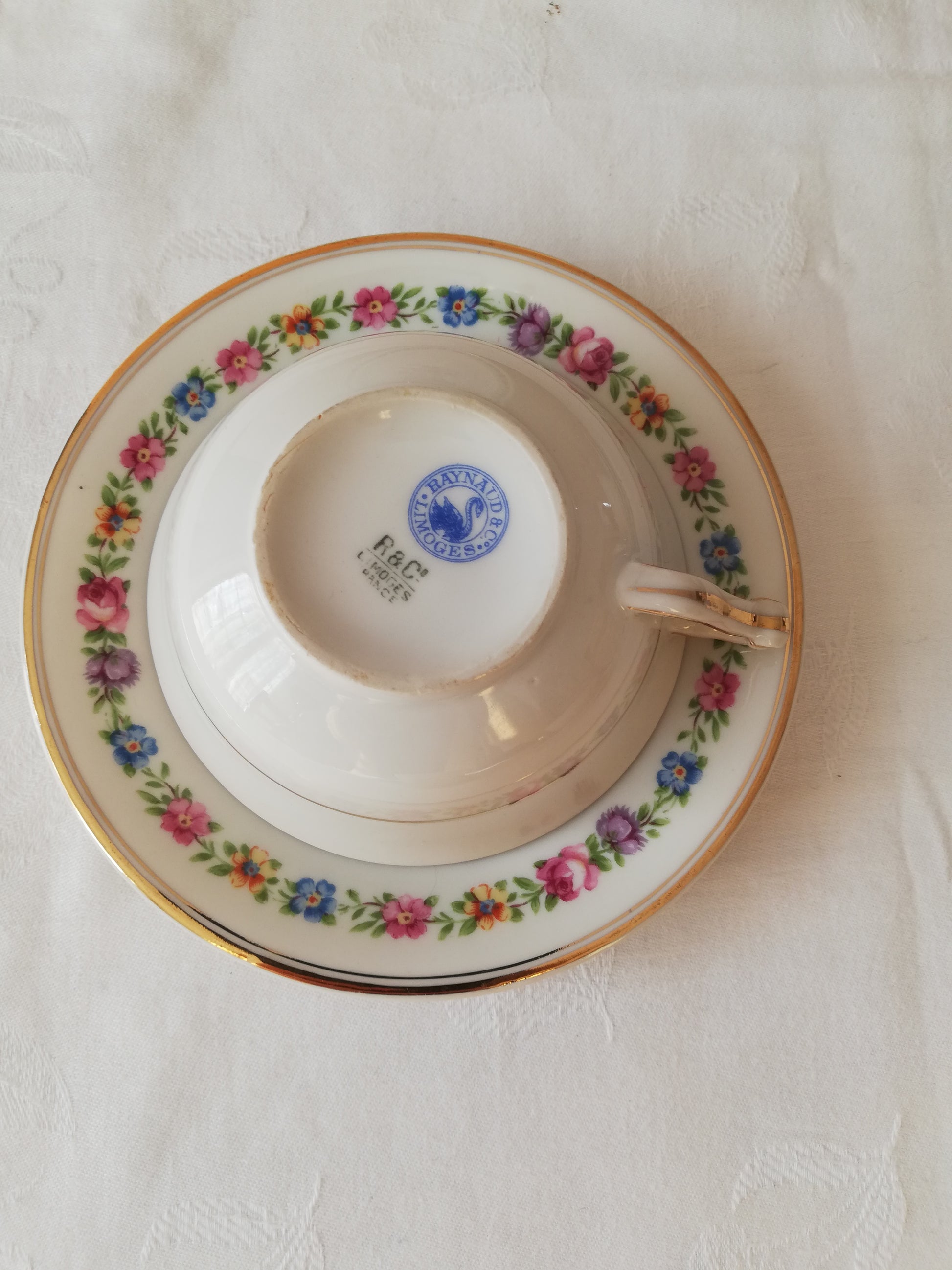 Service à thé limoges Raynaud et Cie composé de 6 sous tasses et tasses