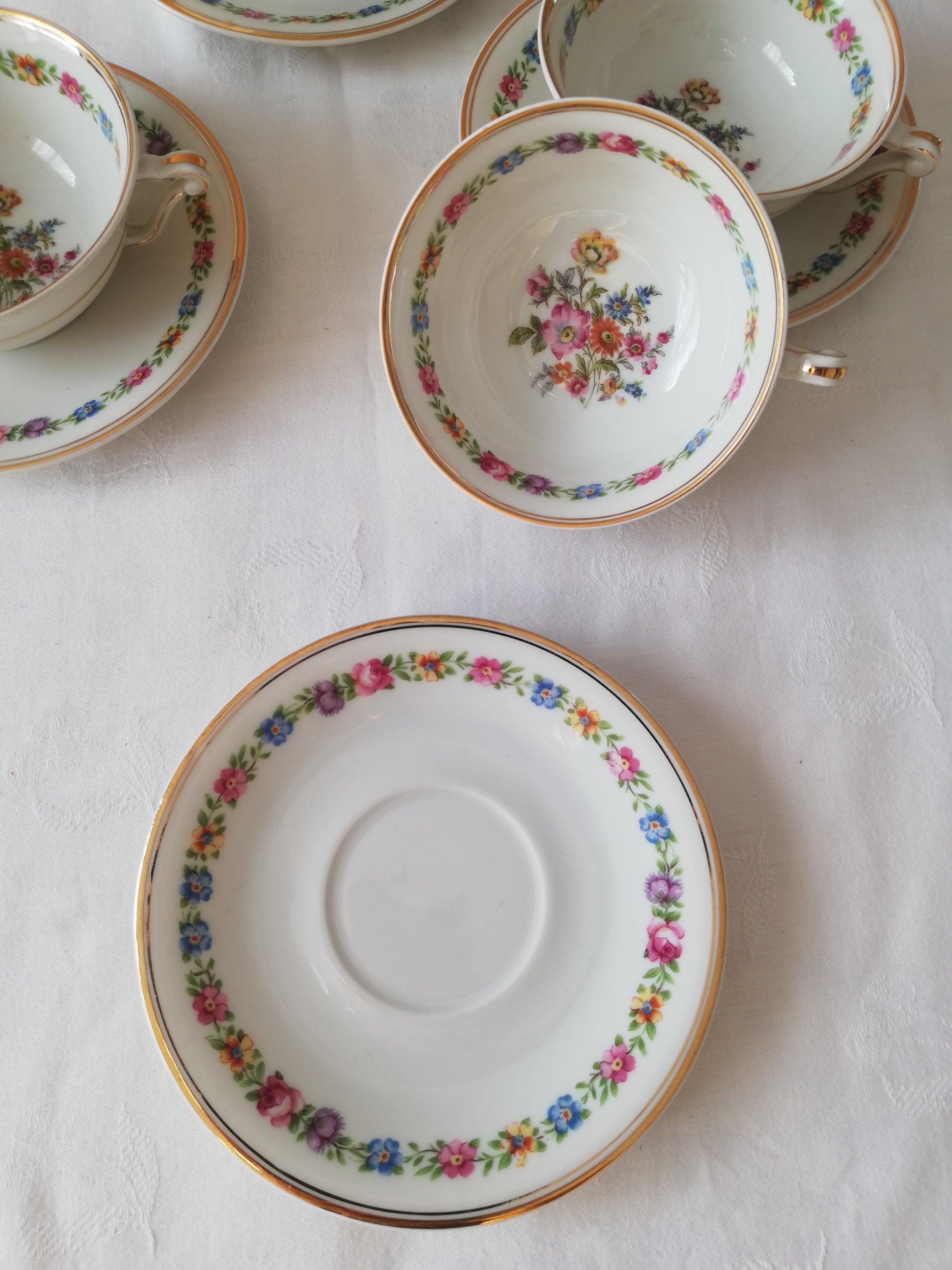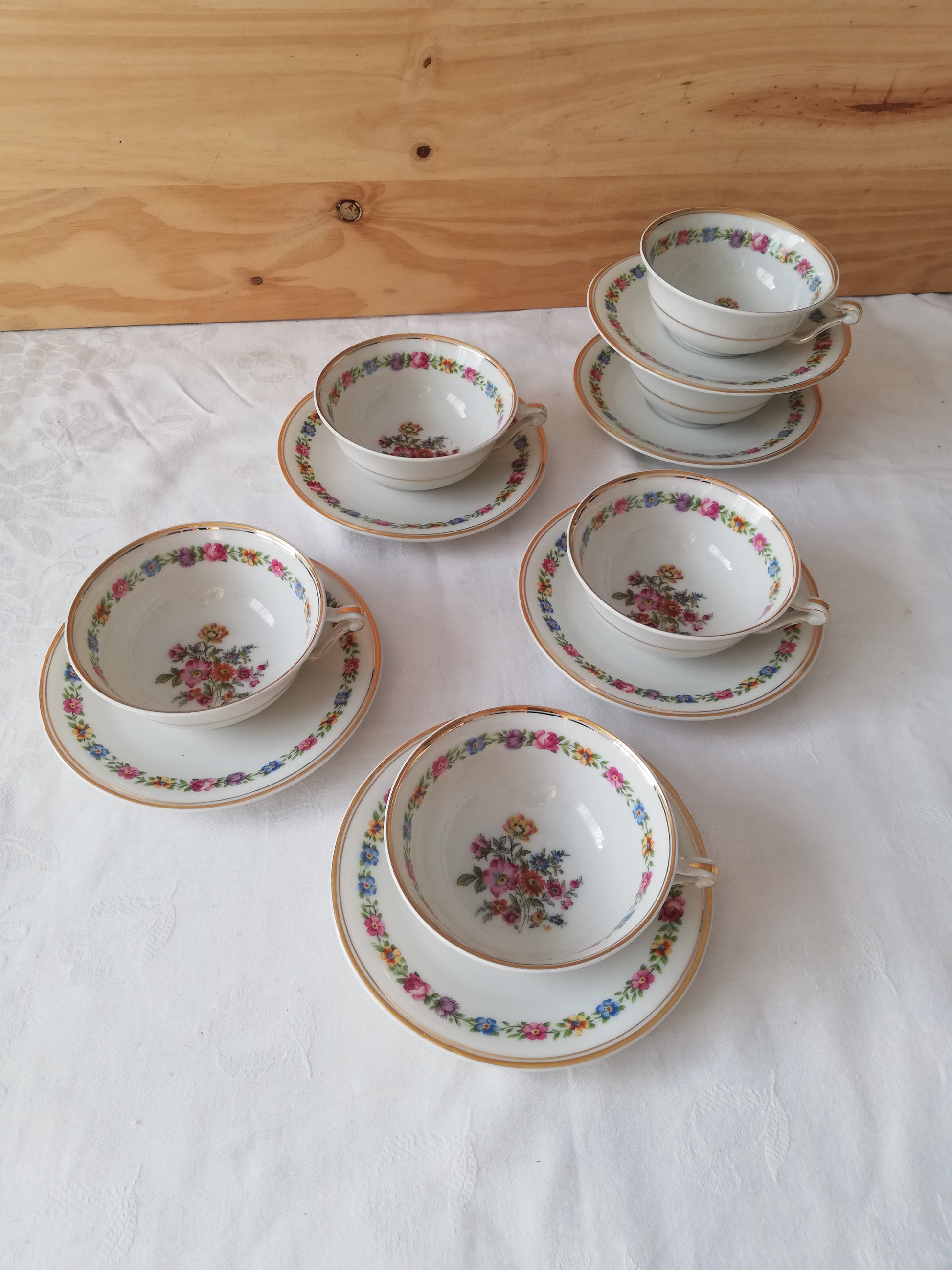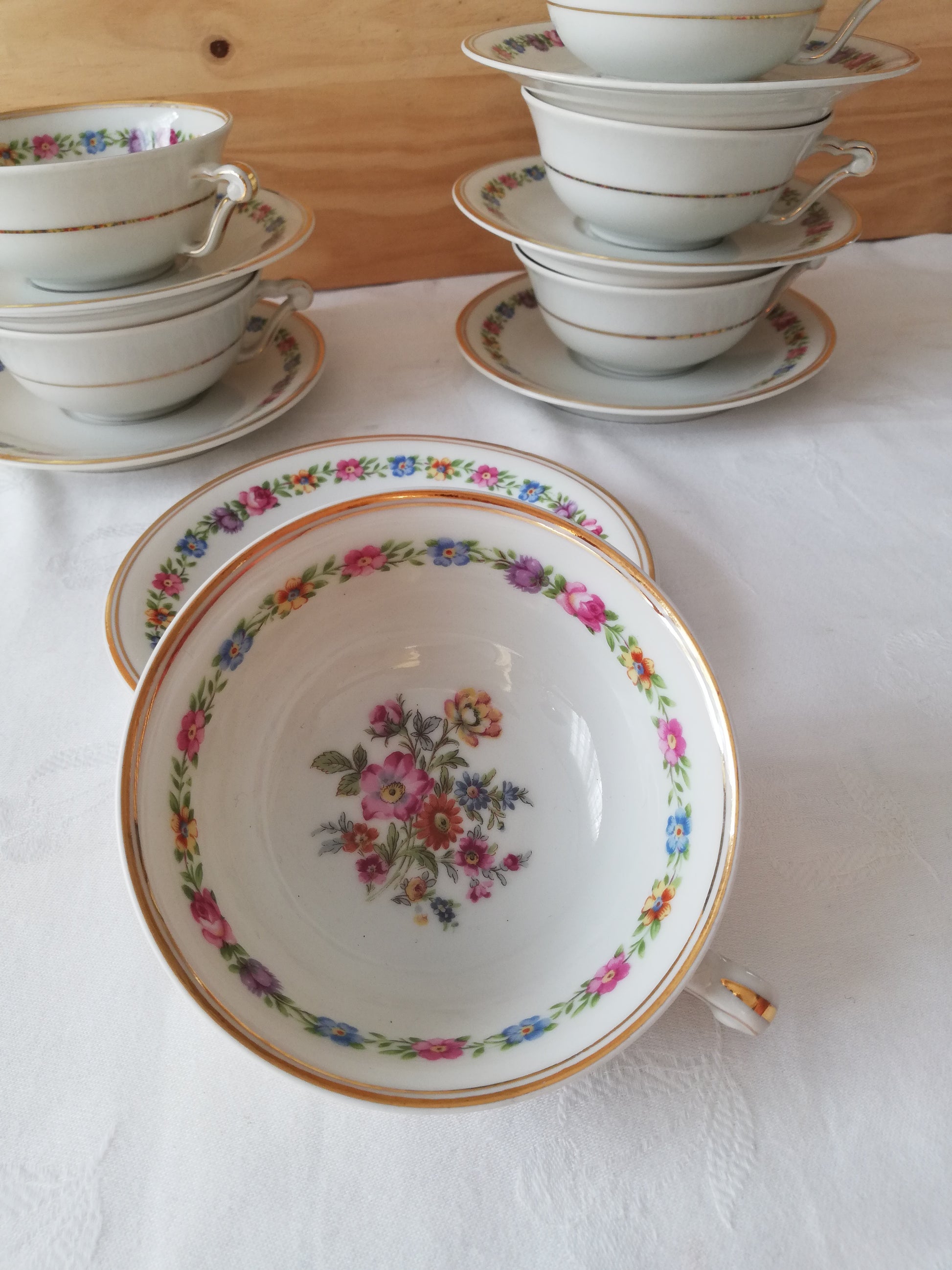 Service à thé limoges Raynaud et Cie composé de 6 sous tasses et tasses