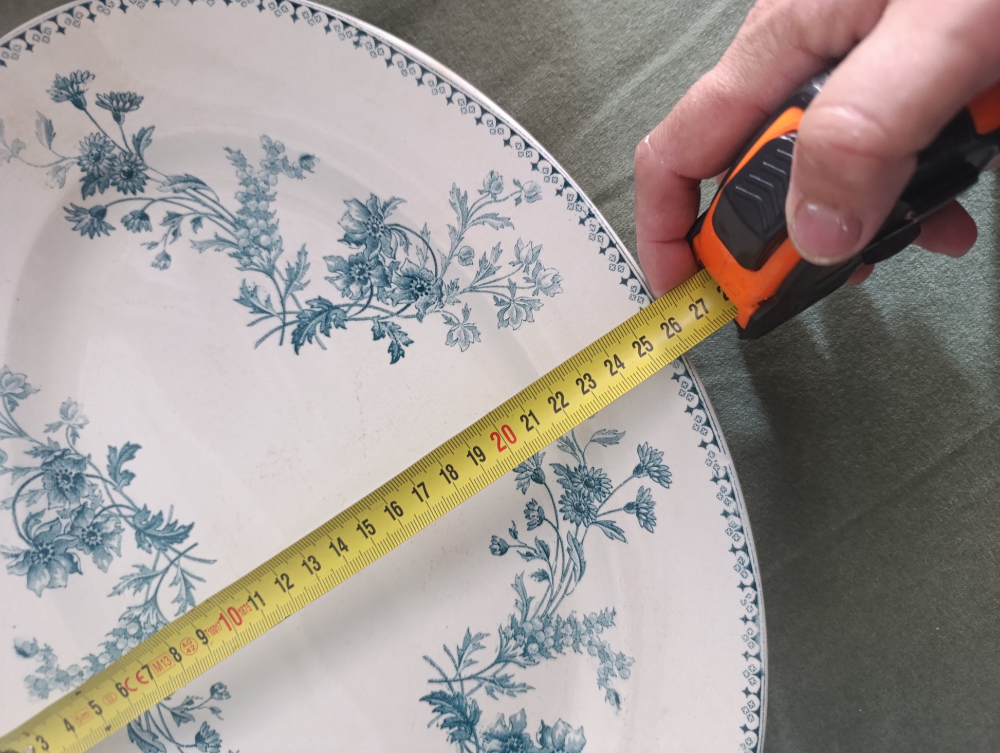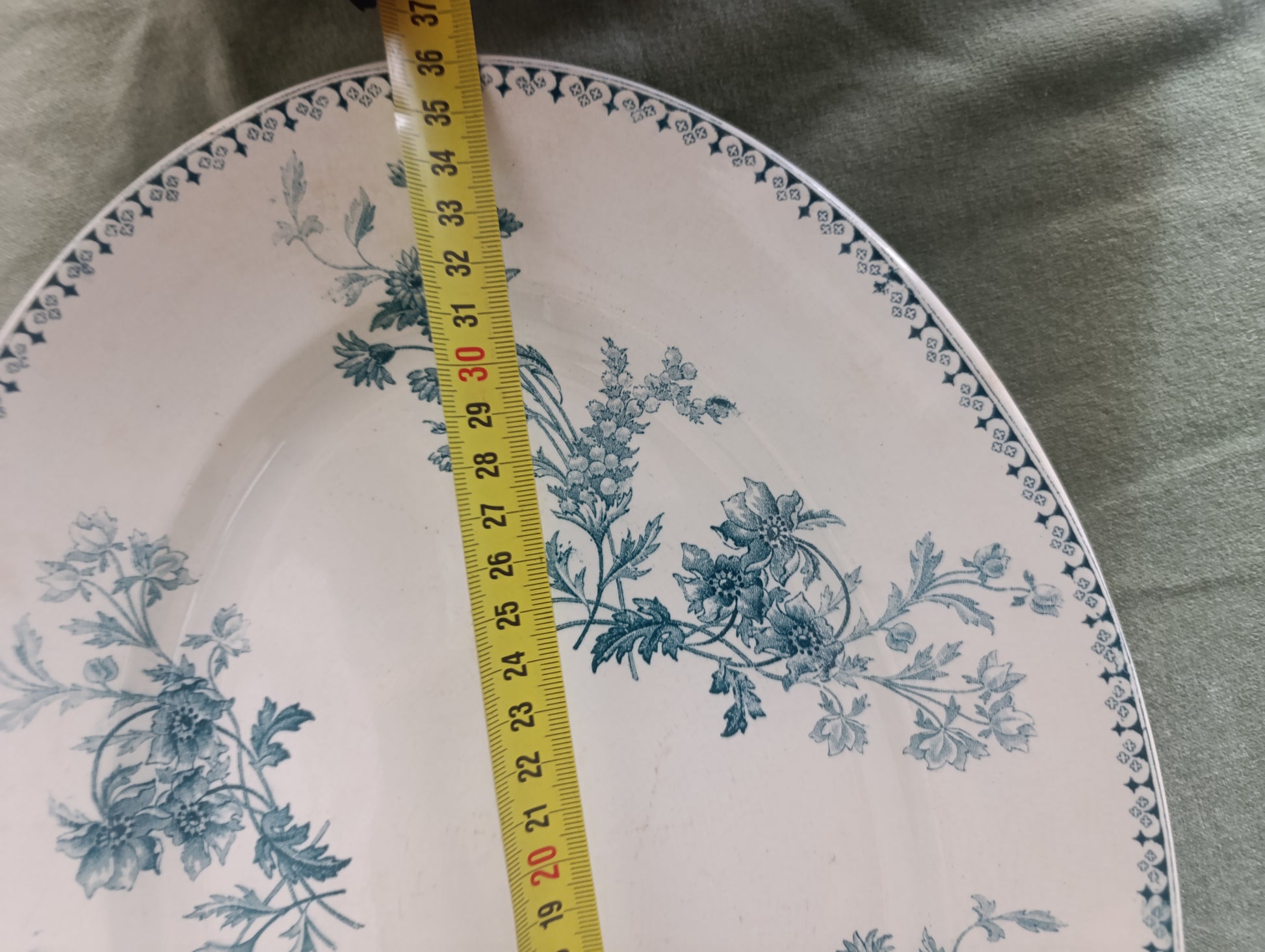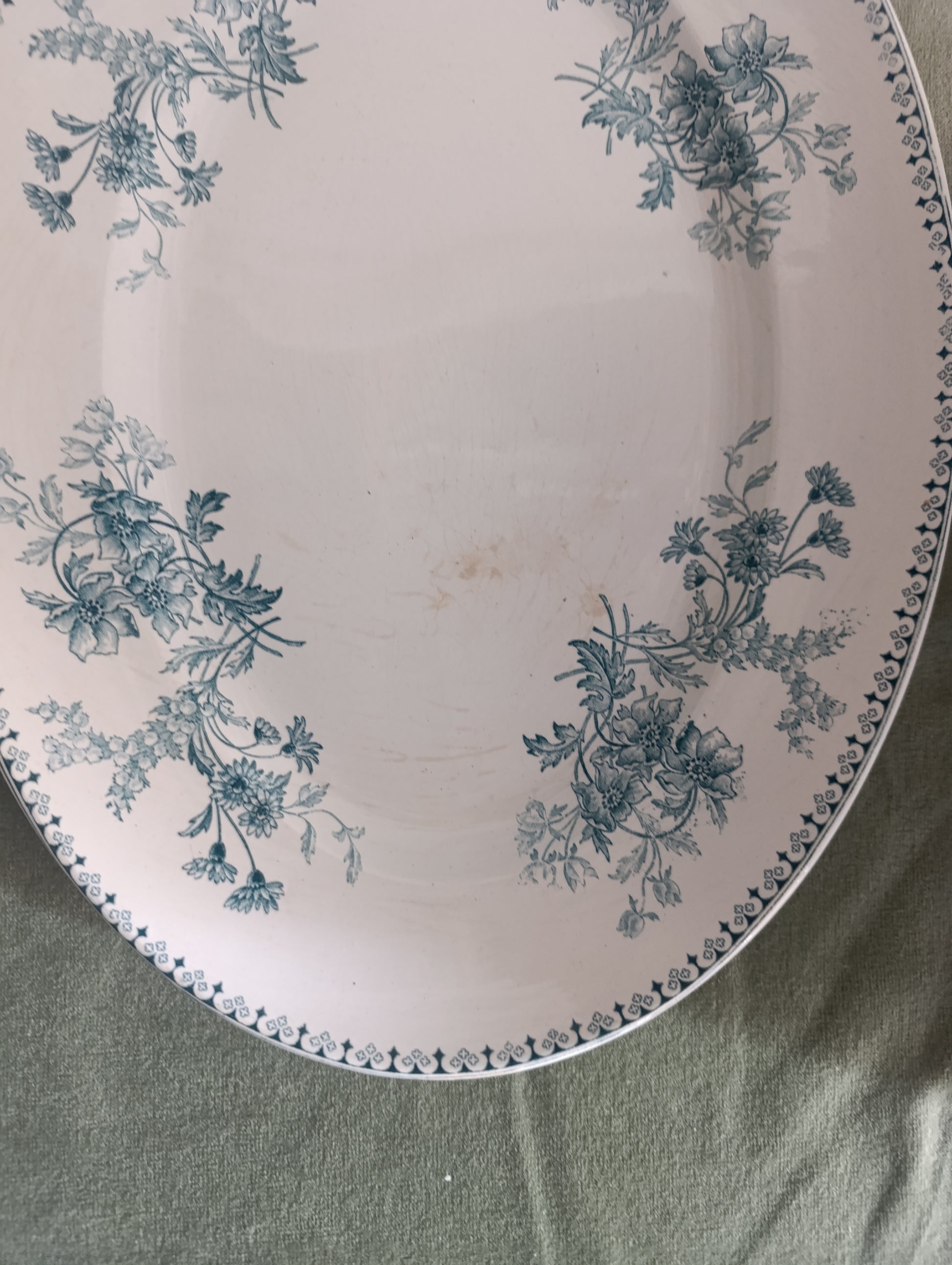 Grand plat ovale en terre de fer vert bleu modèle Elvire de la manufacture de Sarreguemines