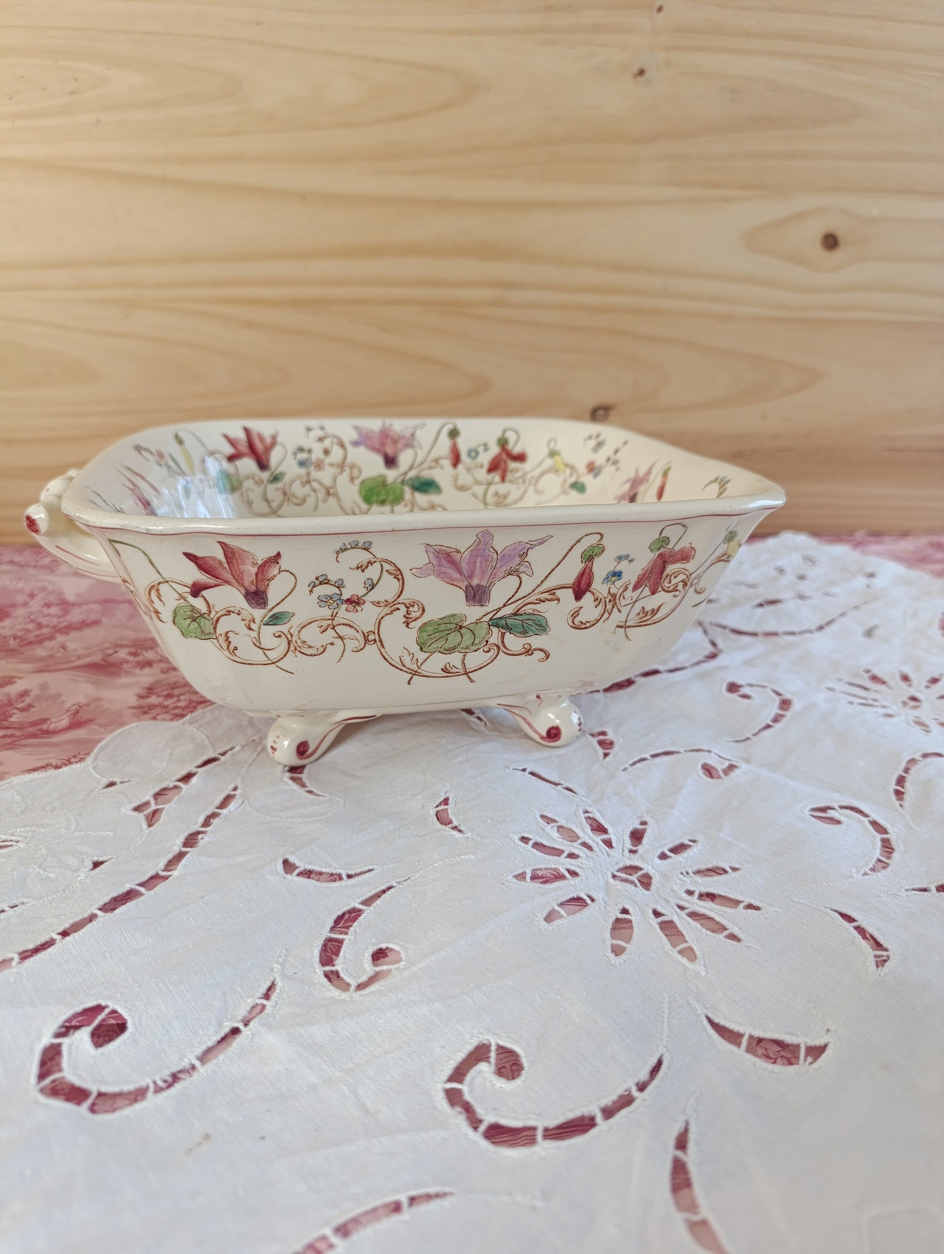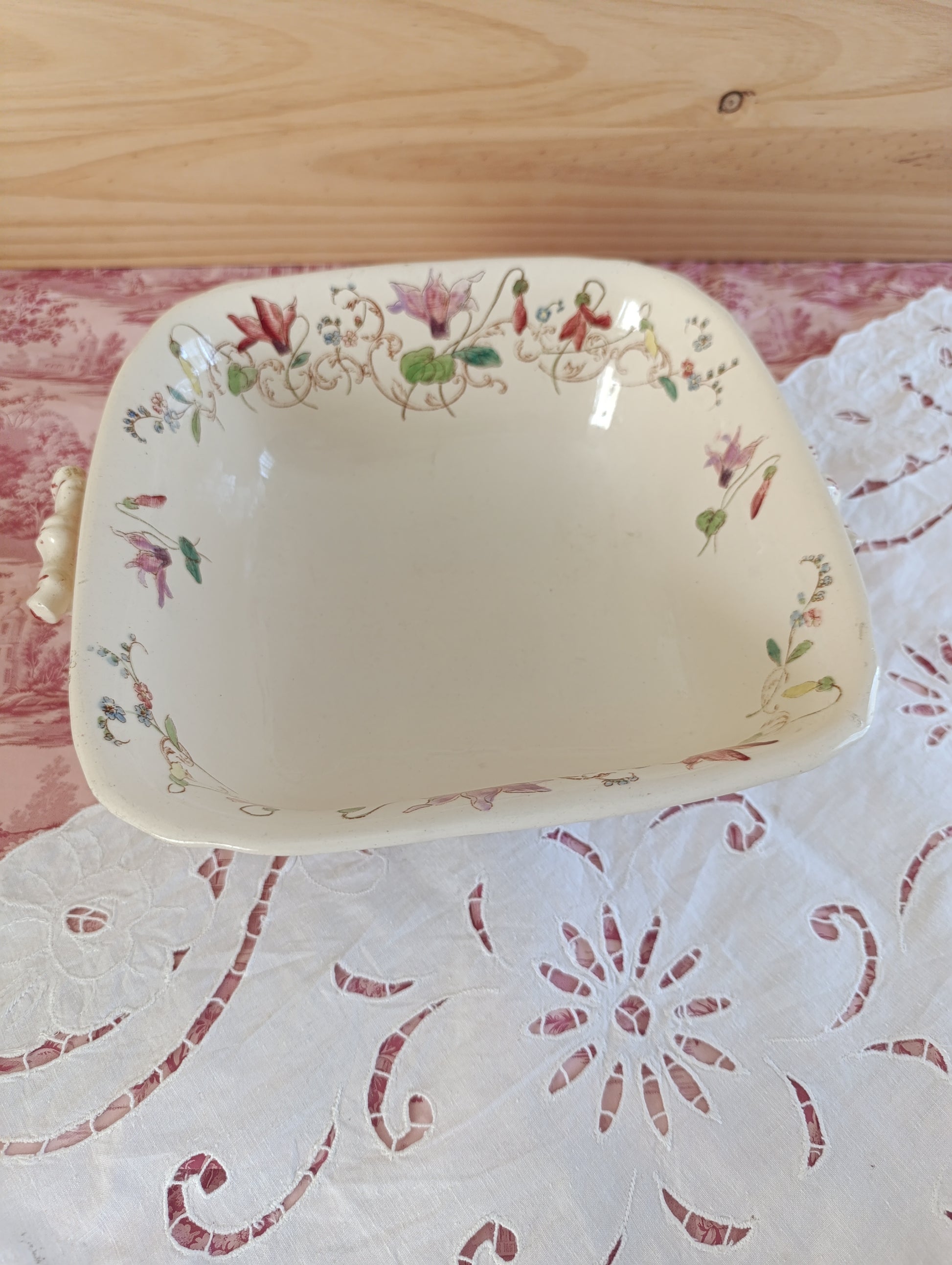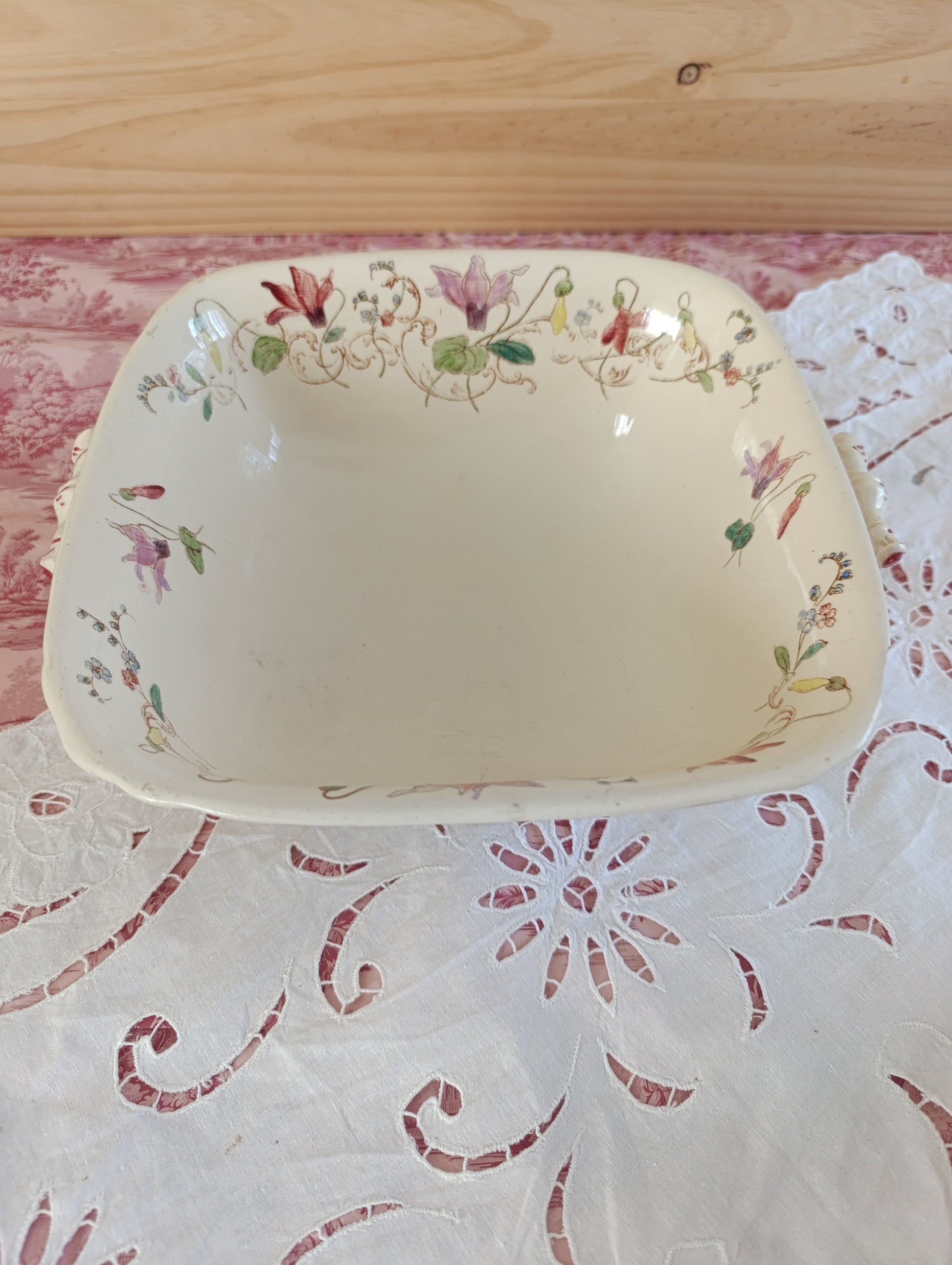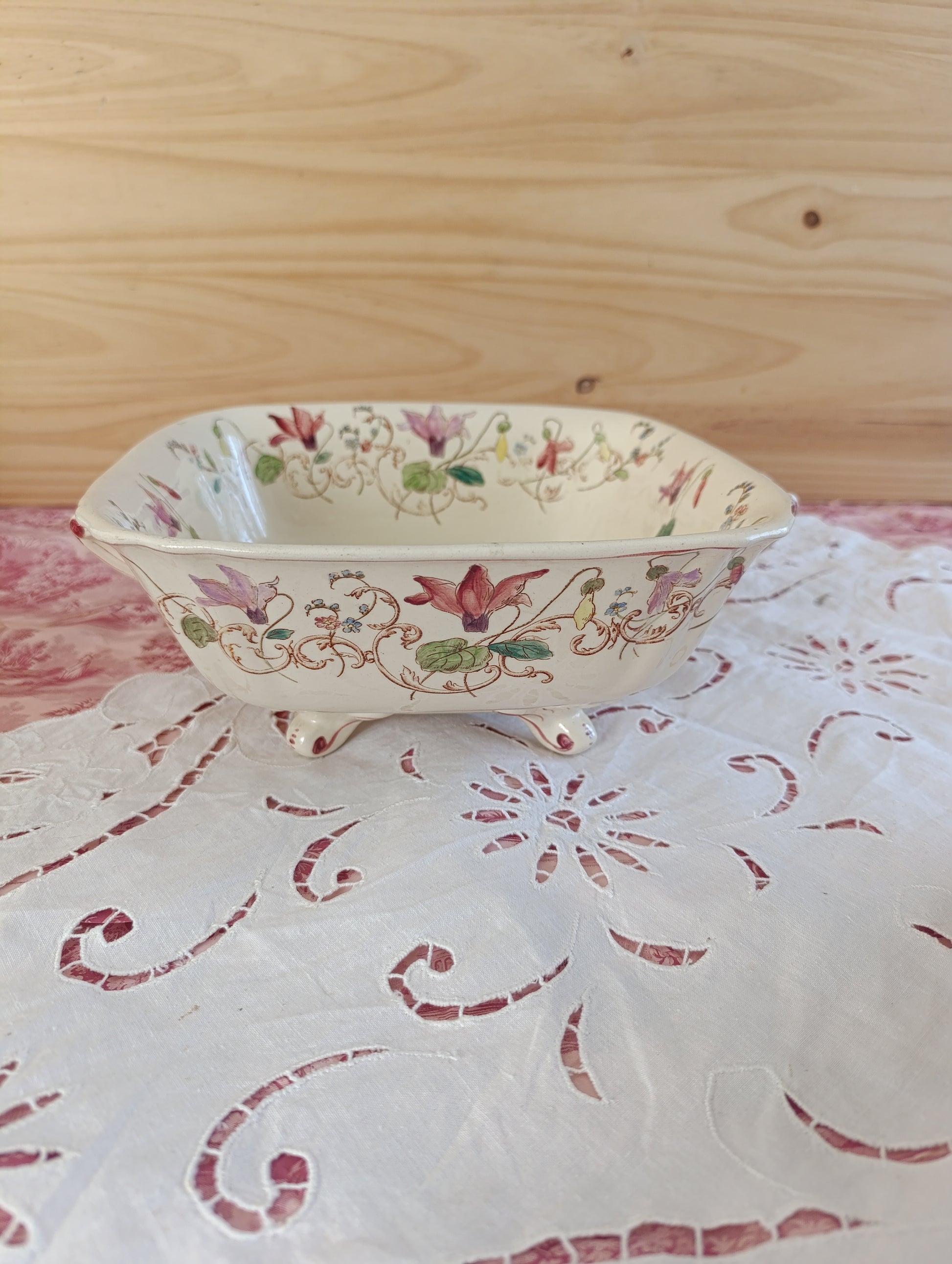 Saladier carré en terre de fer polychrome modèle Cyclamen de Longchamp