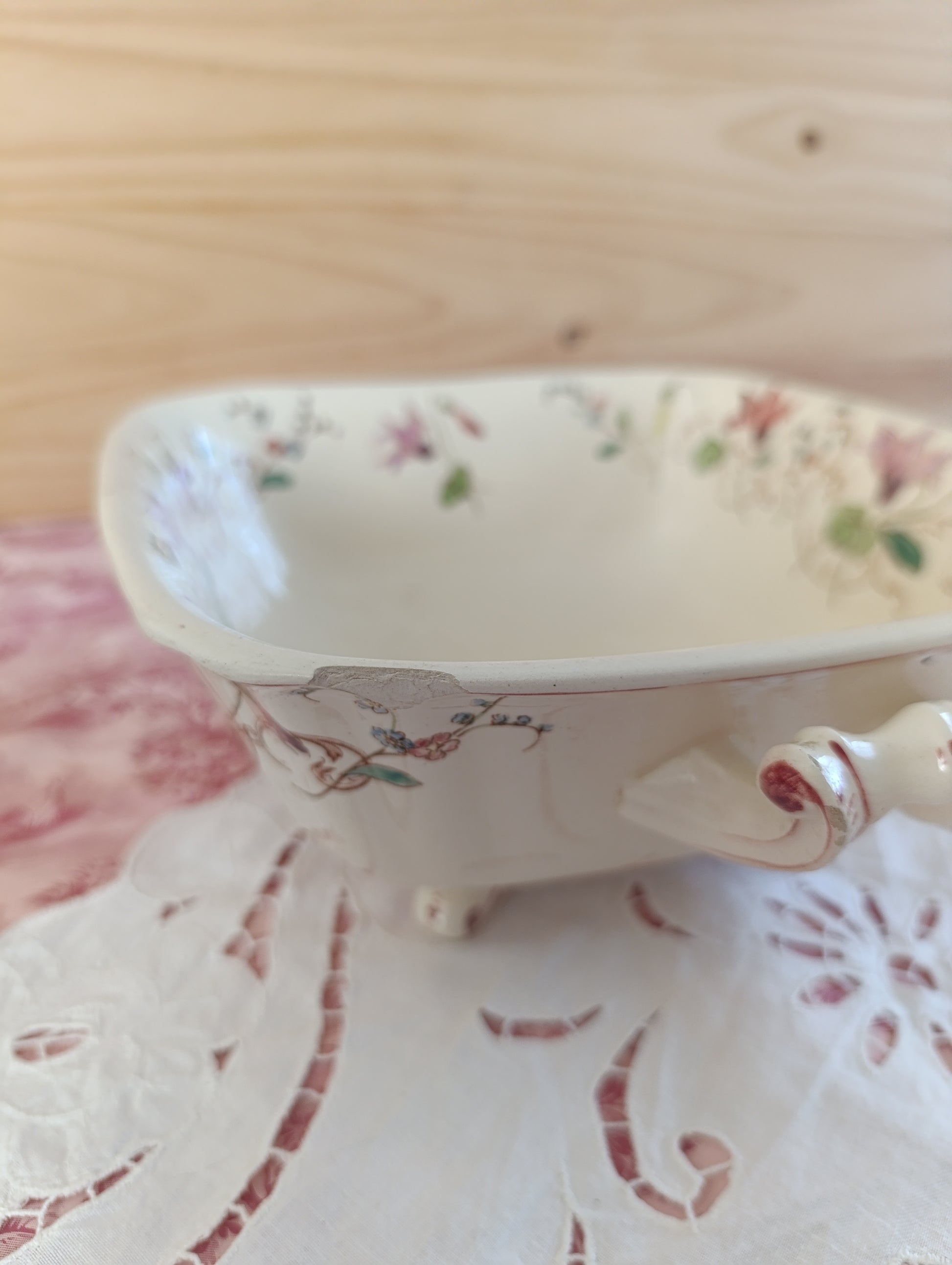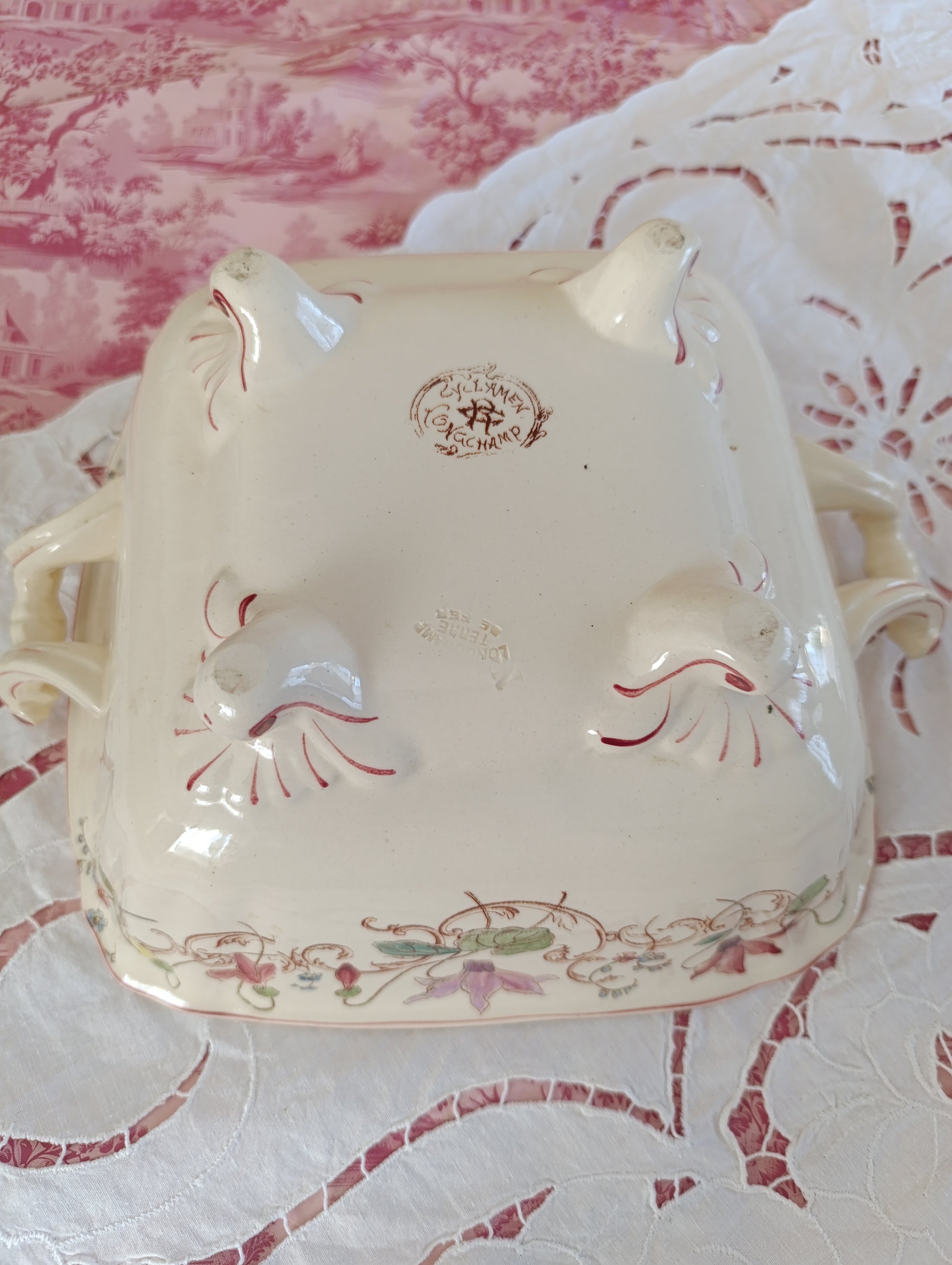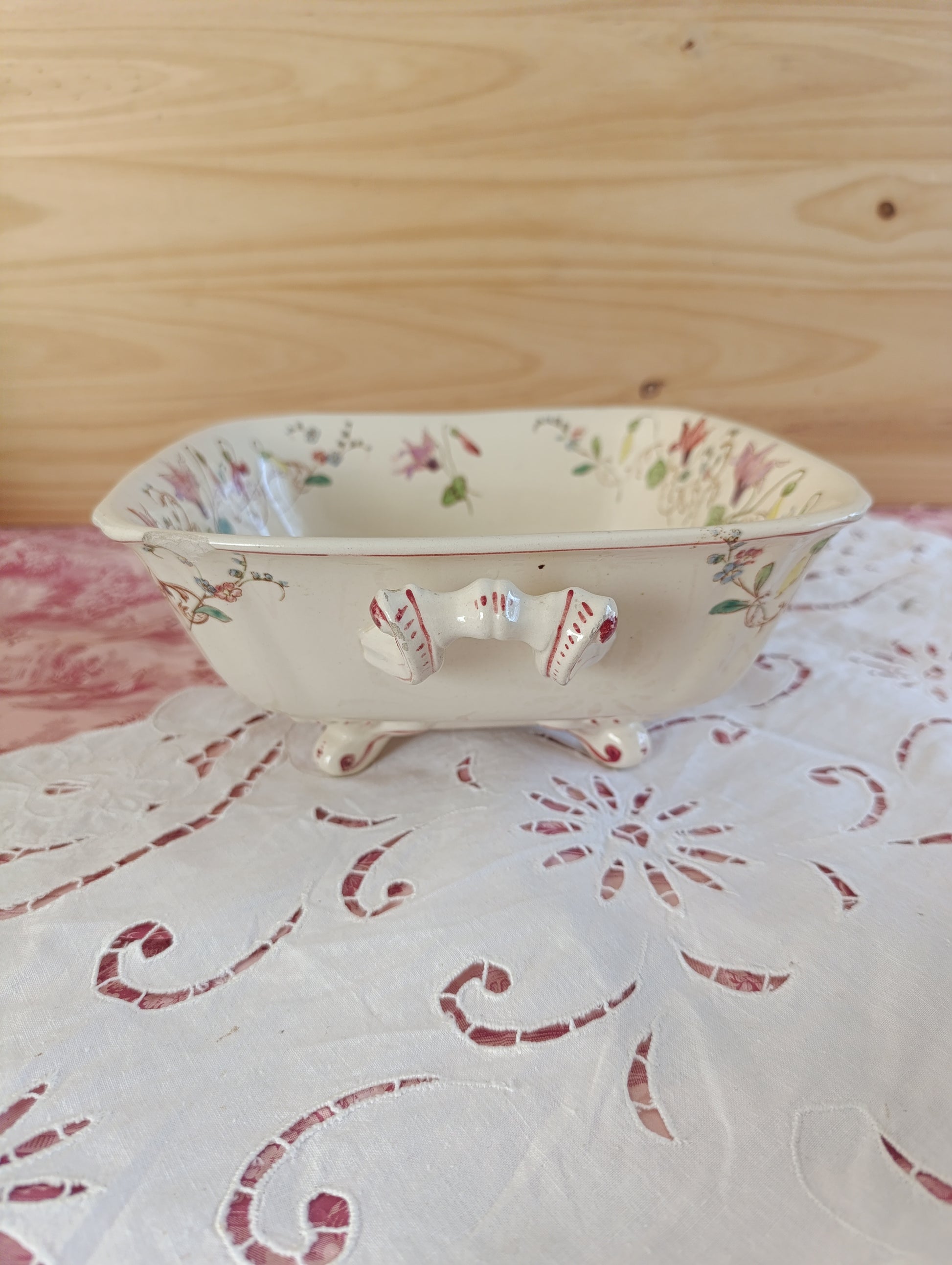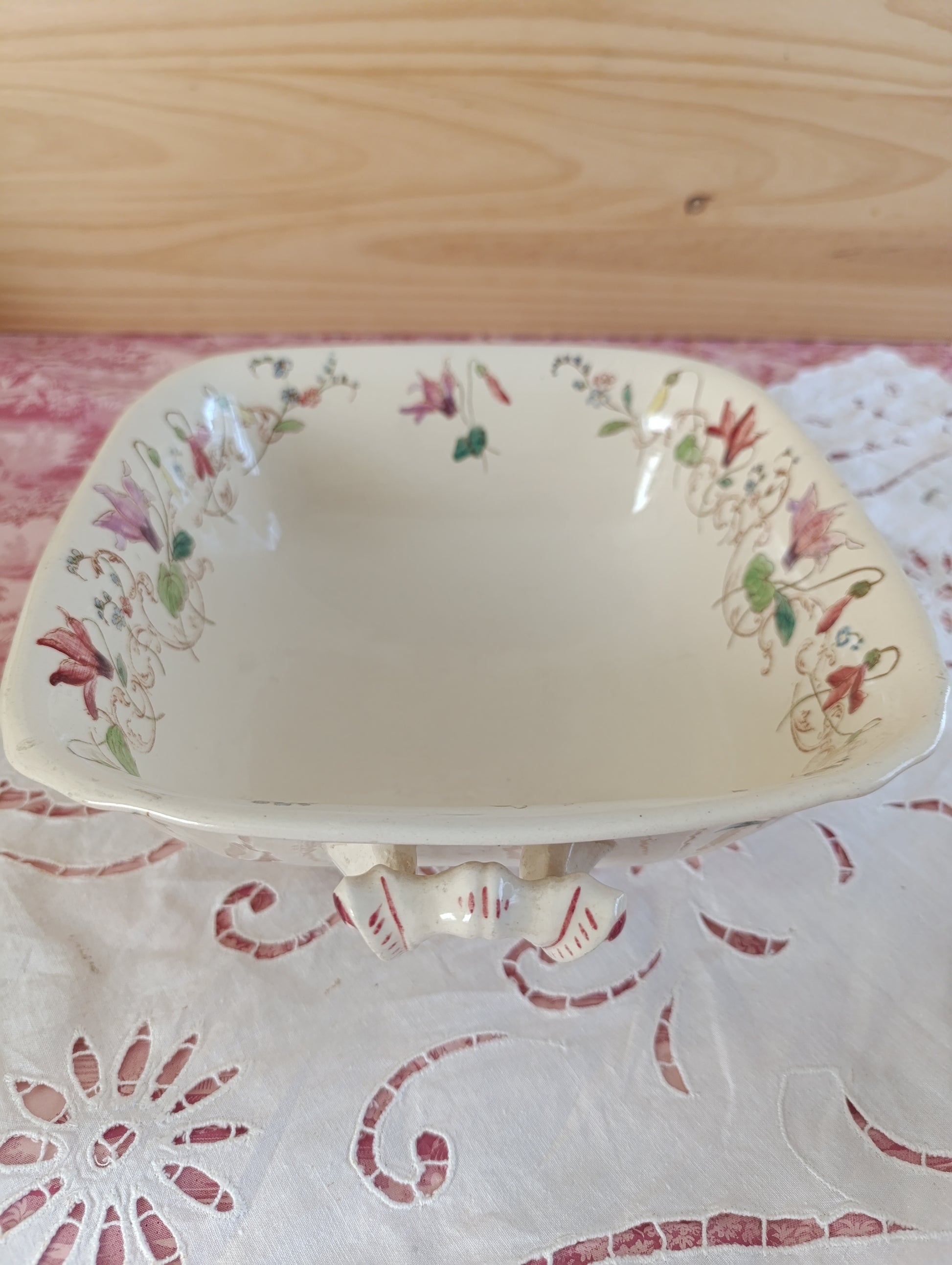 Saladier carré en terre de fer polychrome modèle Cyclamen de Longchamp