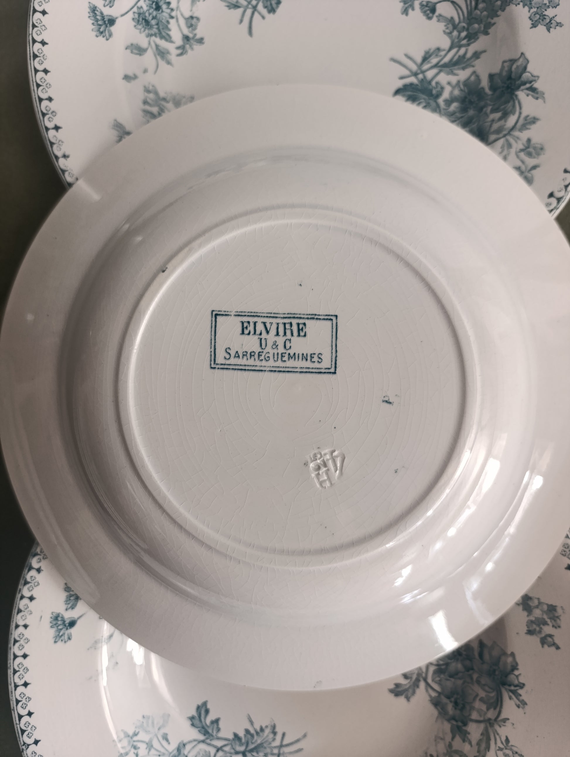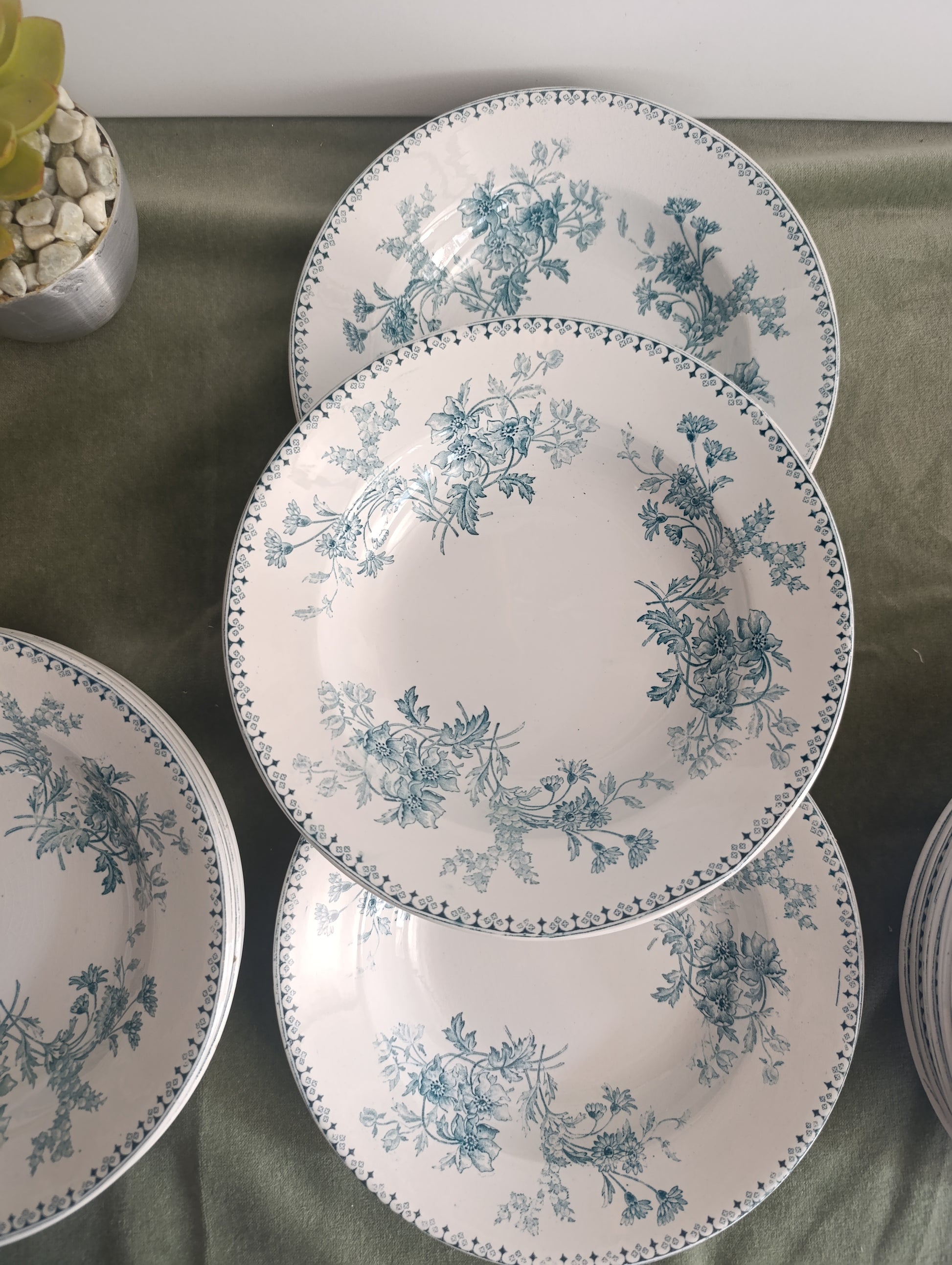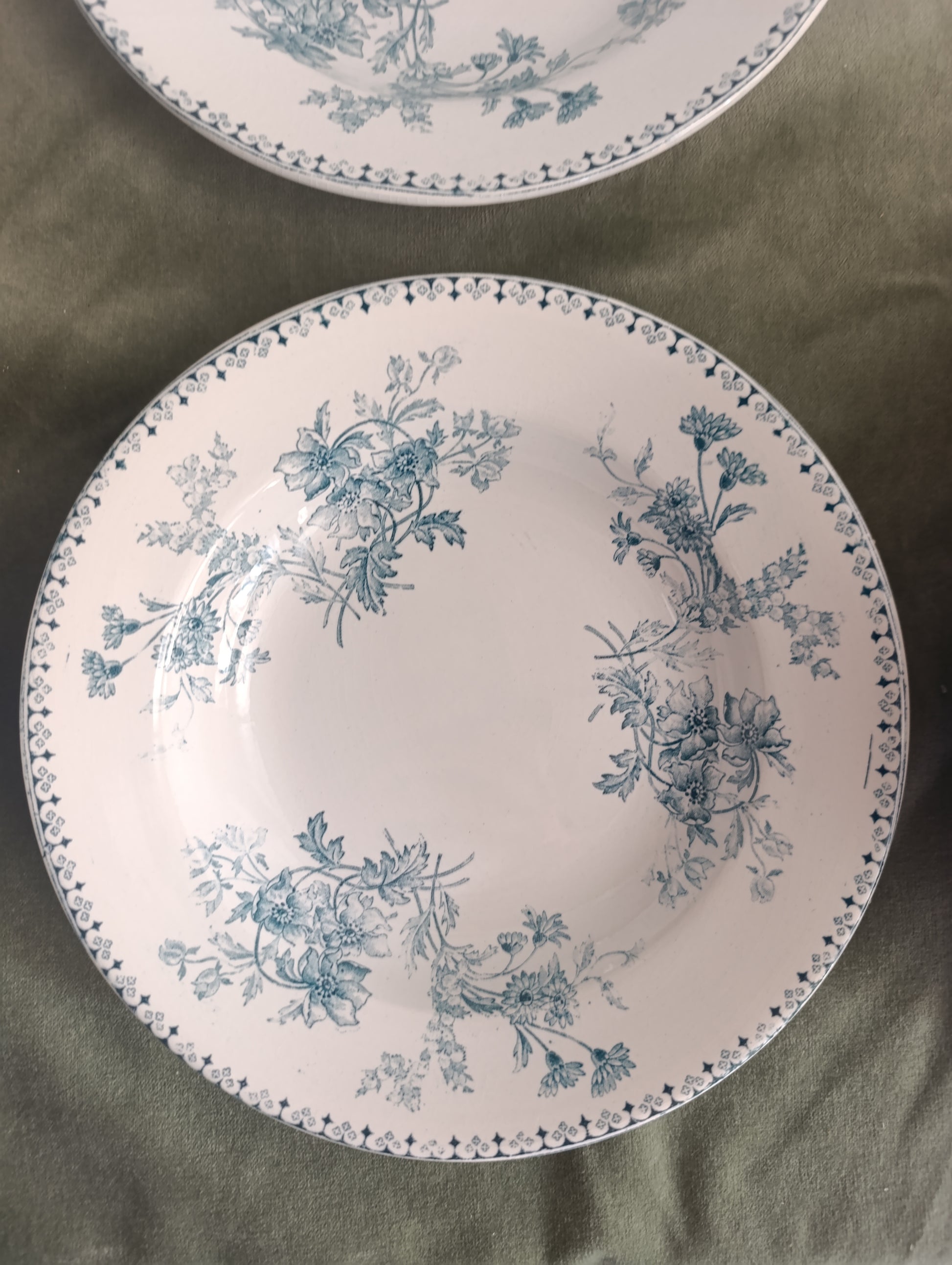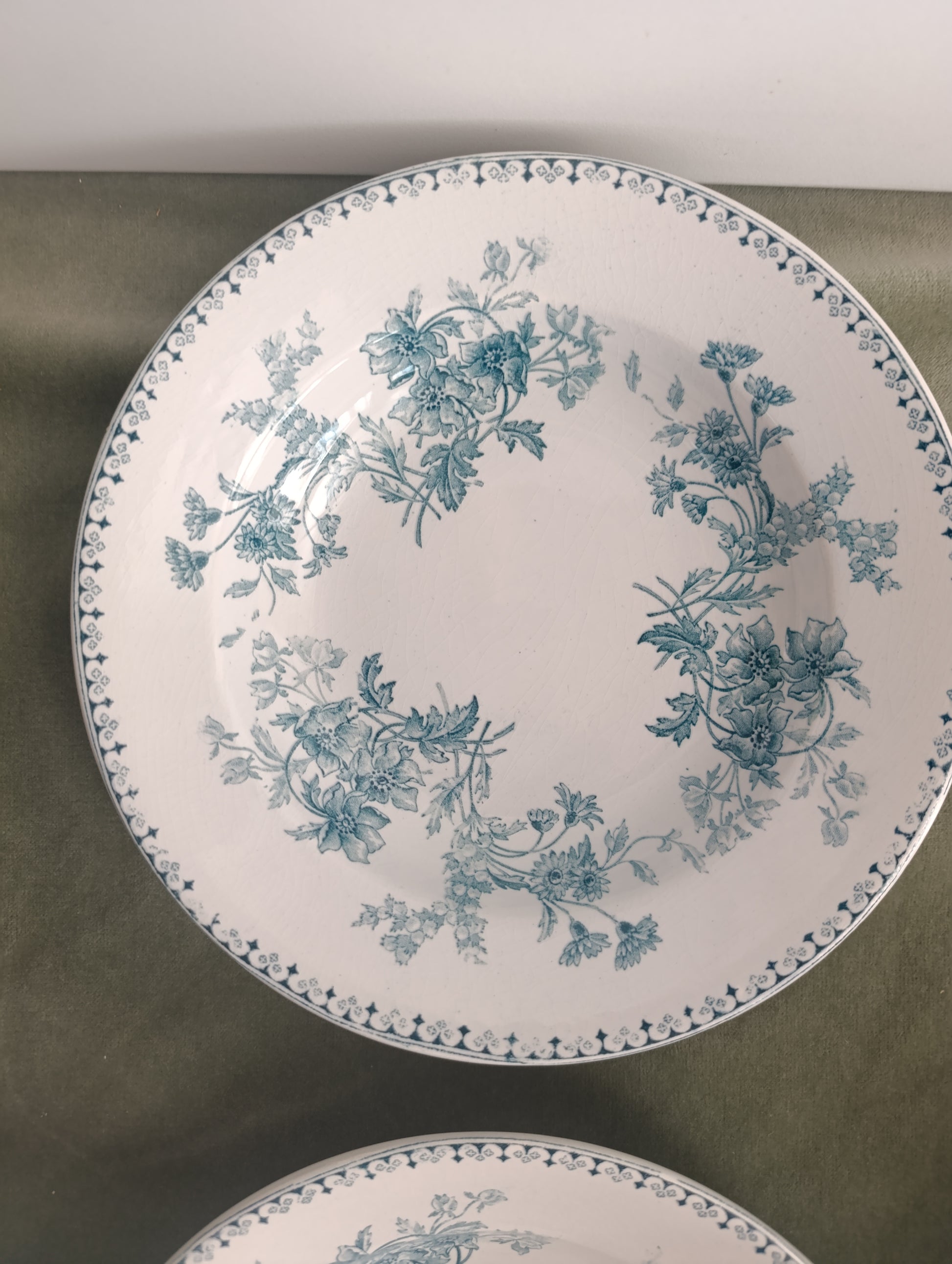 Assiette creuse en terre de fer vert bleu modèle Elvire de la manufacture de Sarreguemines