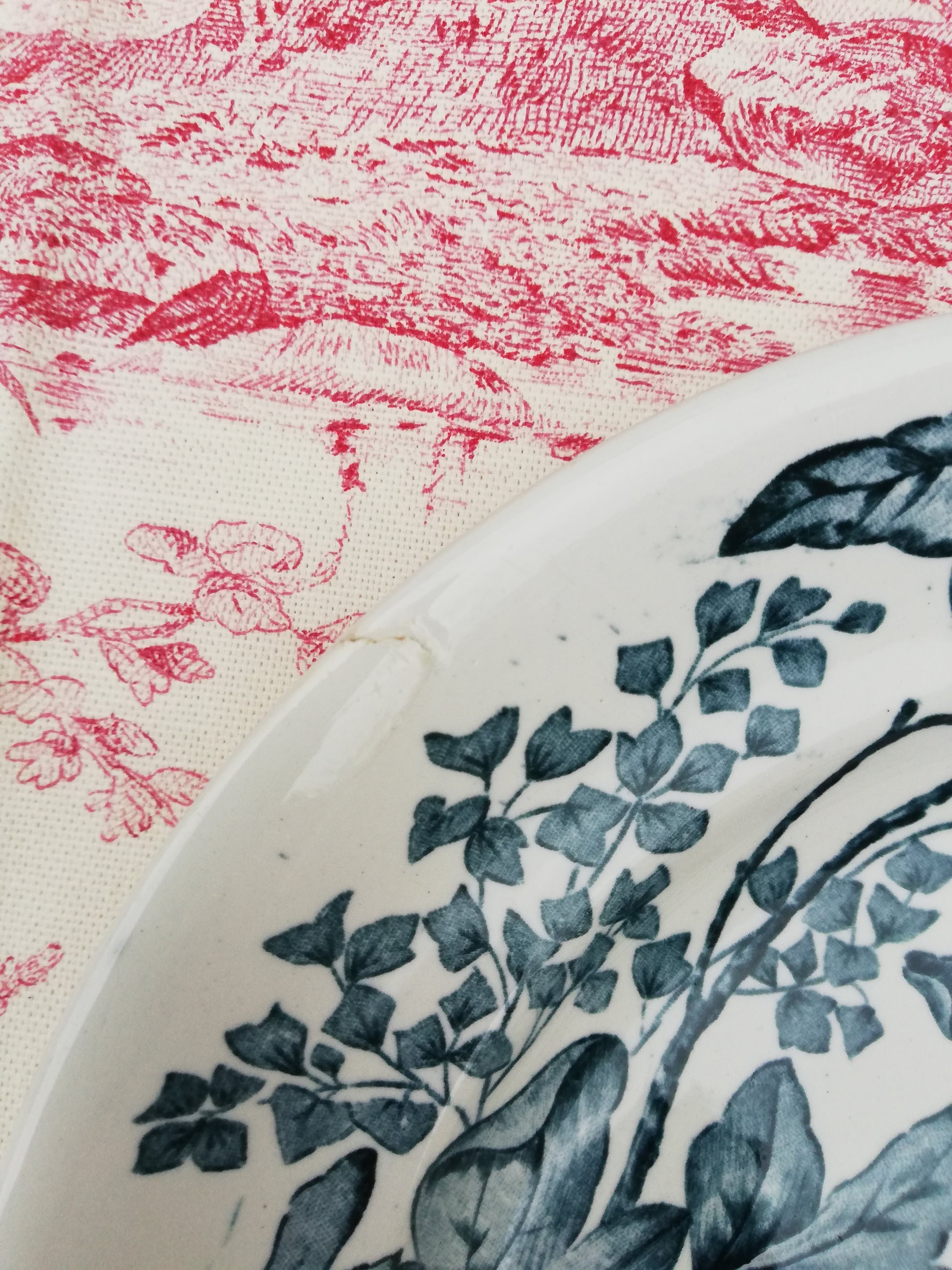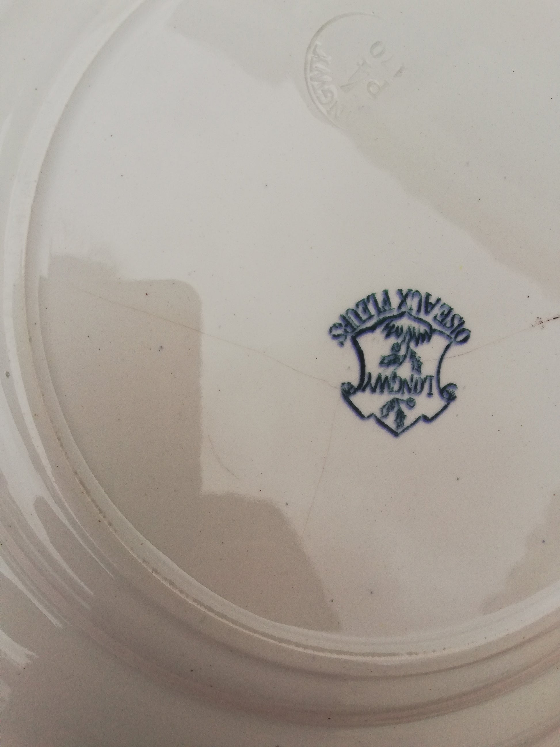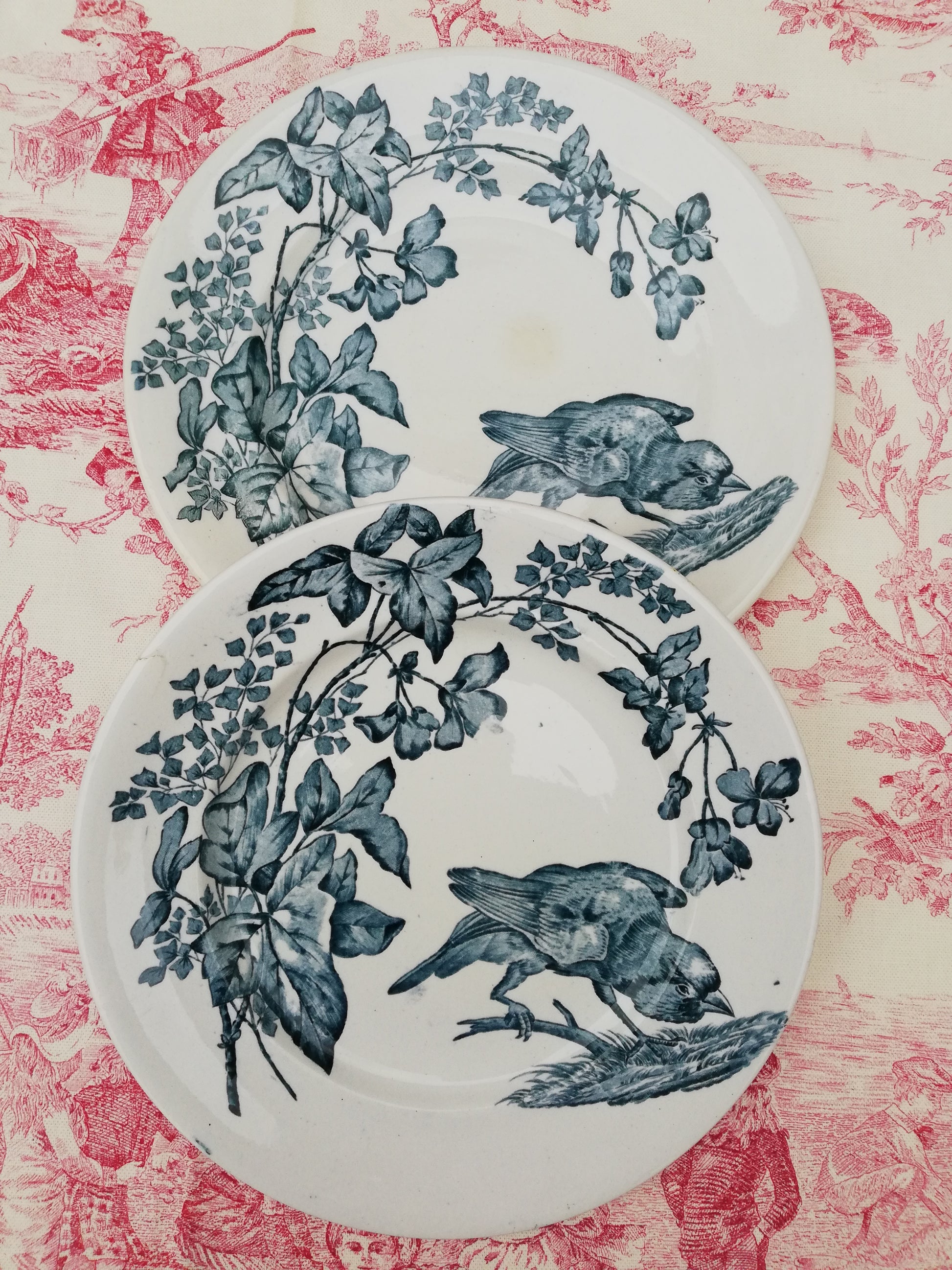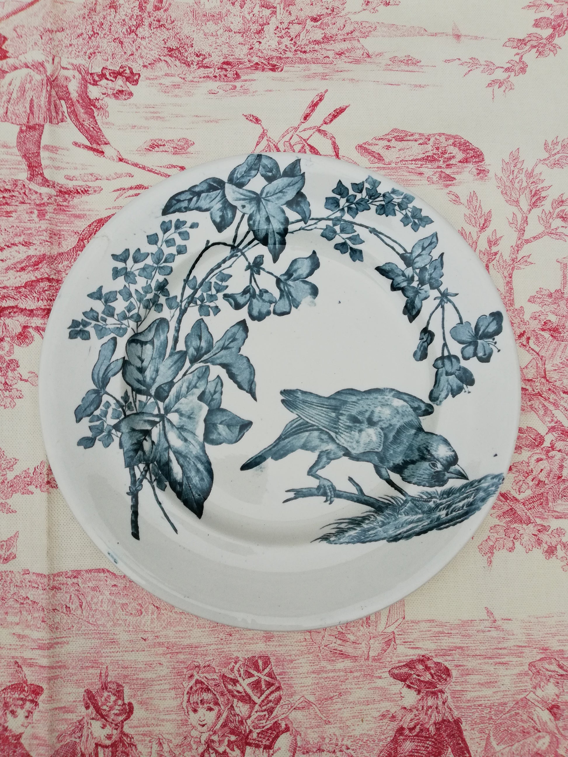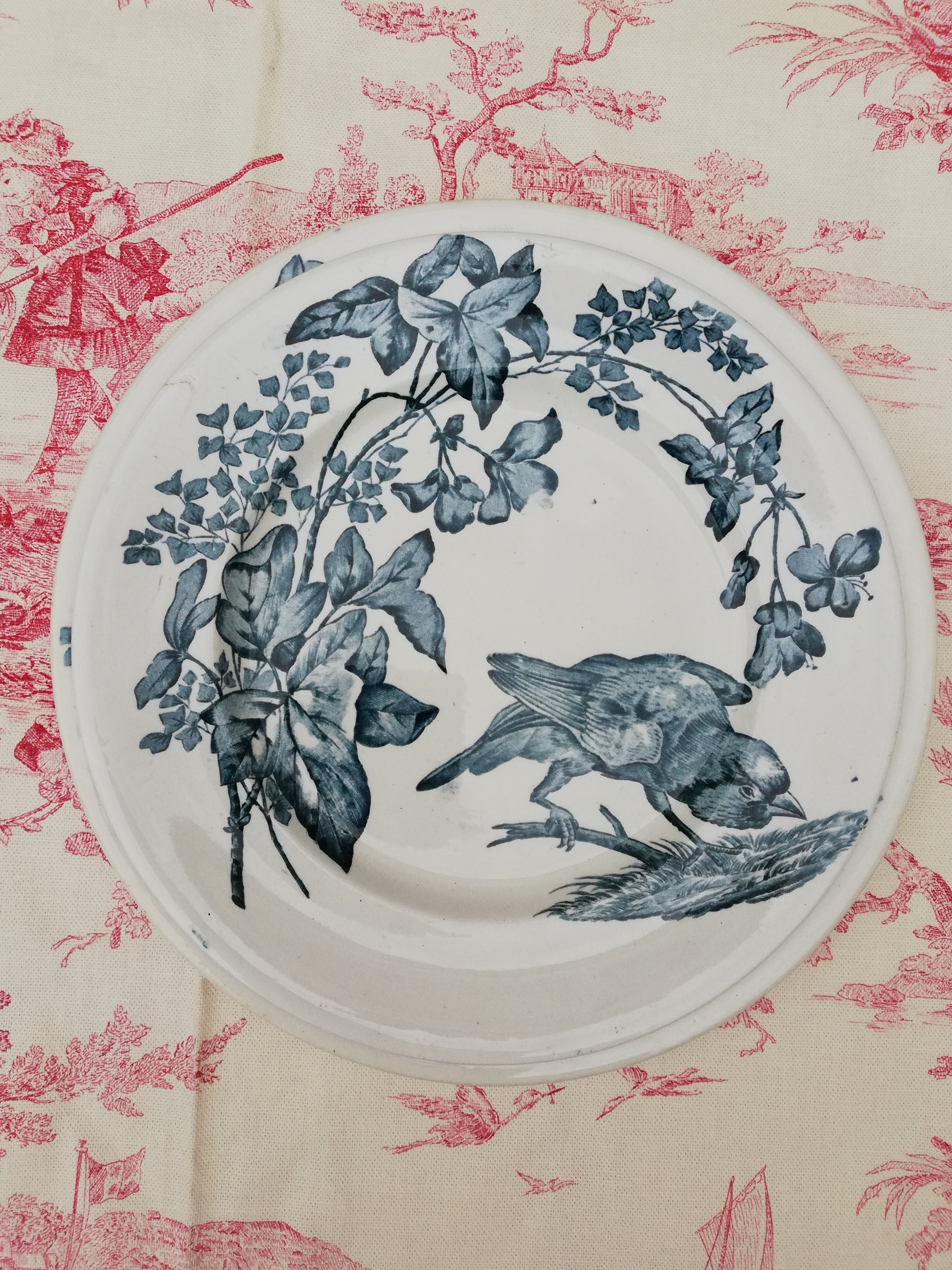 Assiette en terre de fer de la faiencerie de Longwy modèle oiseaux fleurs