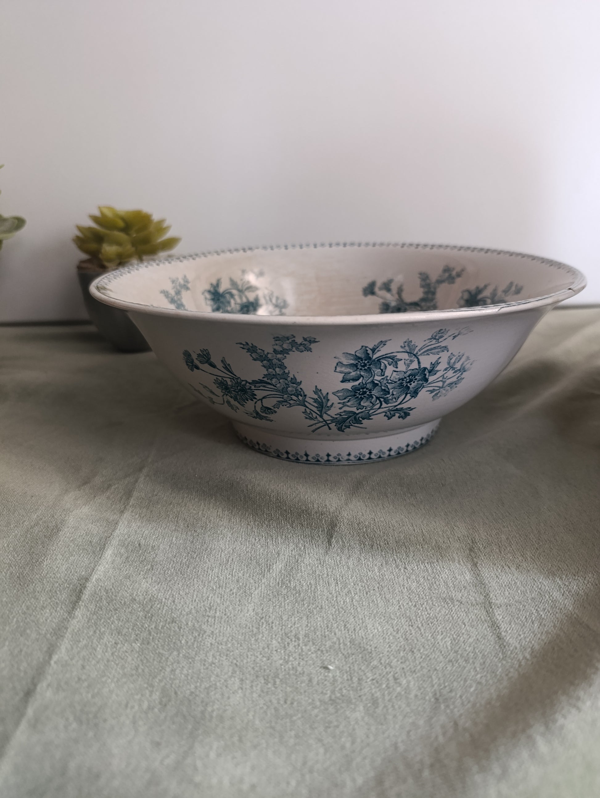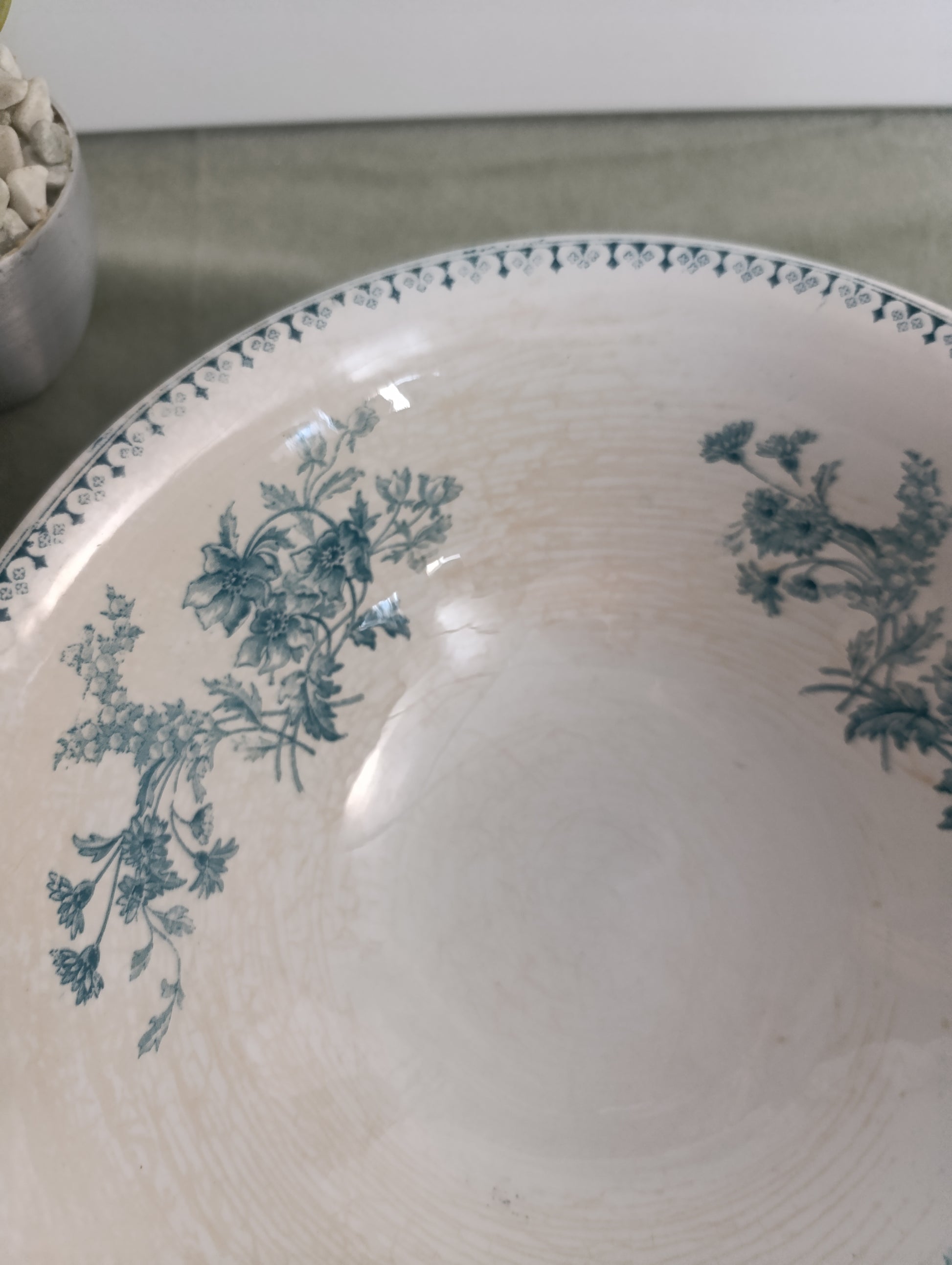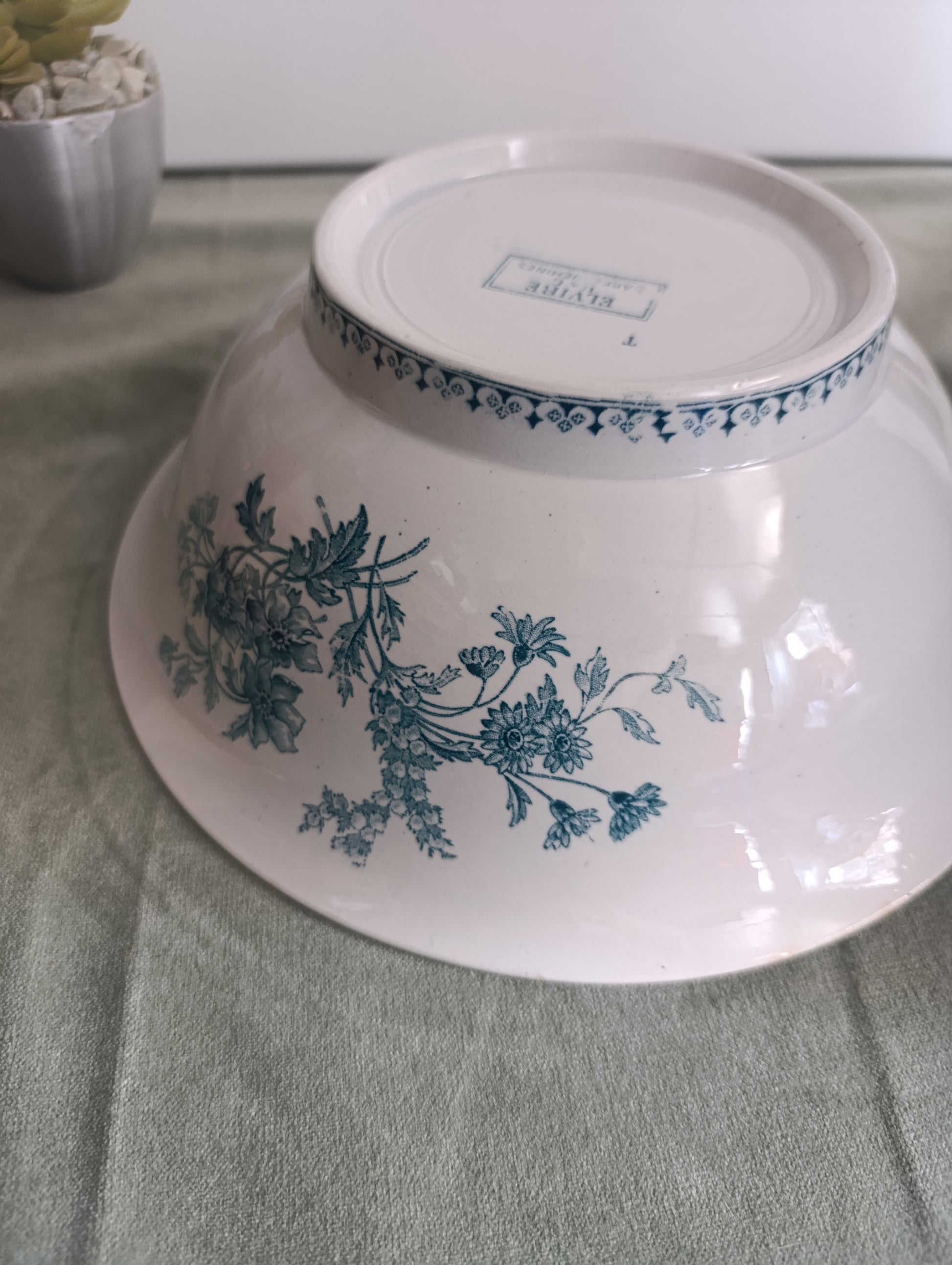 Saladier en terre de fer bleu vert modèle Elvire de la manufacture de Sarreguemines