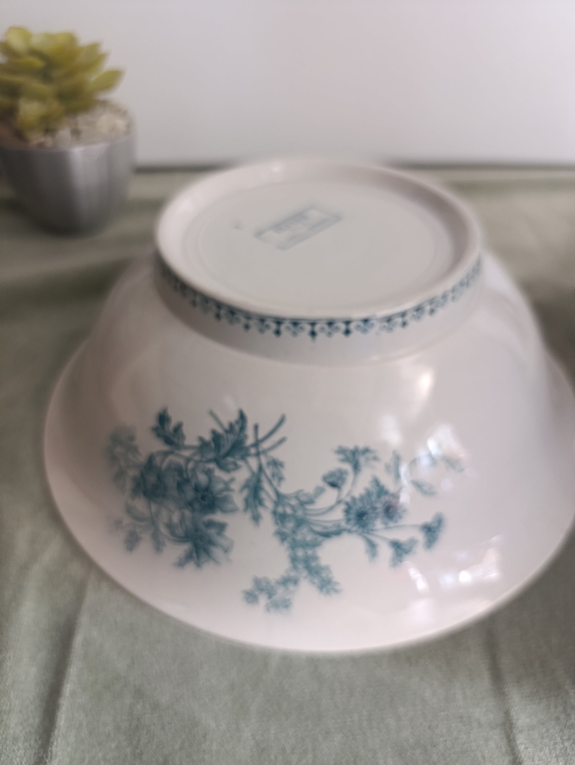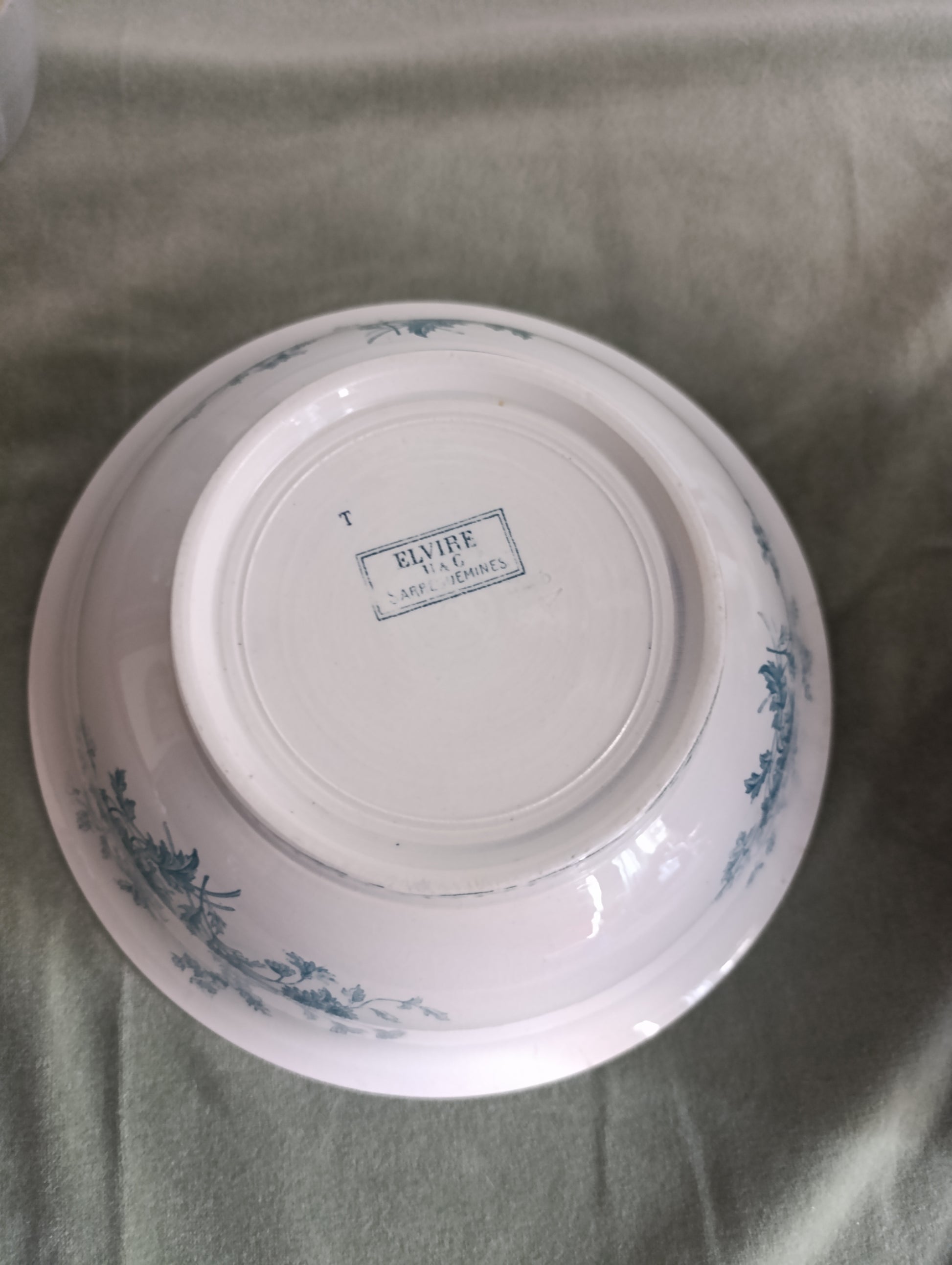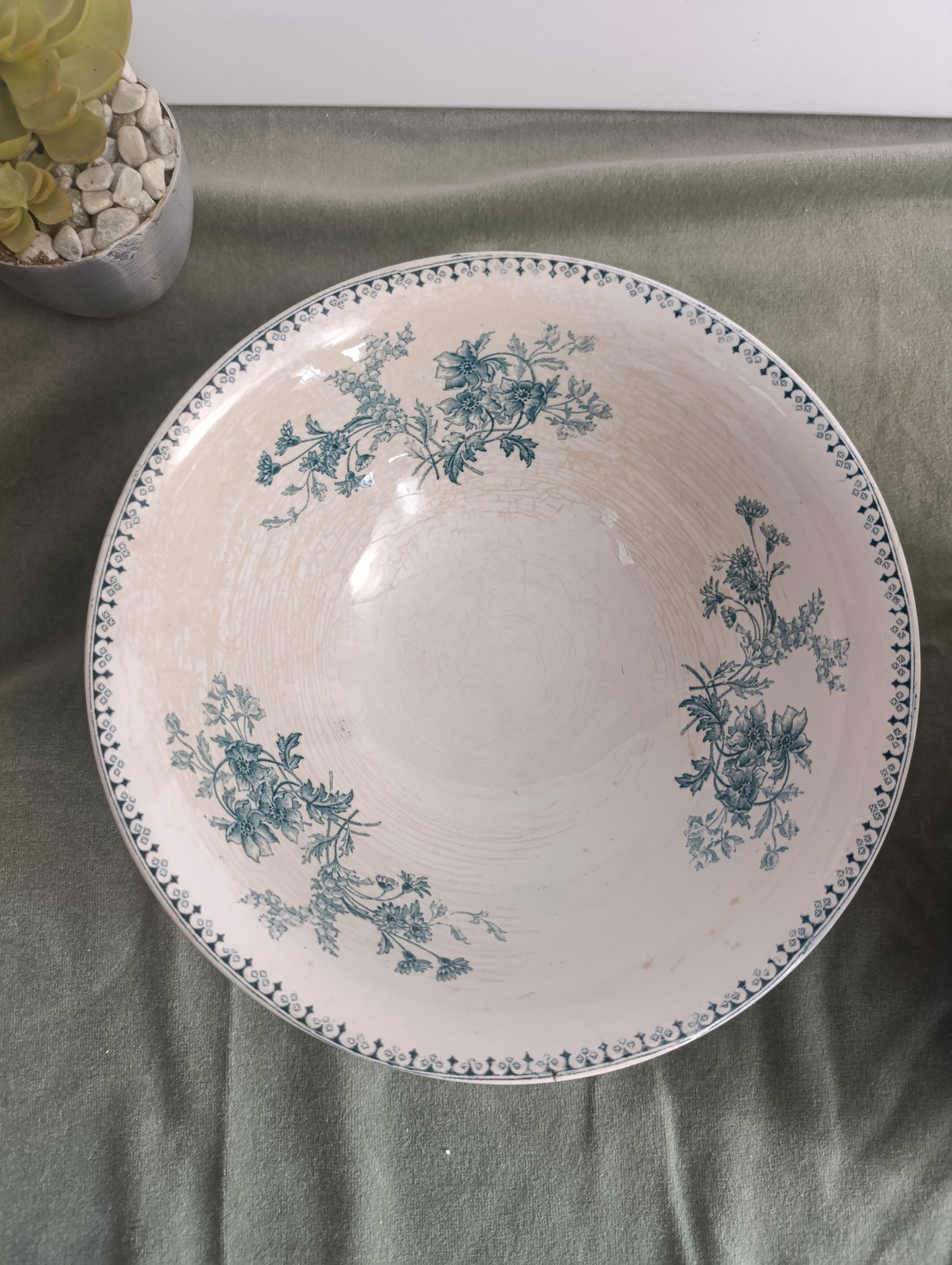 Saladier en terre de fer bleu vert modèle Elvire de la manufacture de Sarreguemines