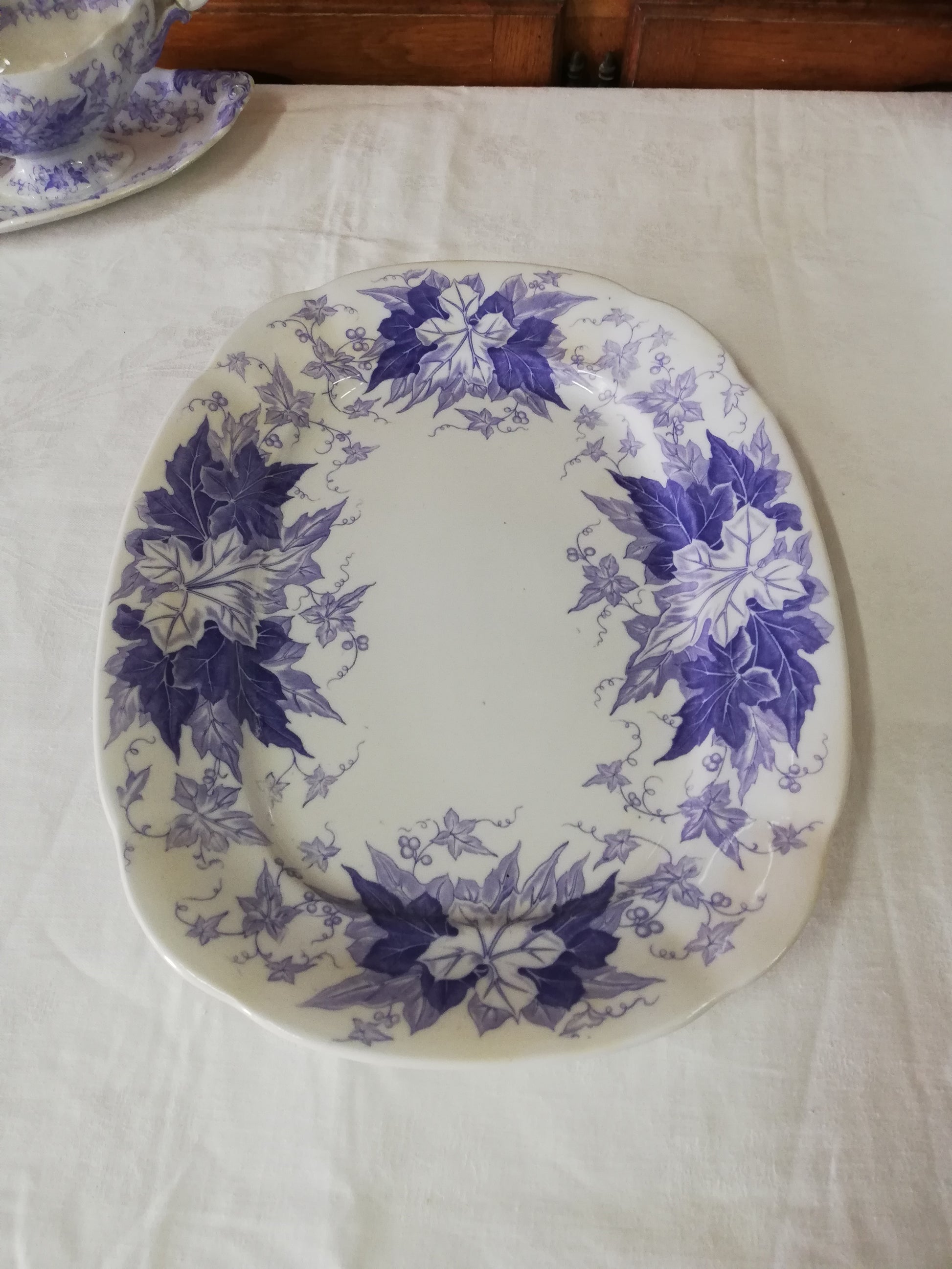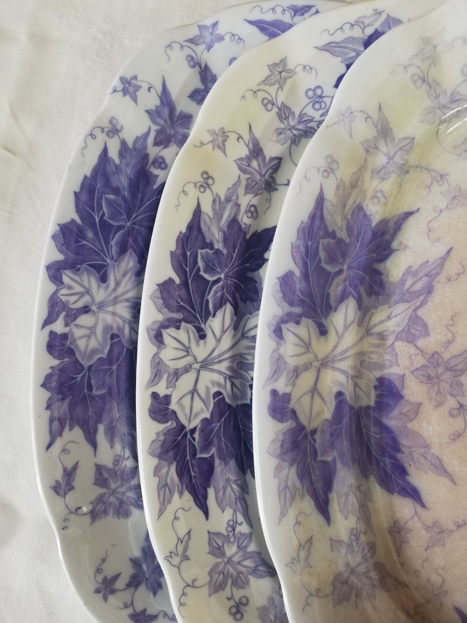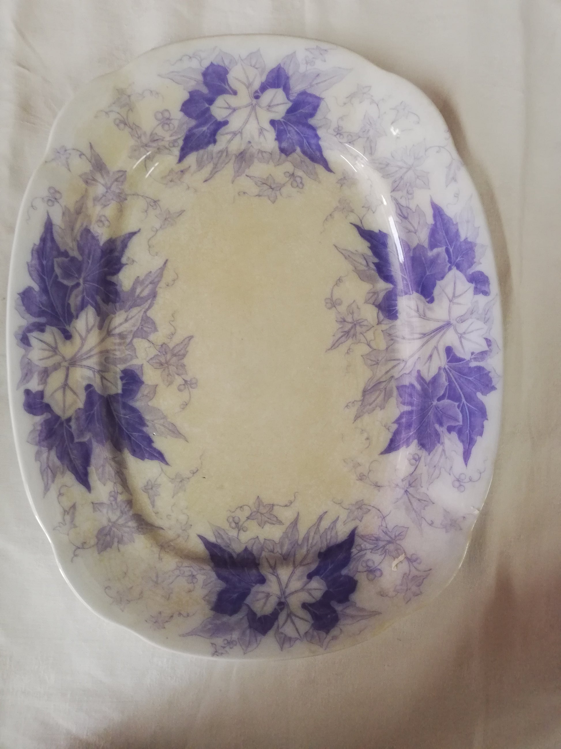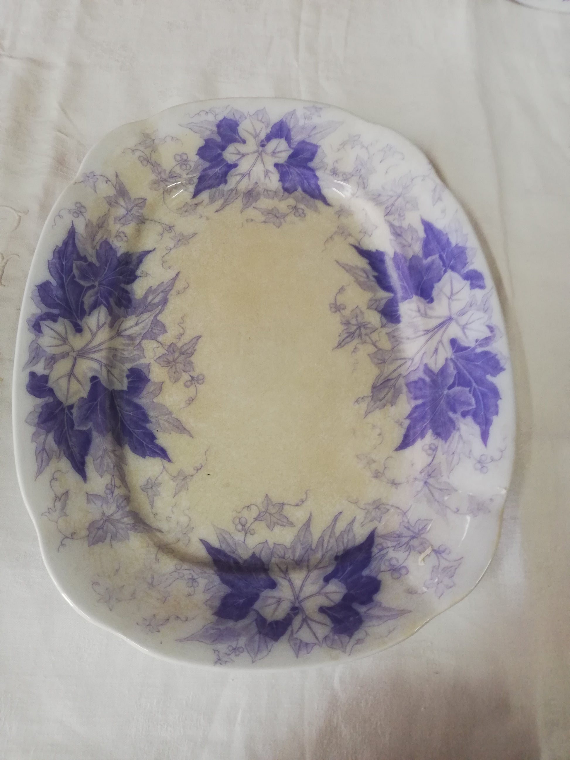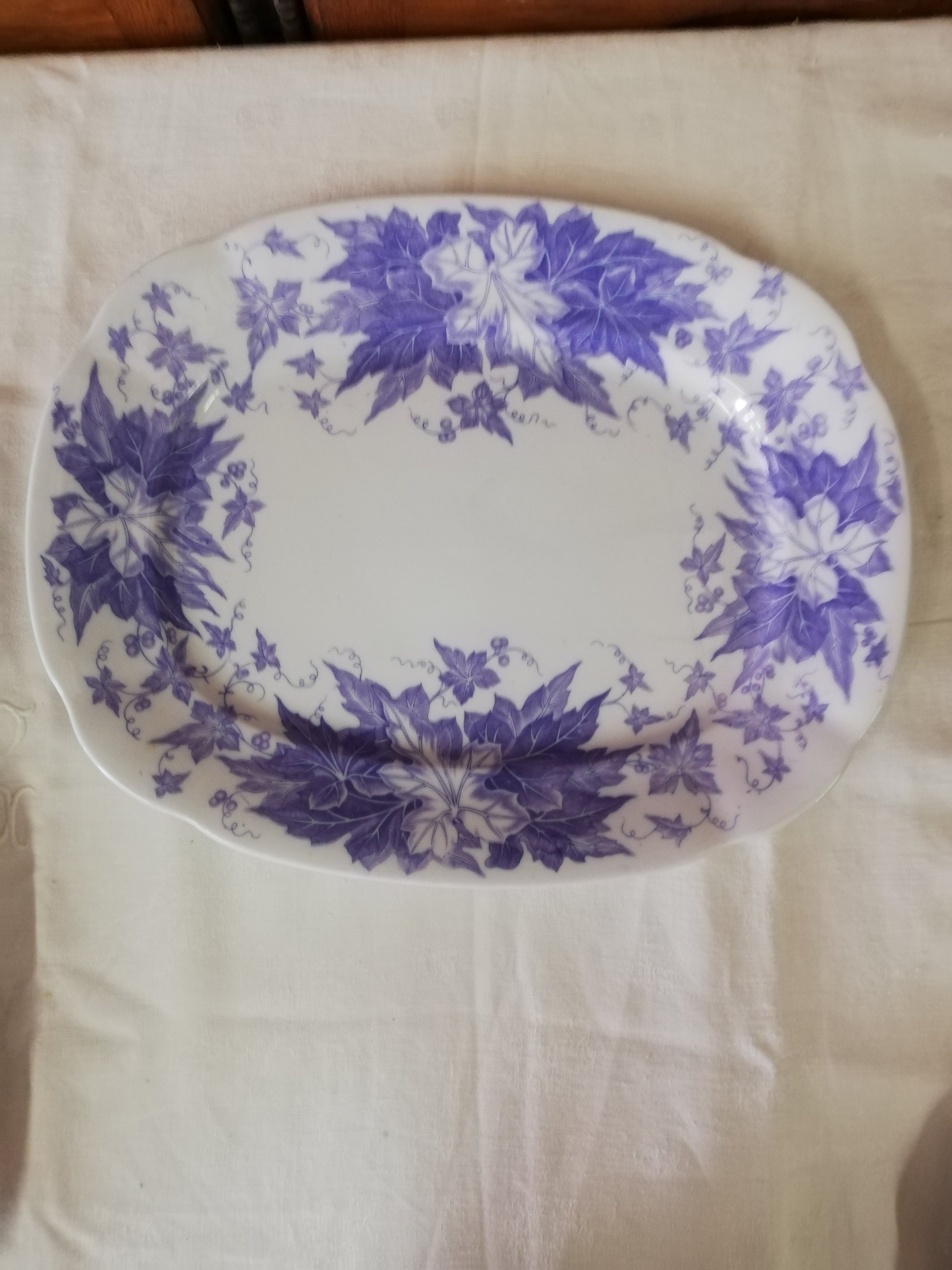 Grand plat rectangulaire ancien en terre de fer violet, mauve modèle Bryonia de Sarreguemines