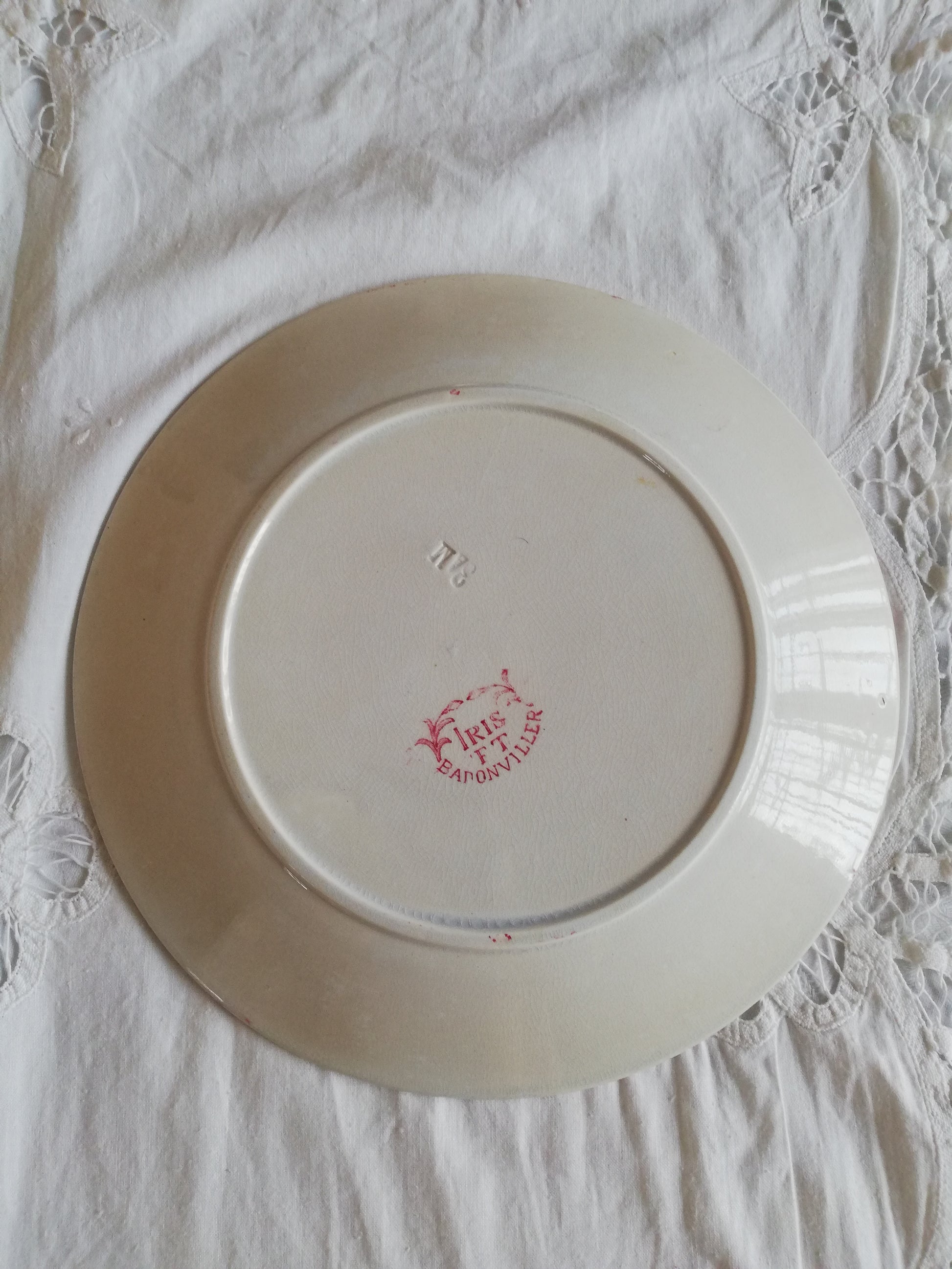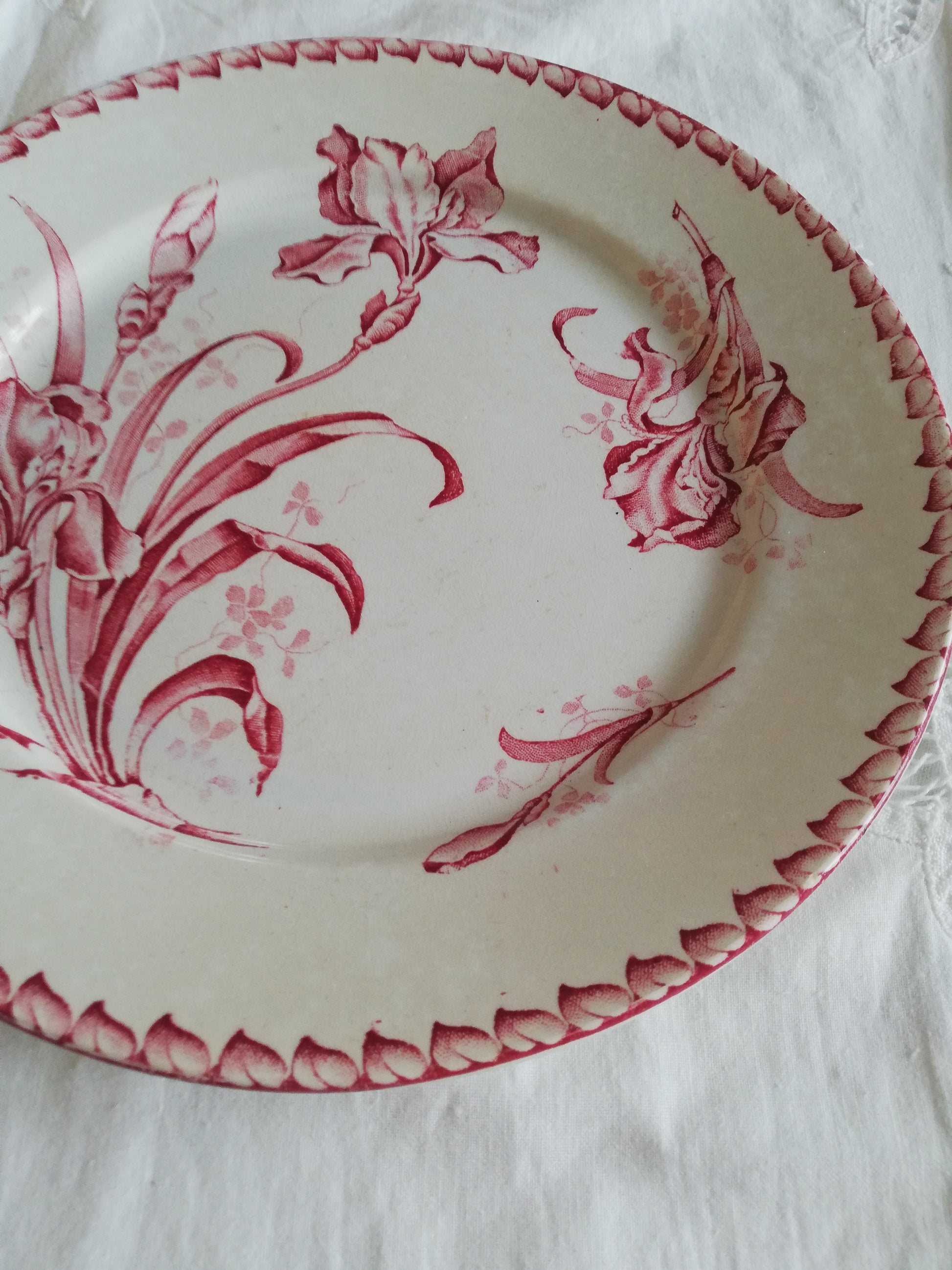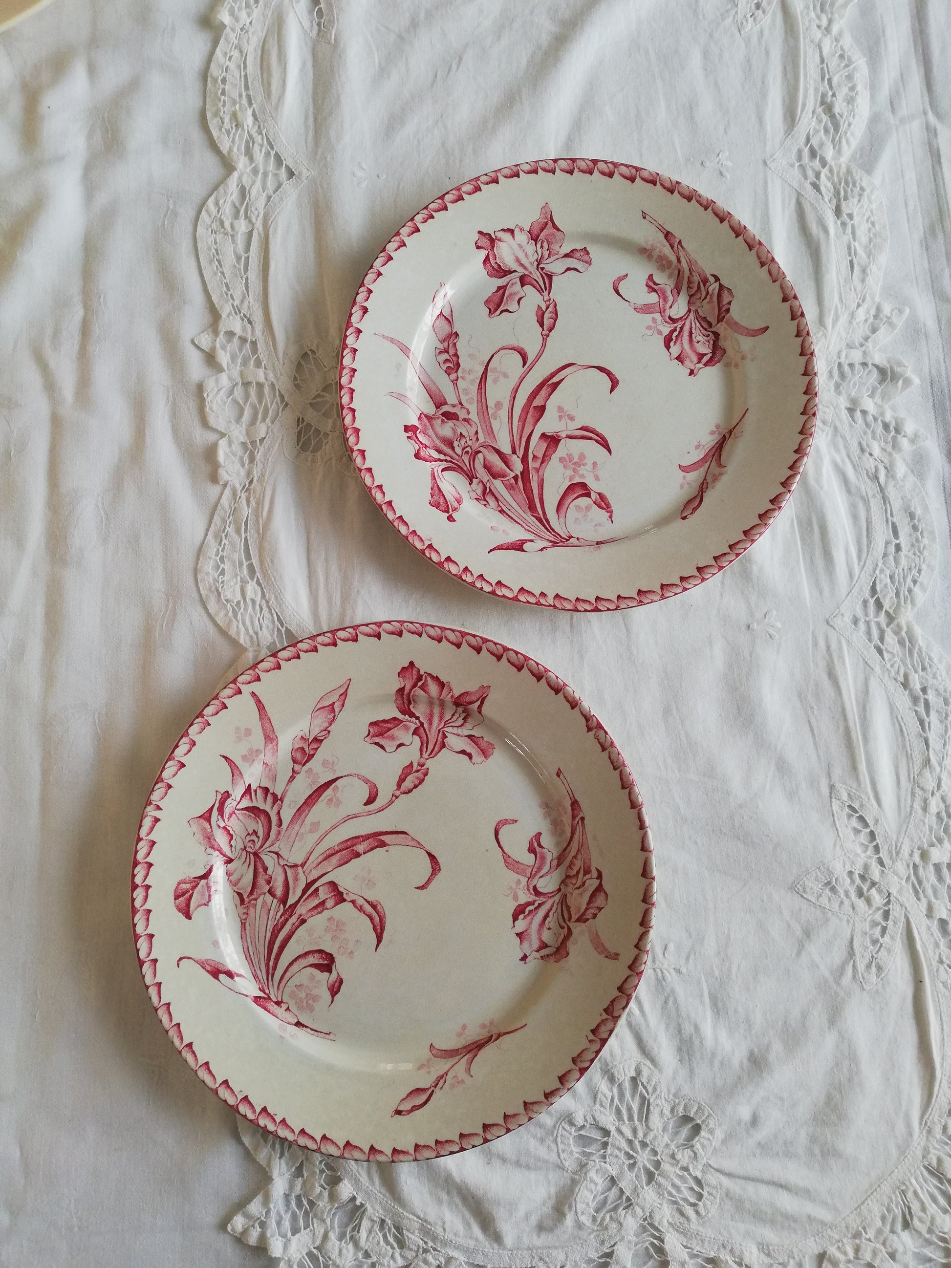 Sete de 2 assiettes Badonviller motif Iris en terre de fer rose