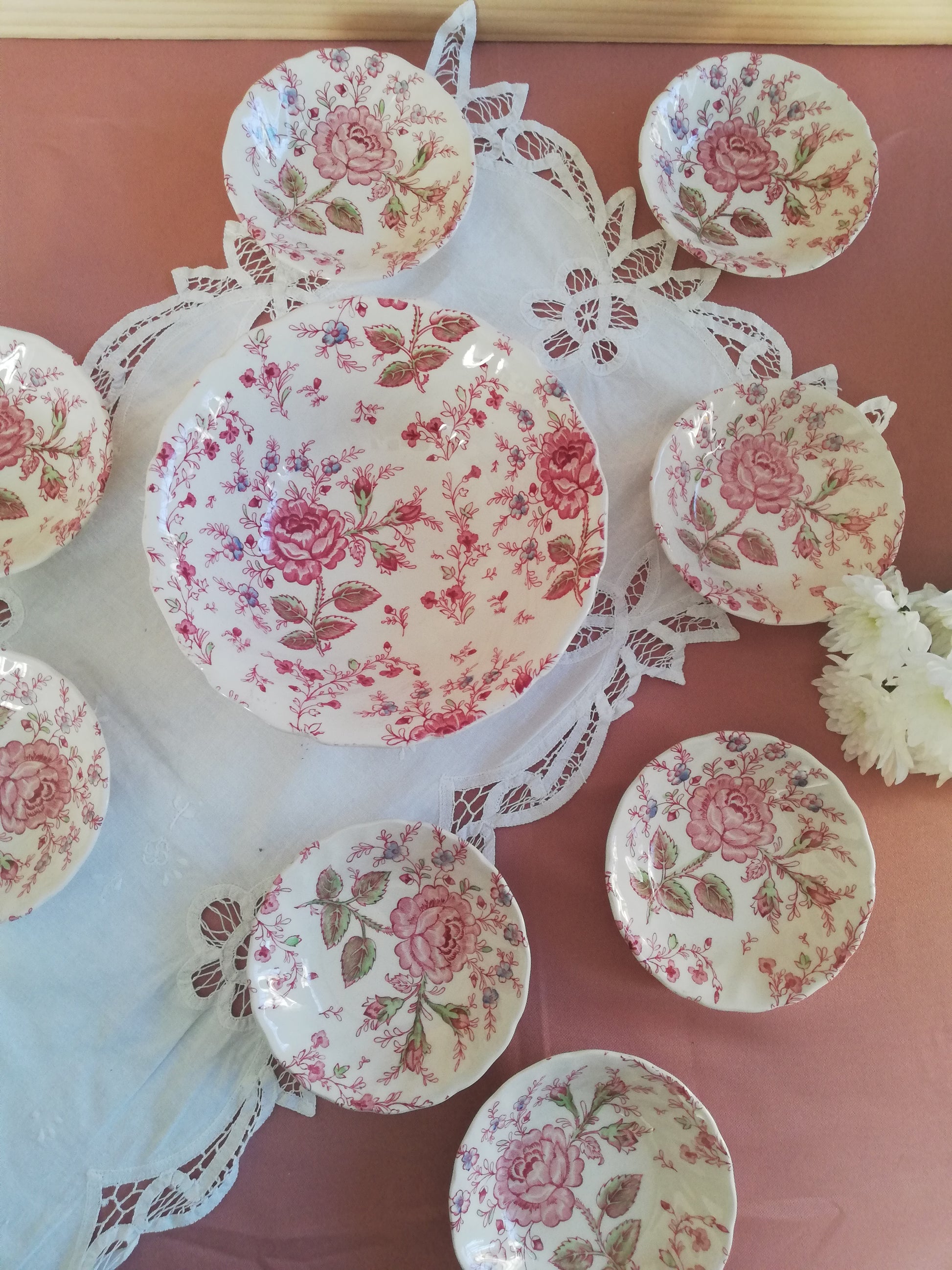 Service à dessert Rose Chintz composé d un saladier et de 8 petits ramequins