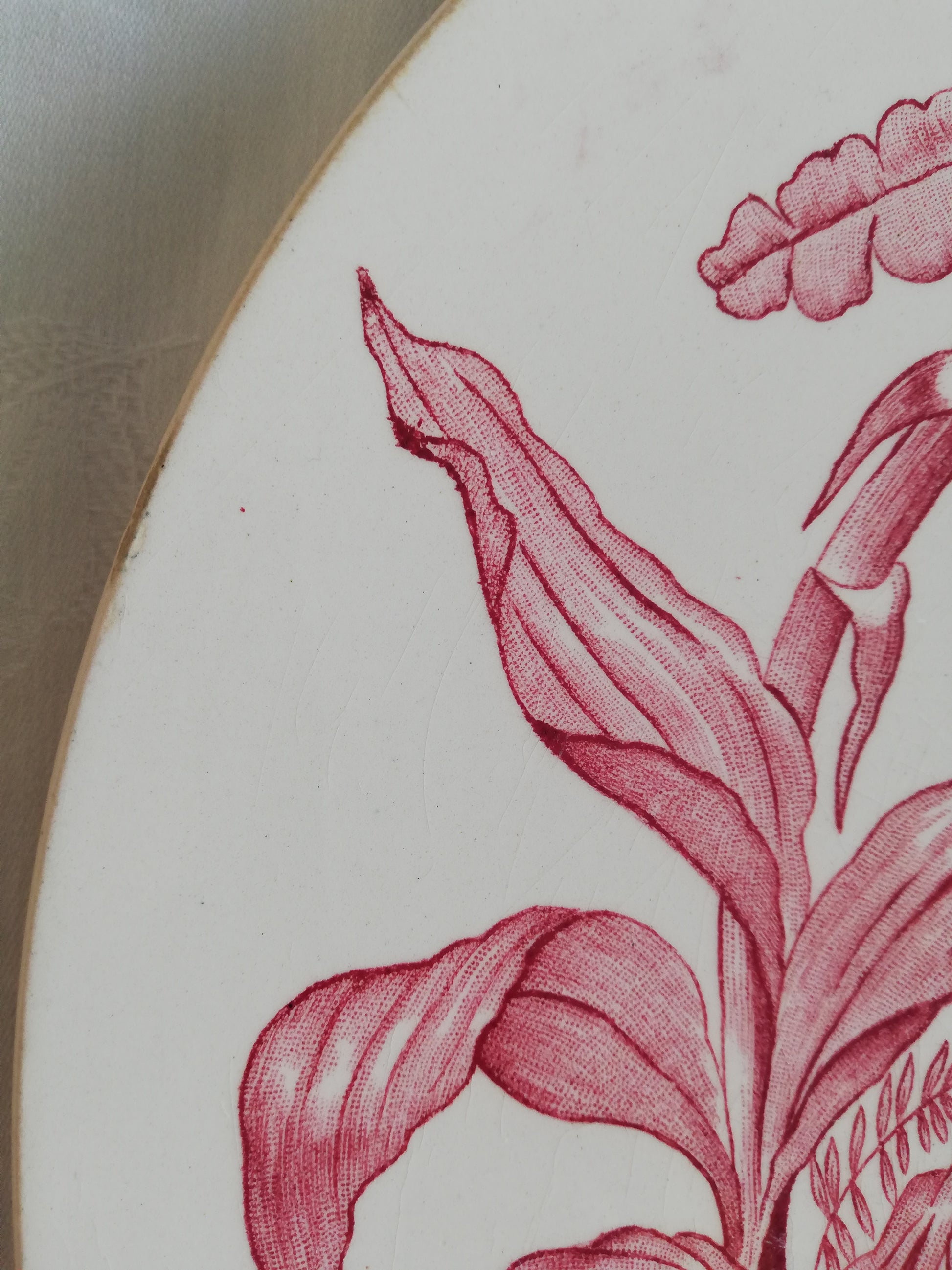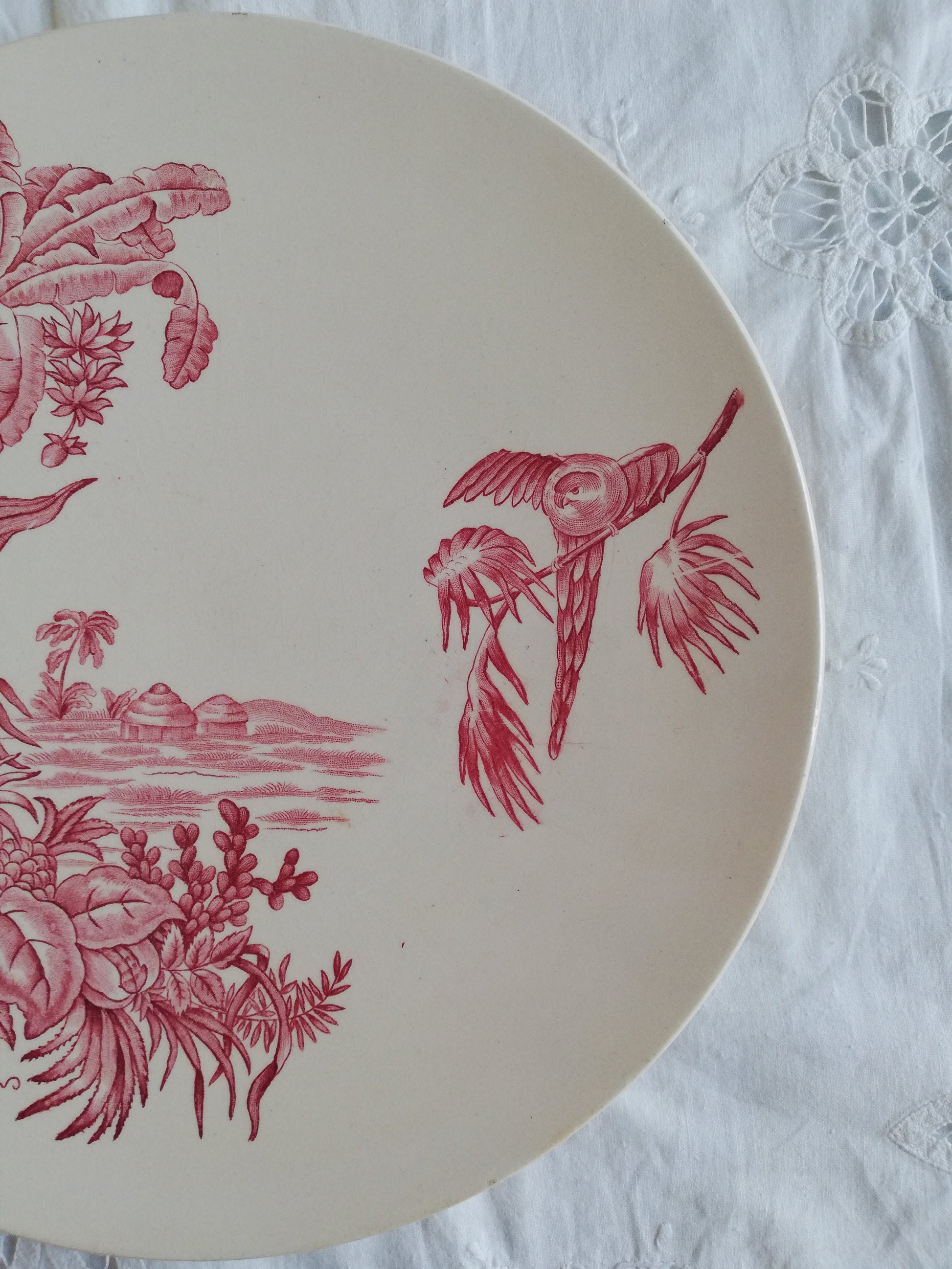 Assiette decorative modèle Exotique de Longchamp en terre de fer rose