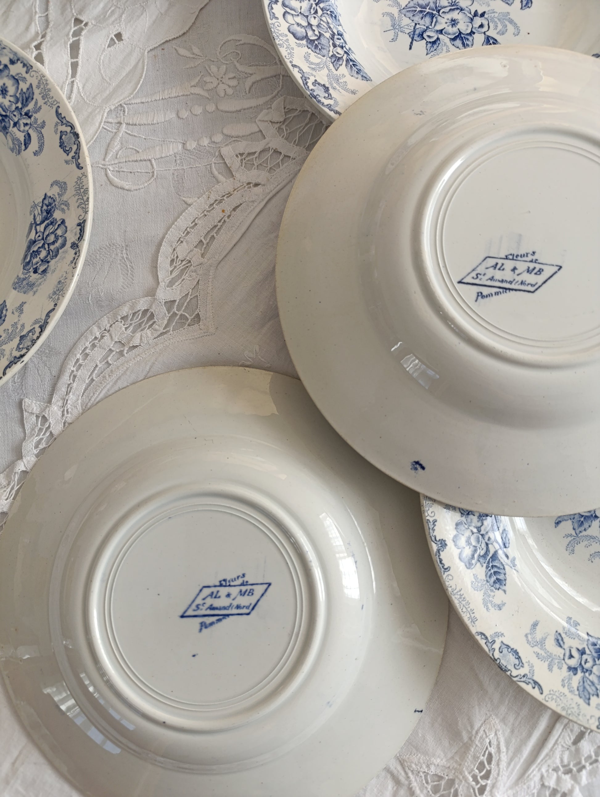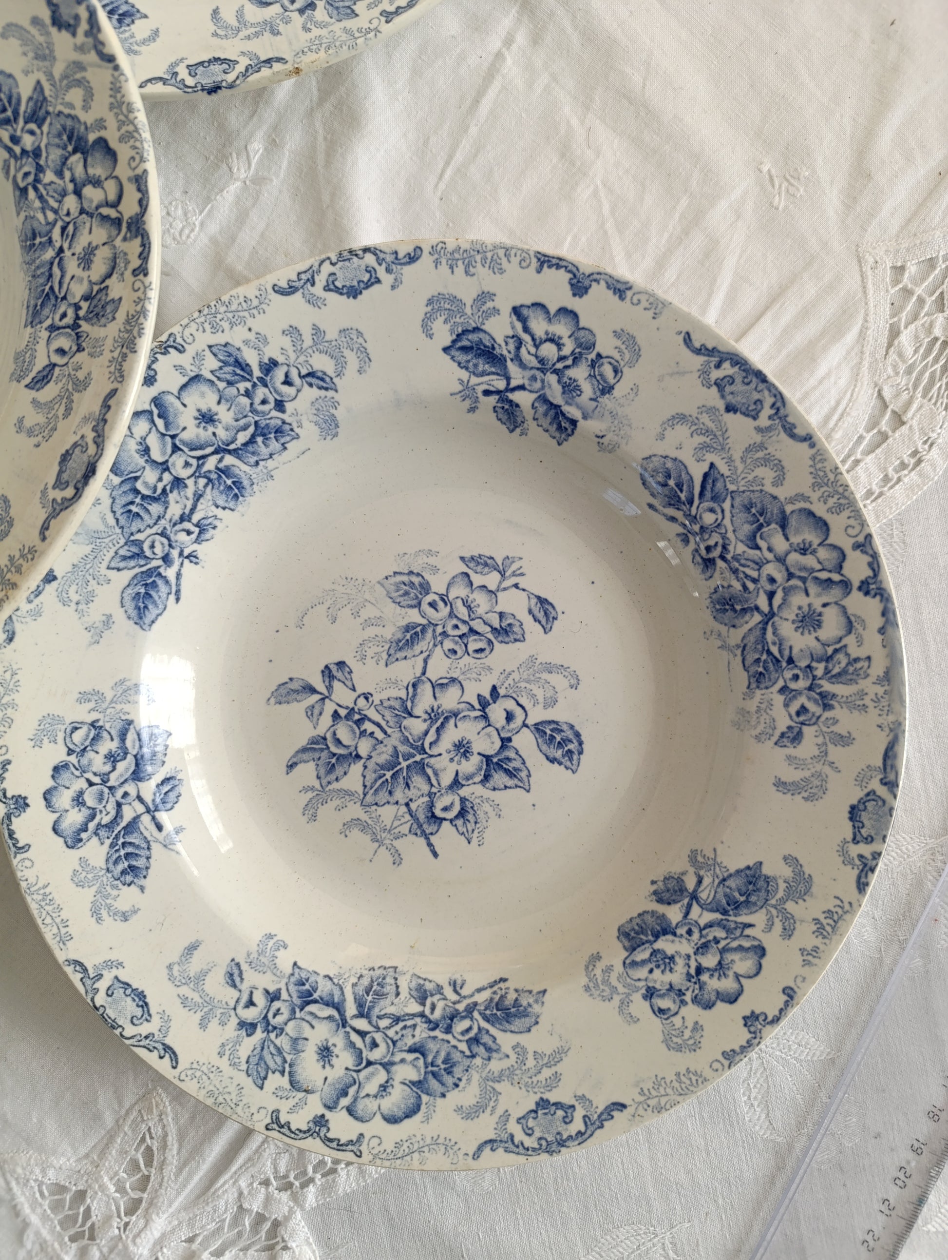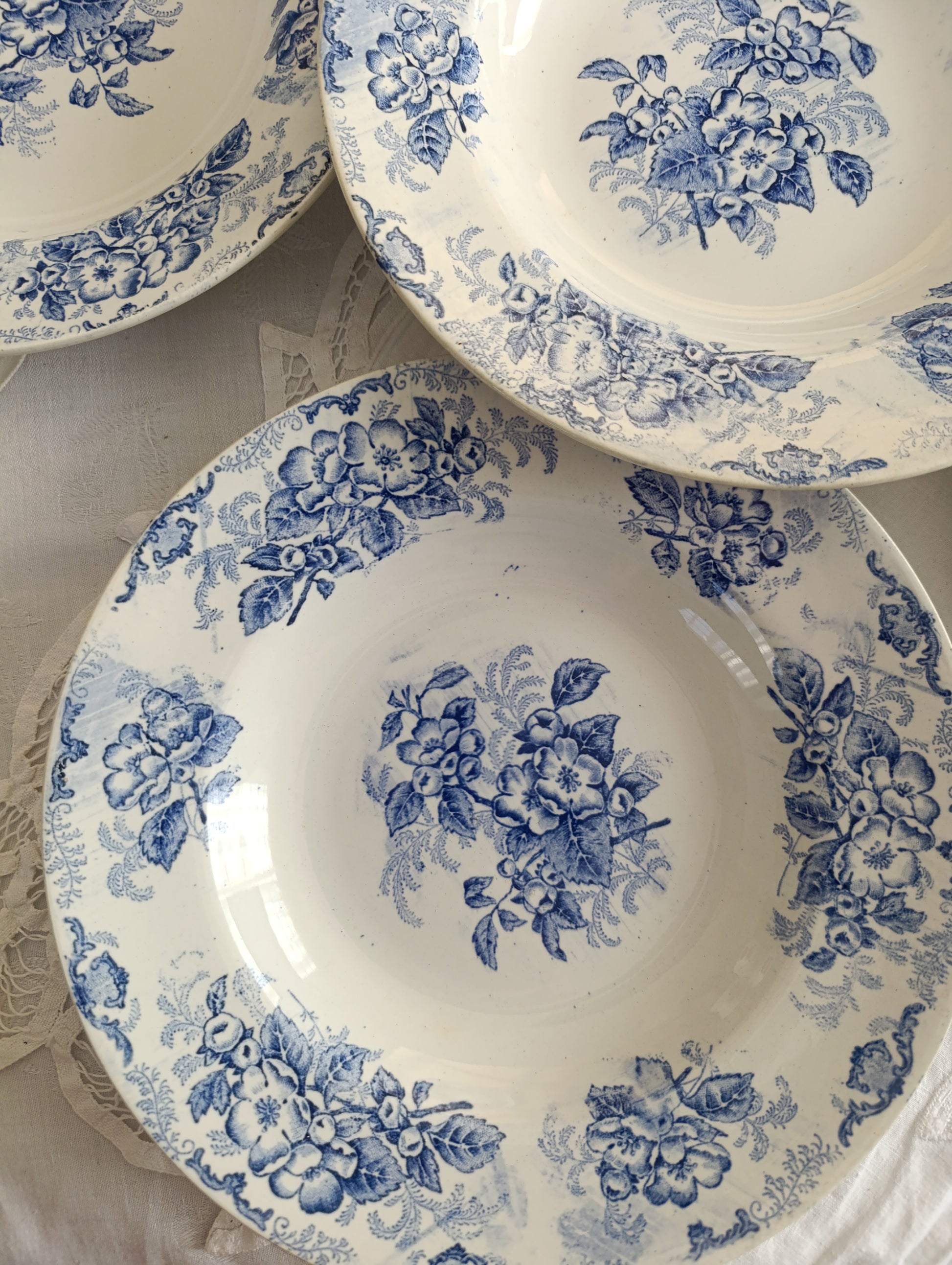 Assiette à soupe ou creuse en terre de fer bleu modèle fleur de pommier de lebacqz et Bouchard