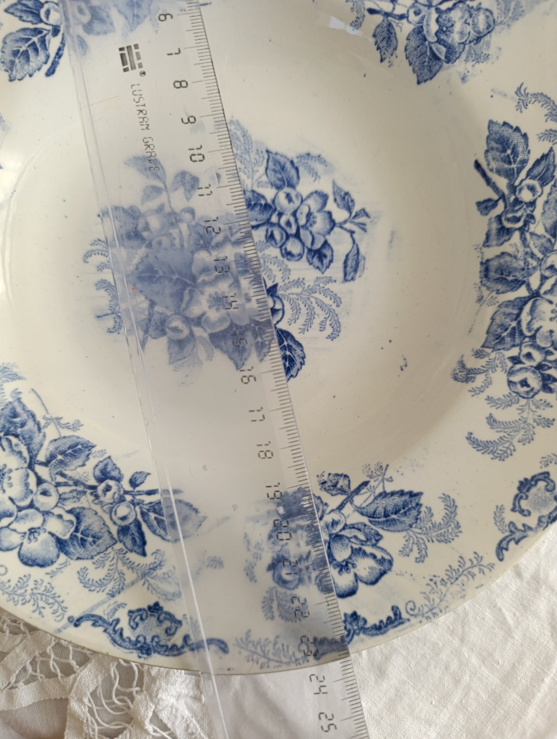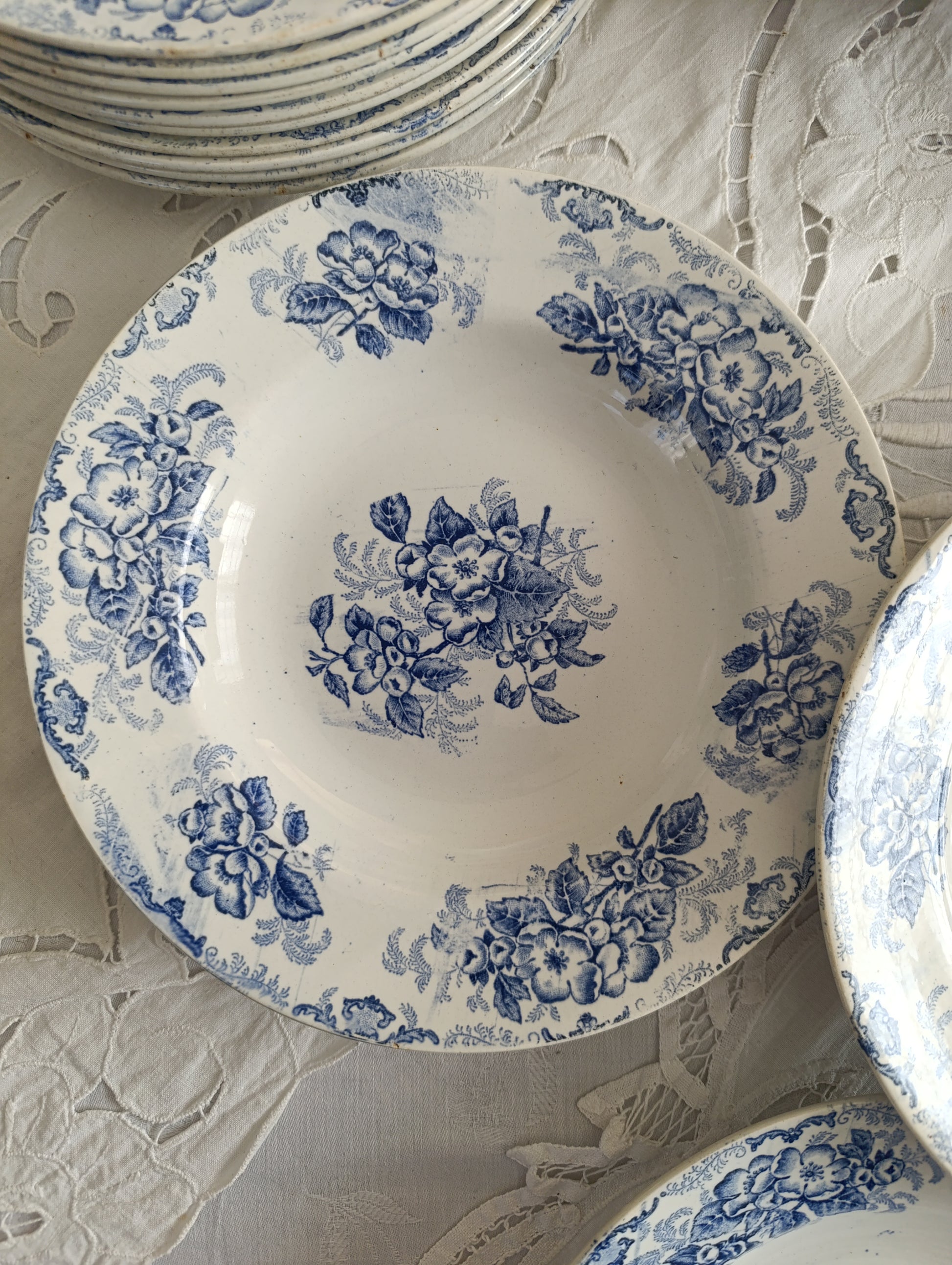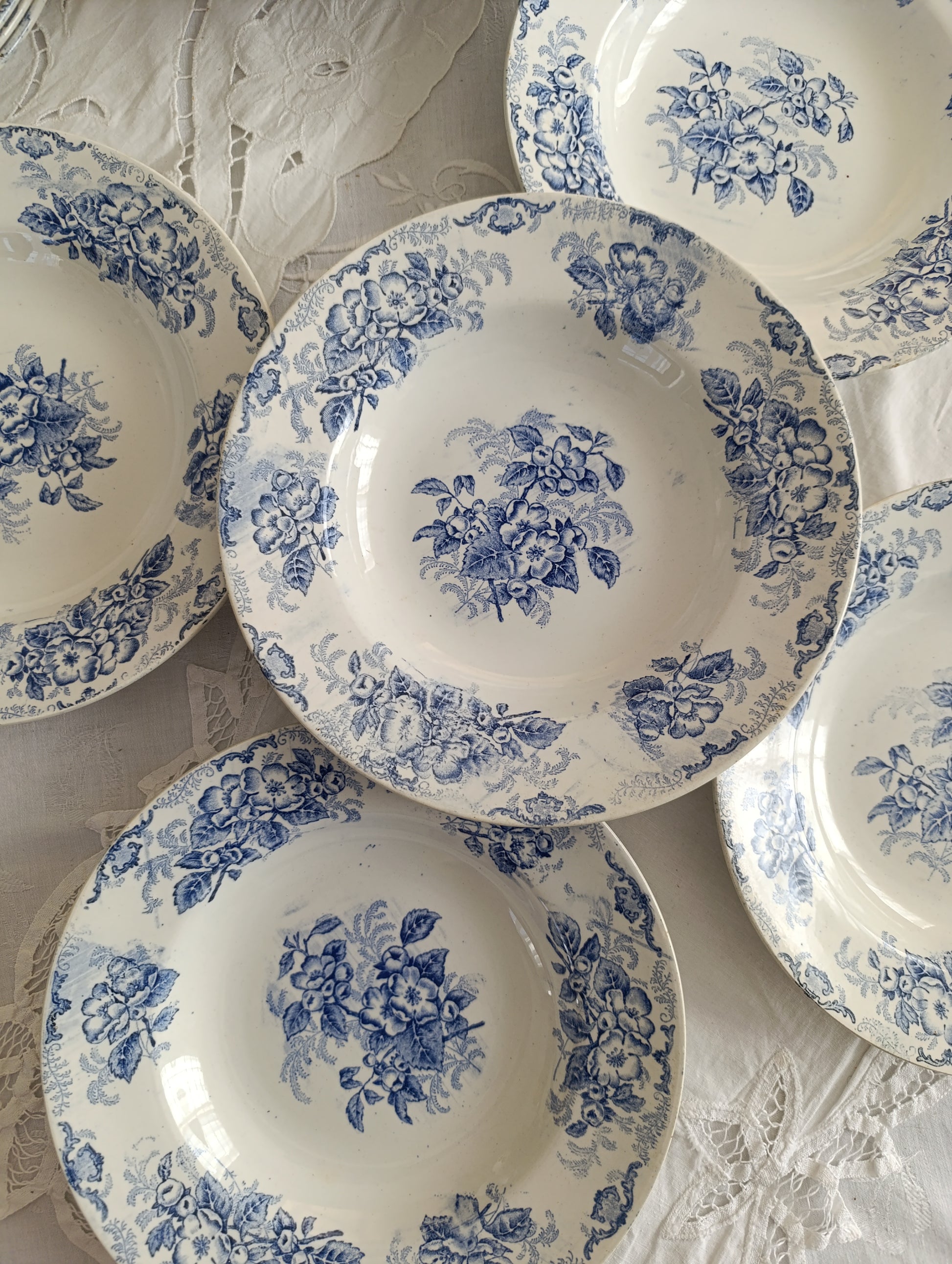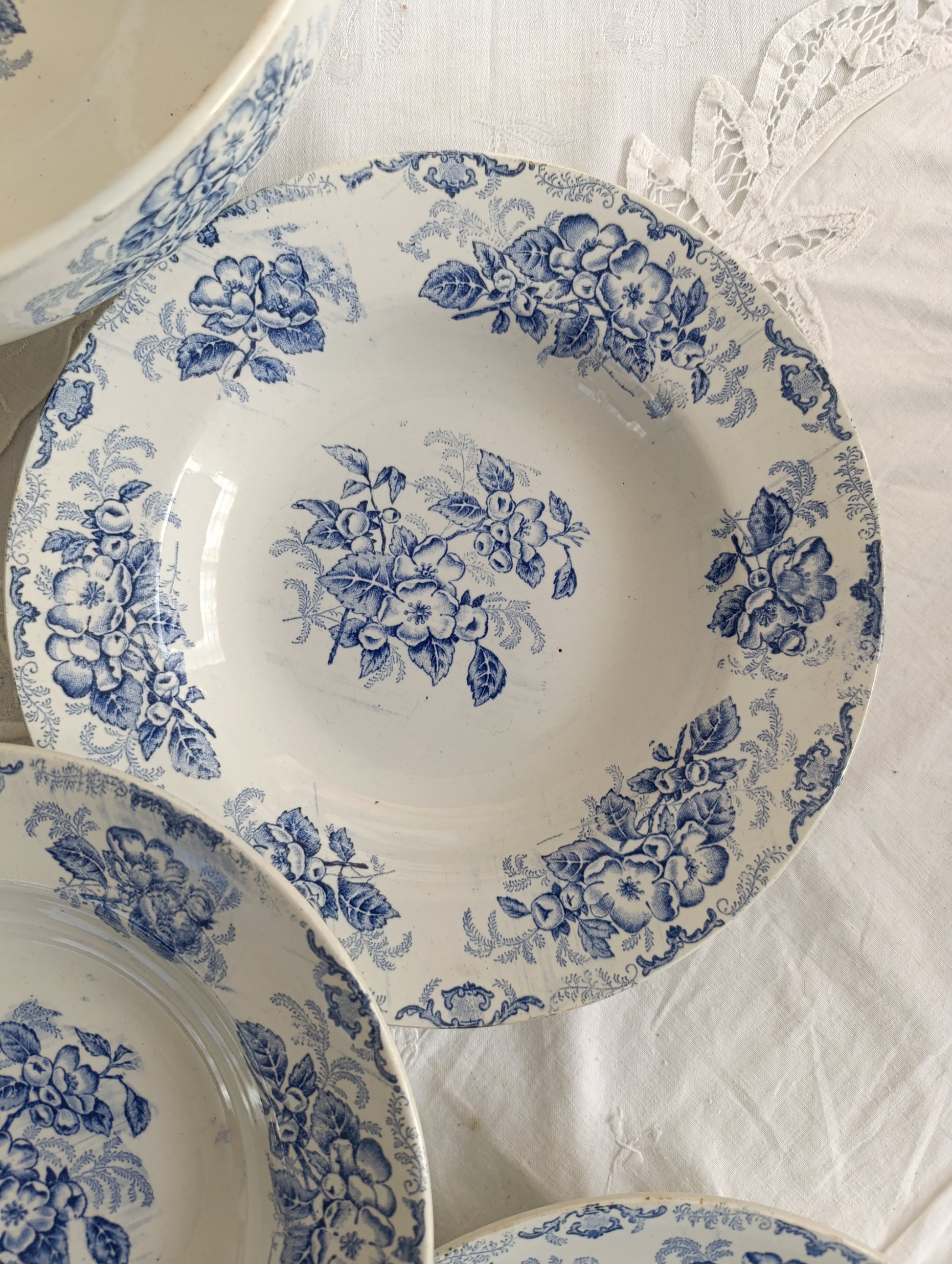 Assiette à soupe ou creuse en terre de fer bleu modèle fleur de pommier de lebacqz et Bouchard