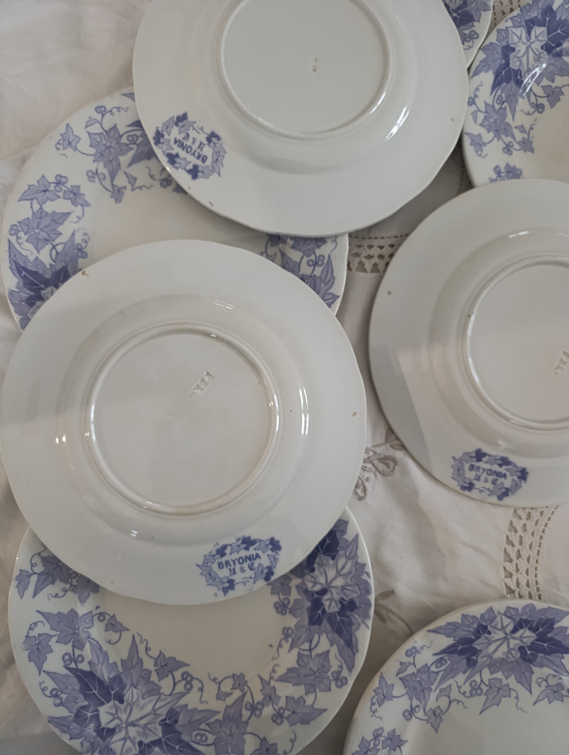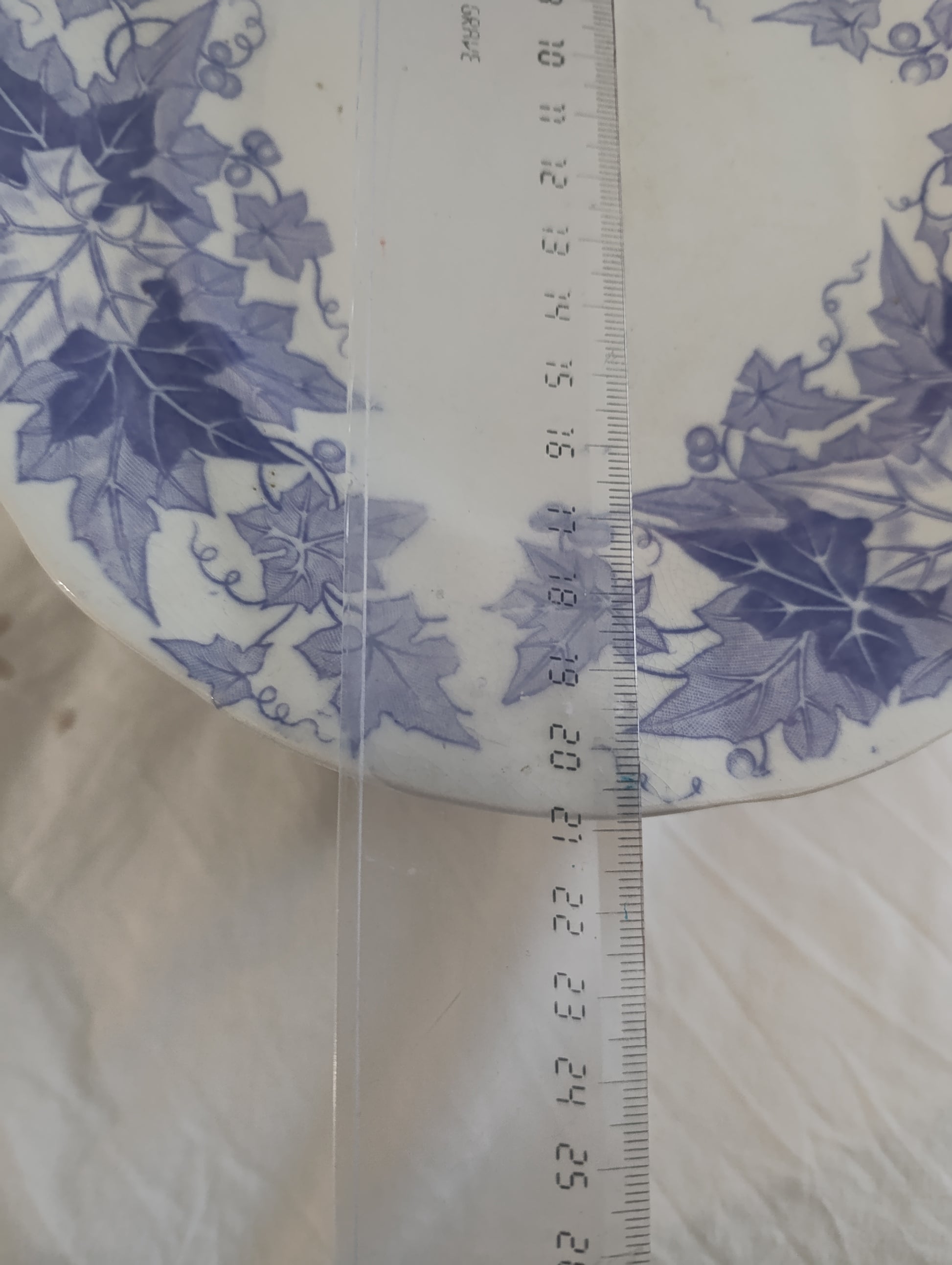 Diamètre 21 cm, bon état pas de fêlepas d'éclat petite trace de patine sur certaines assiettes
