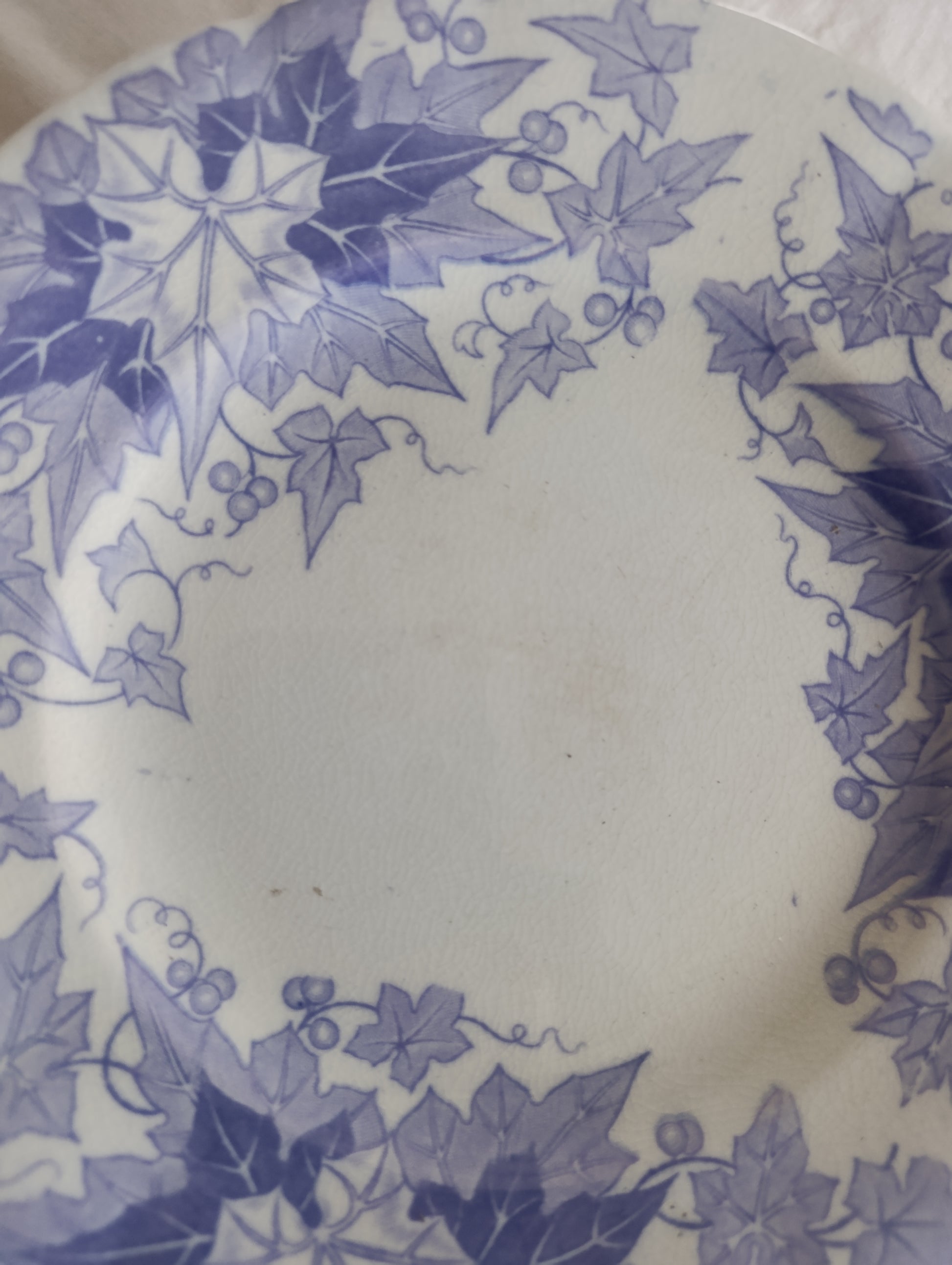 Assiette à dessert bryonia de Sarreguemines en terre de fer mauve lavande