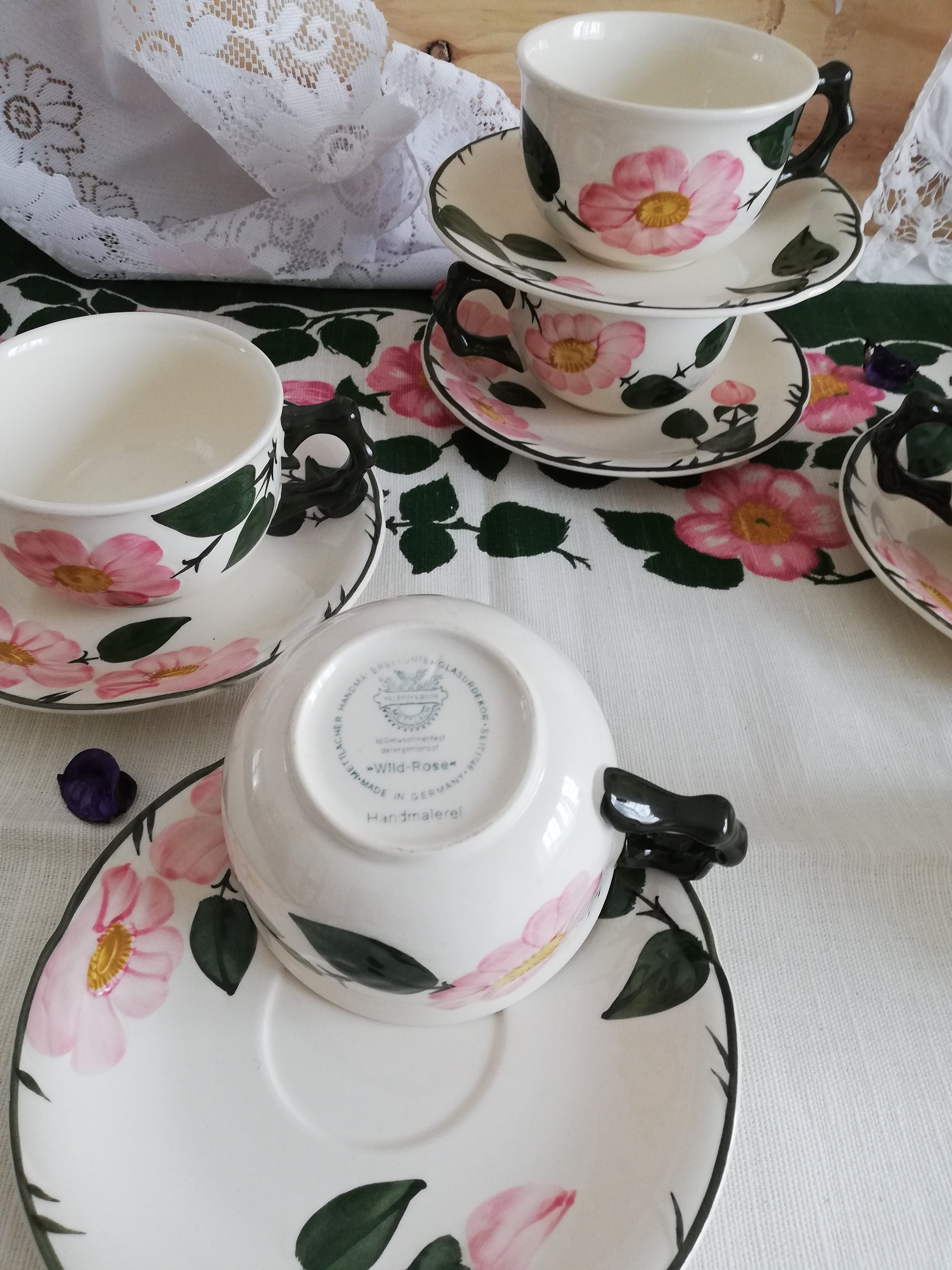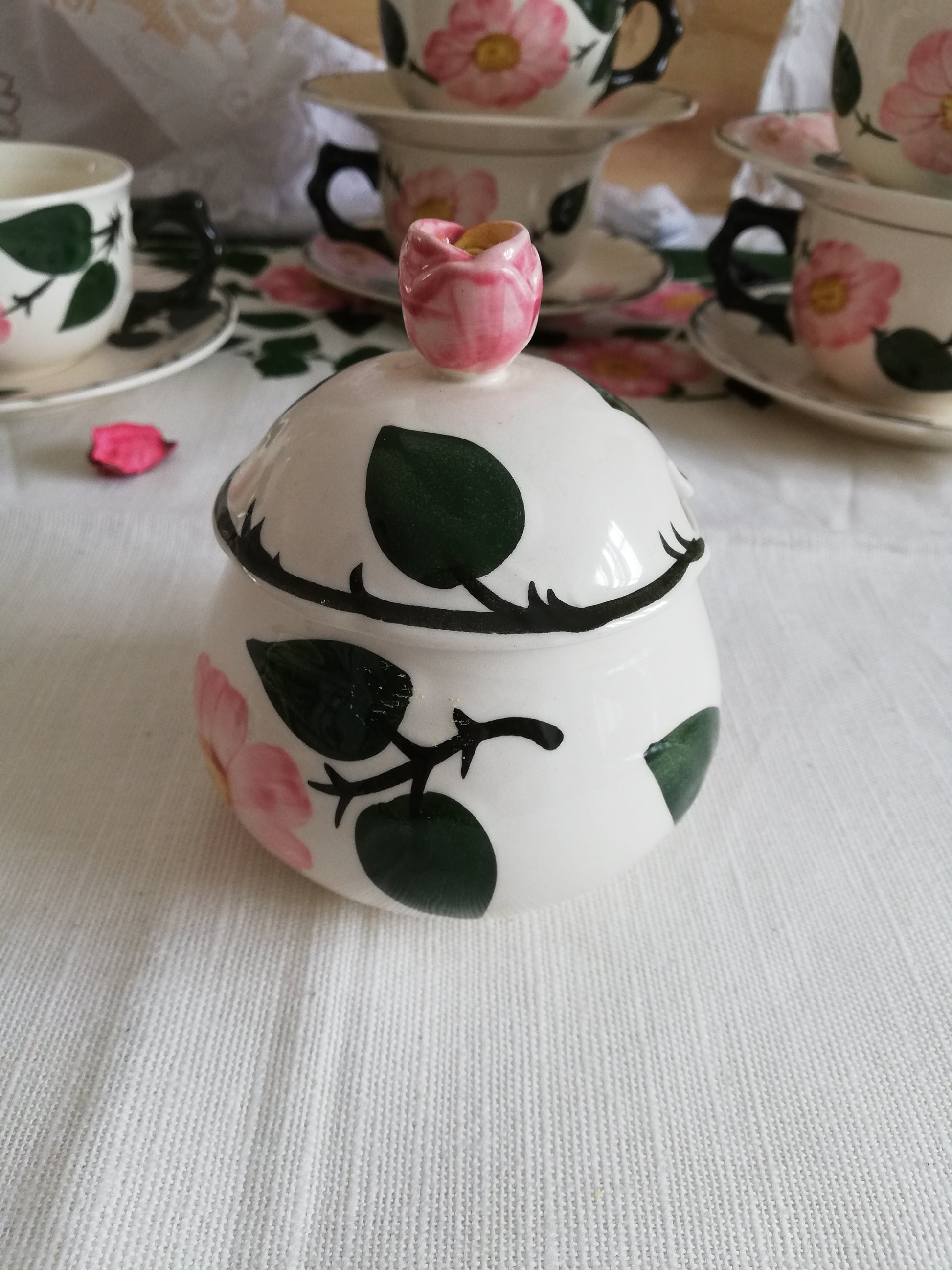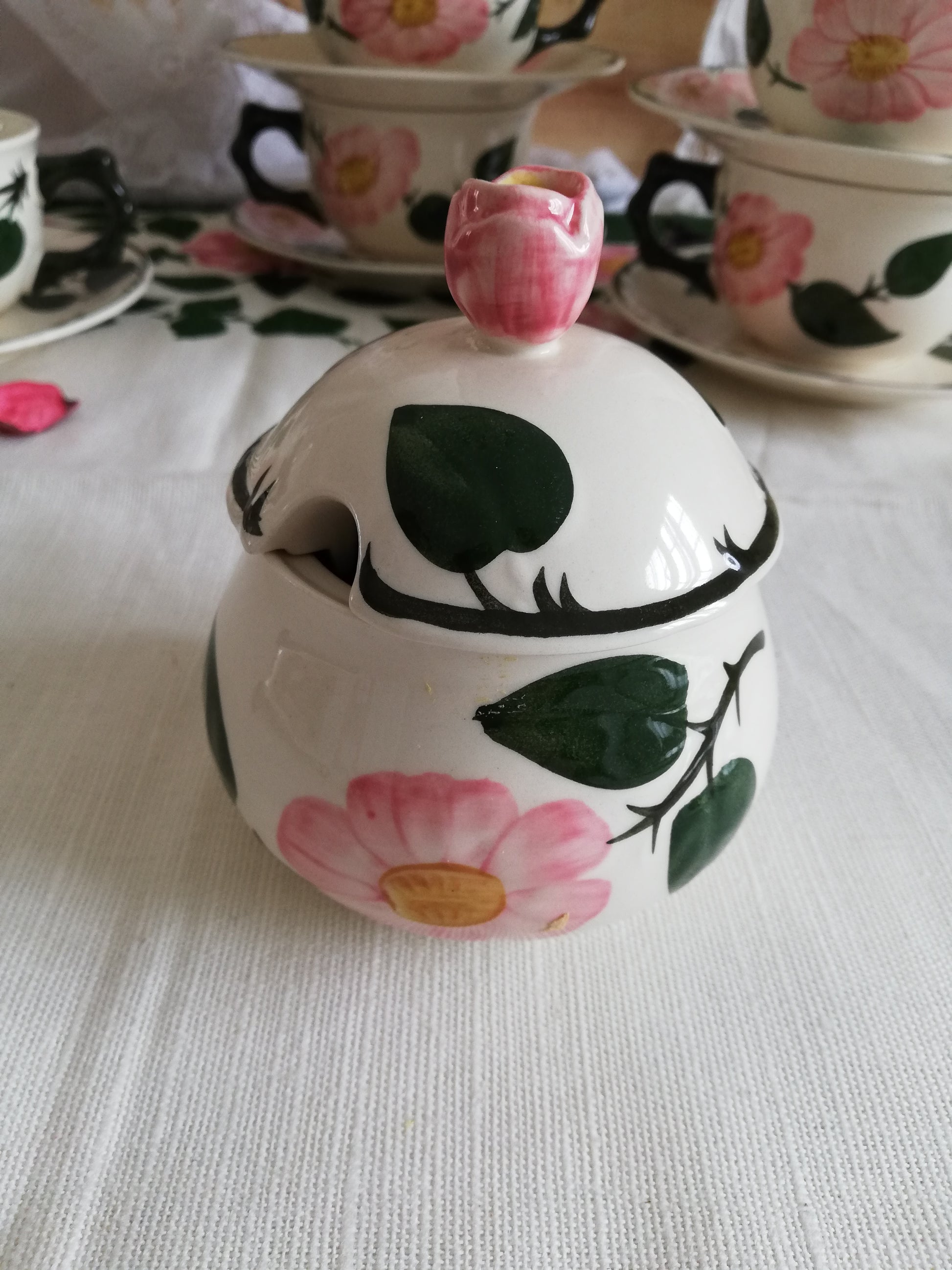 Service à thé composé de 6 grandes tasses et sous tasse, 1 sucrier, 1 théière