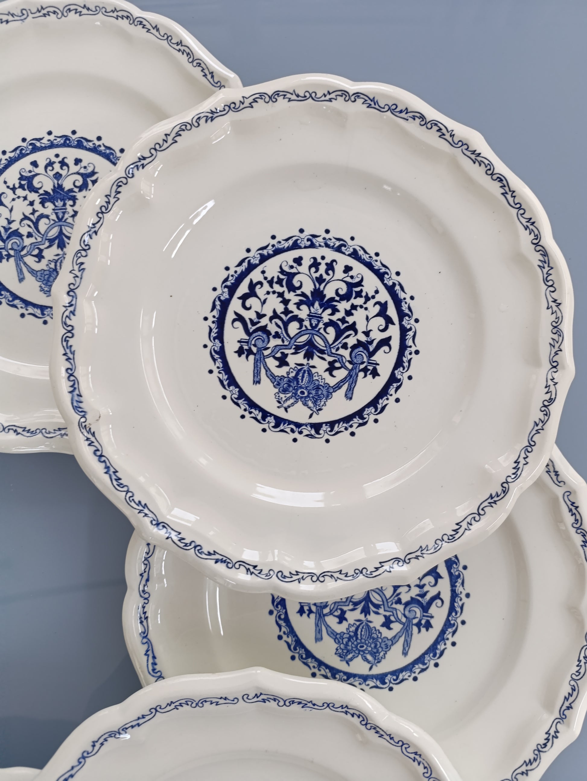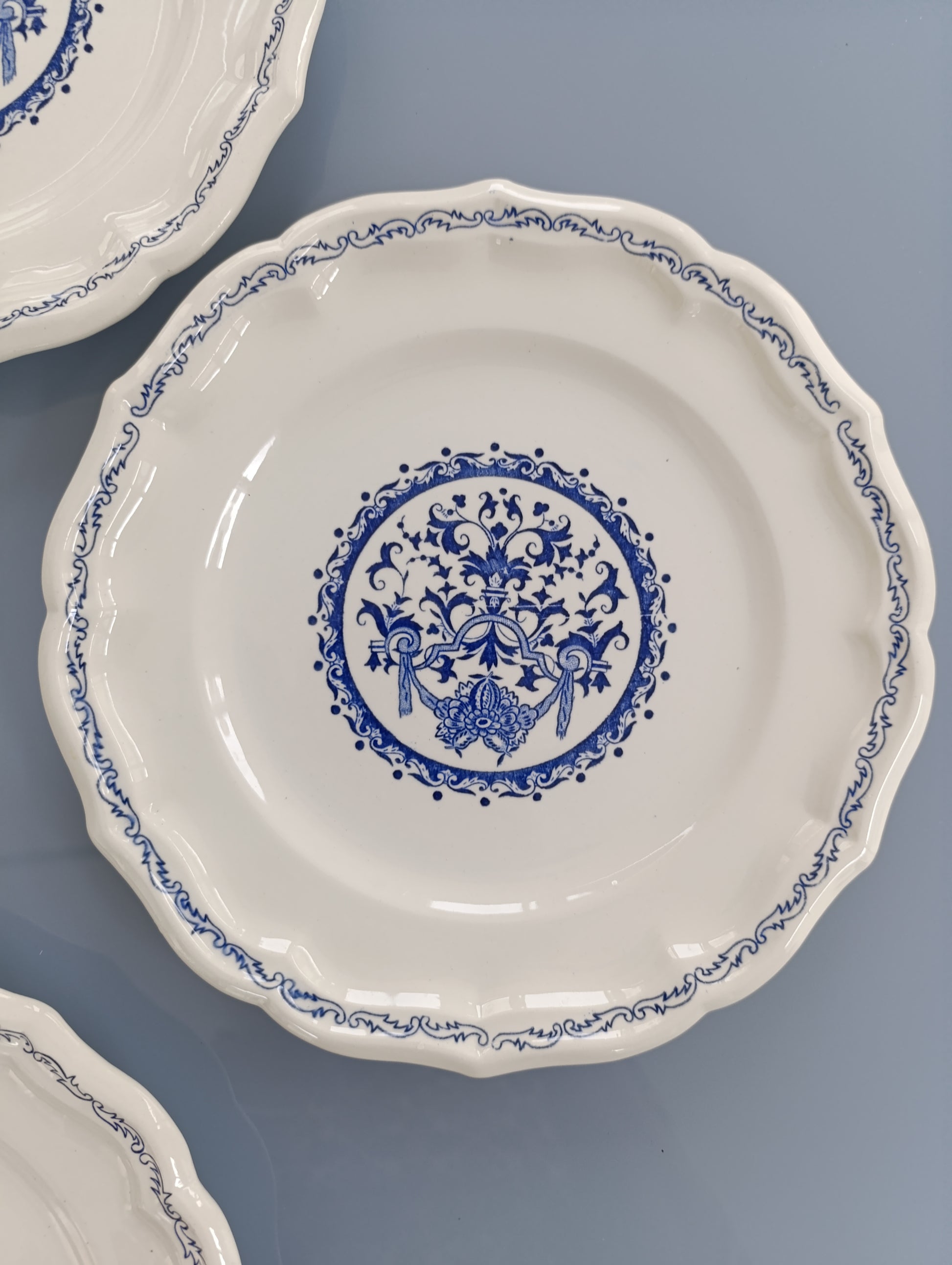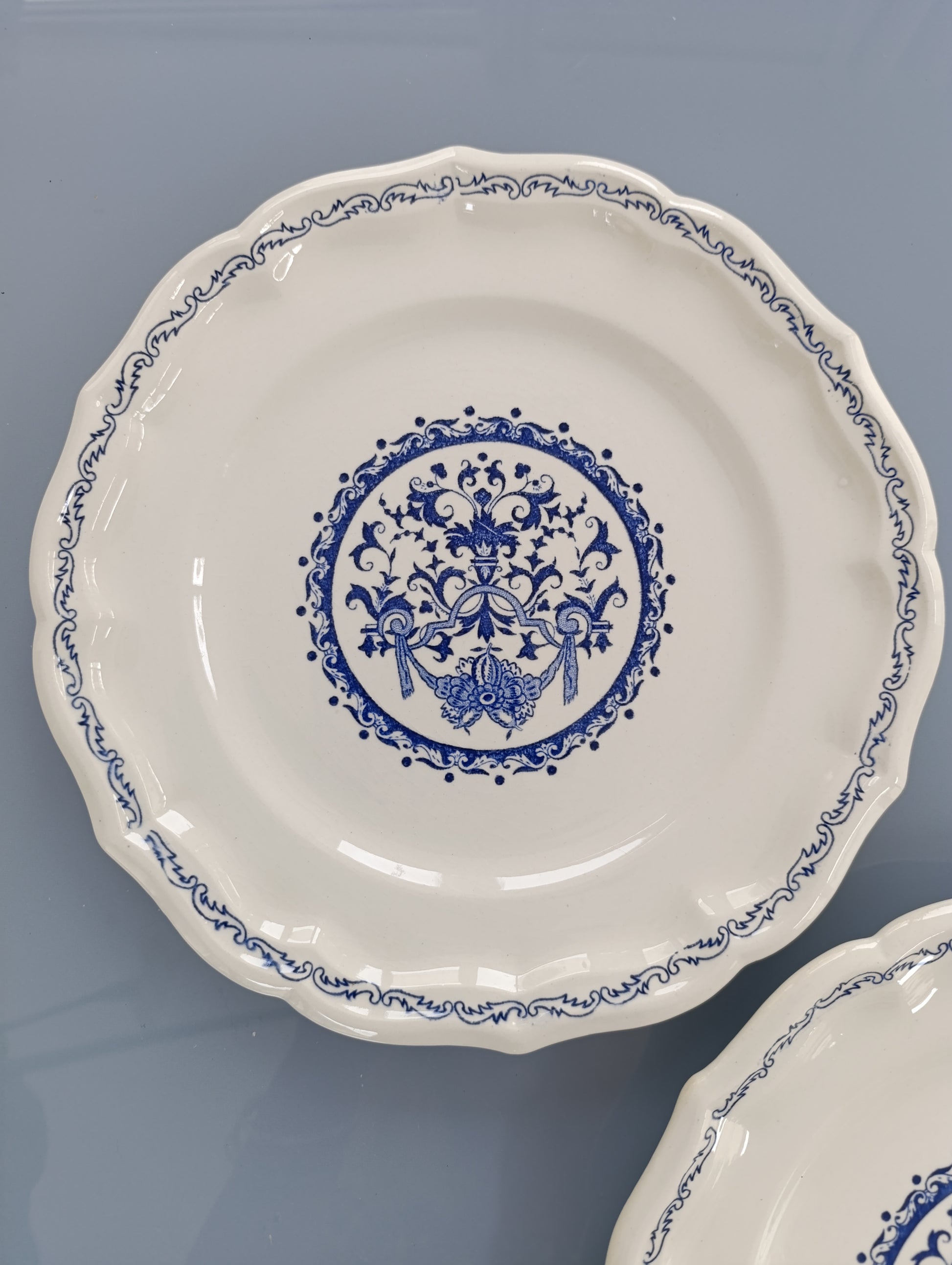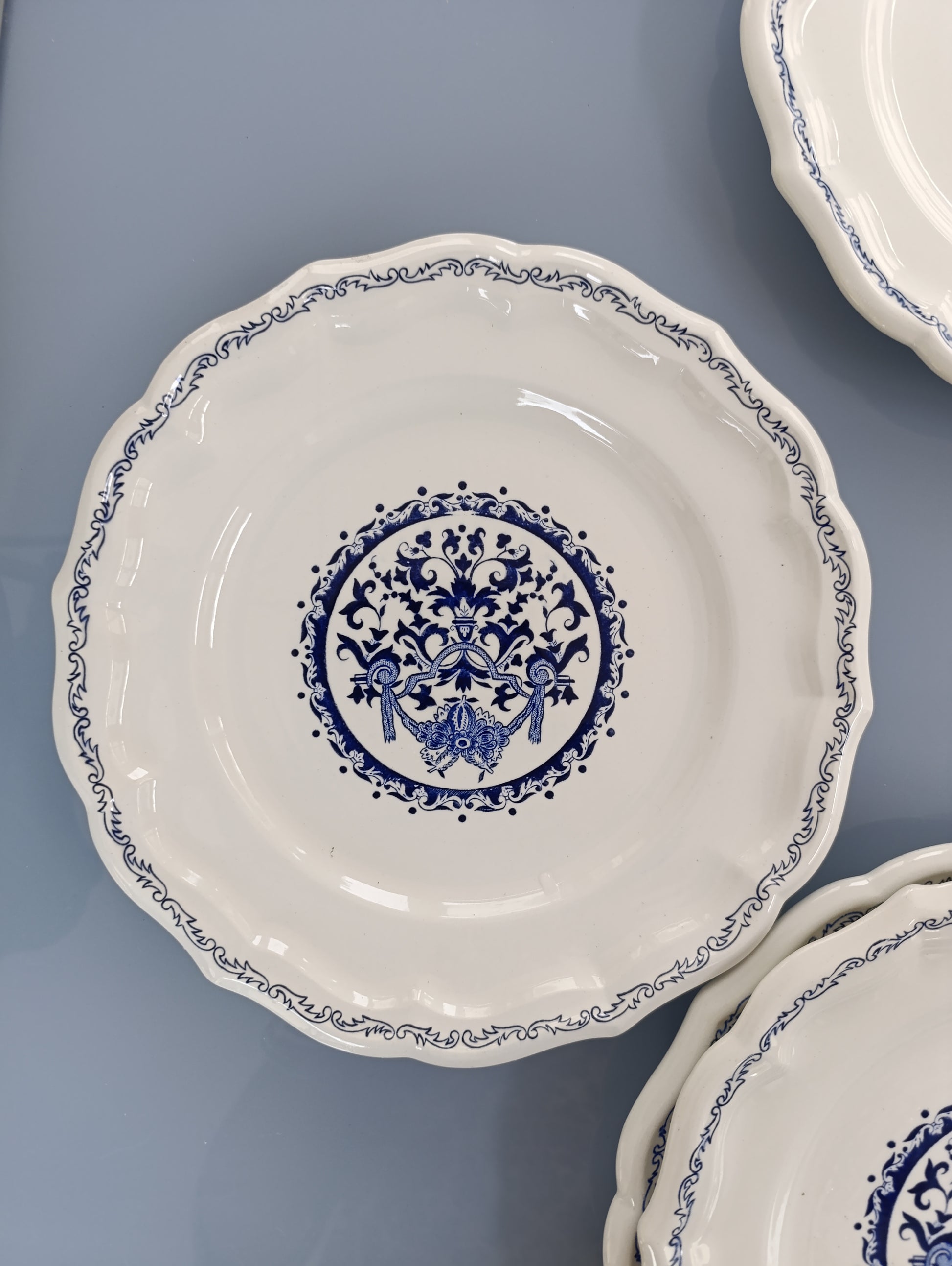 Assiette en terre de fer bleu Gien modèle Rouen décoré de rosace et