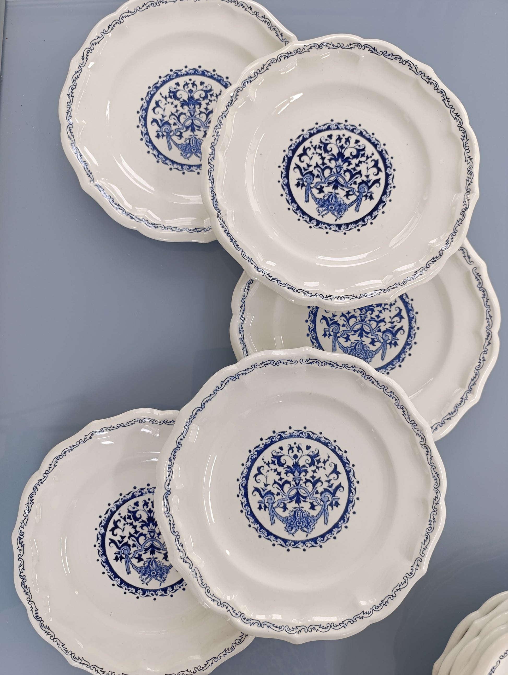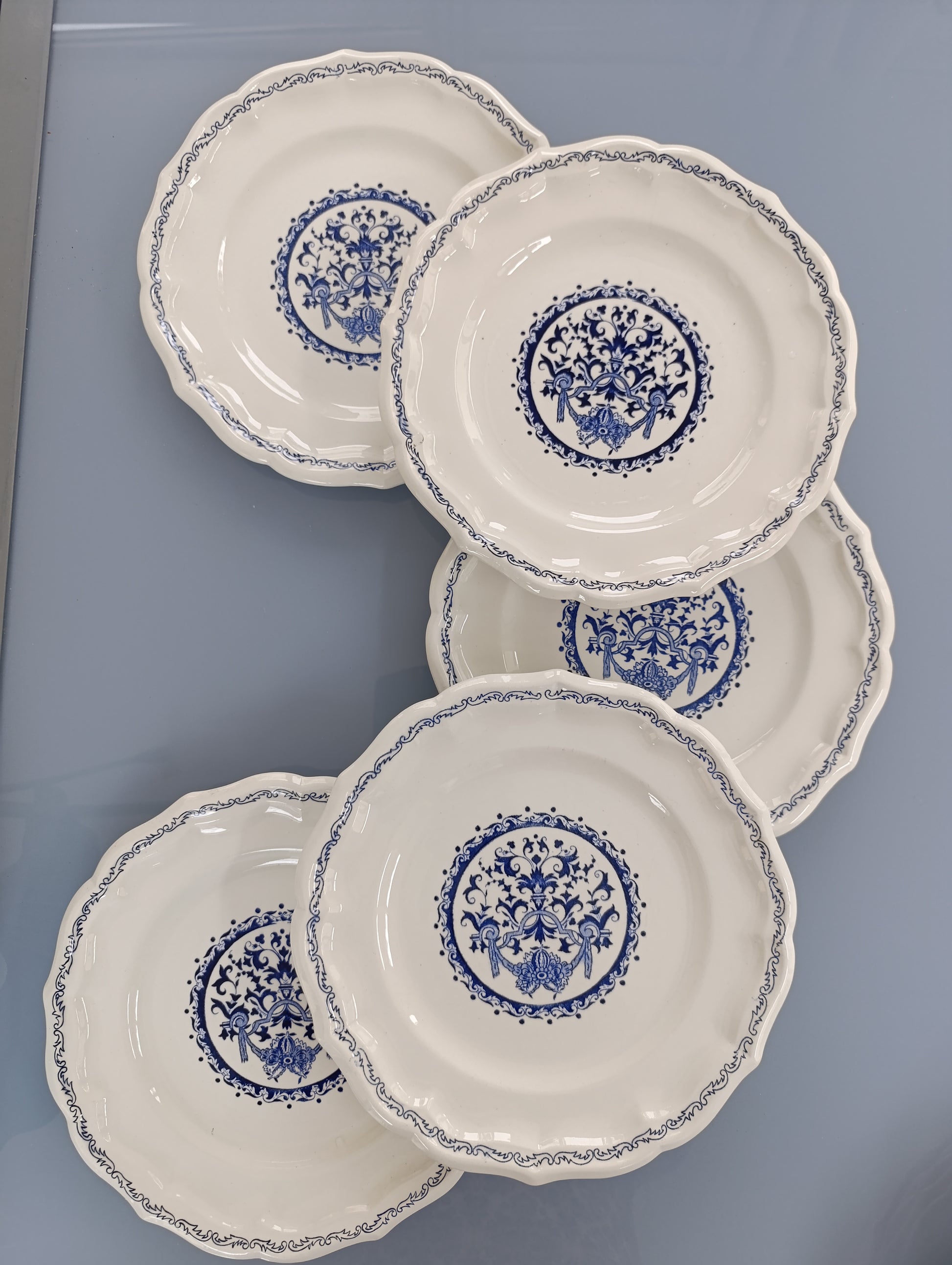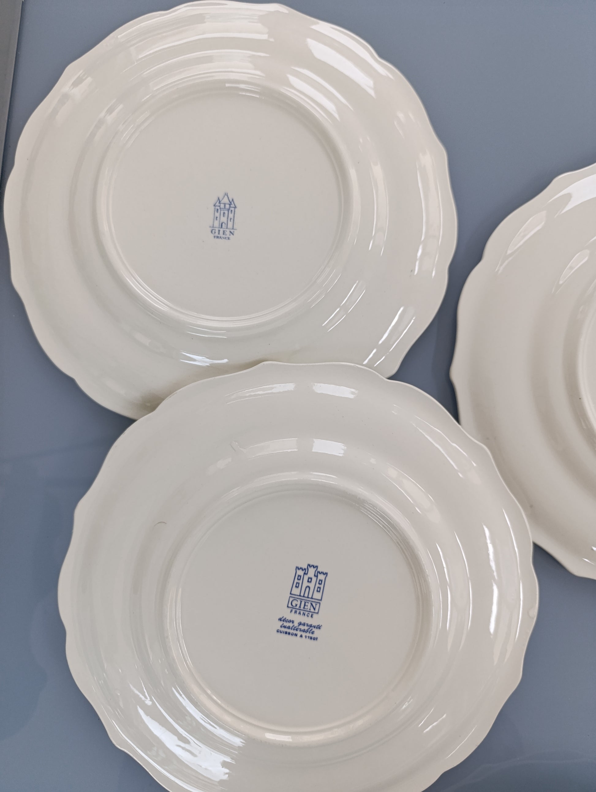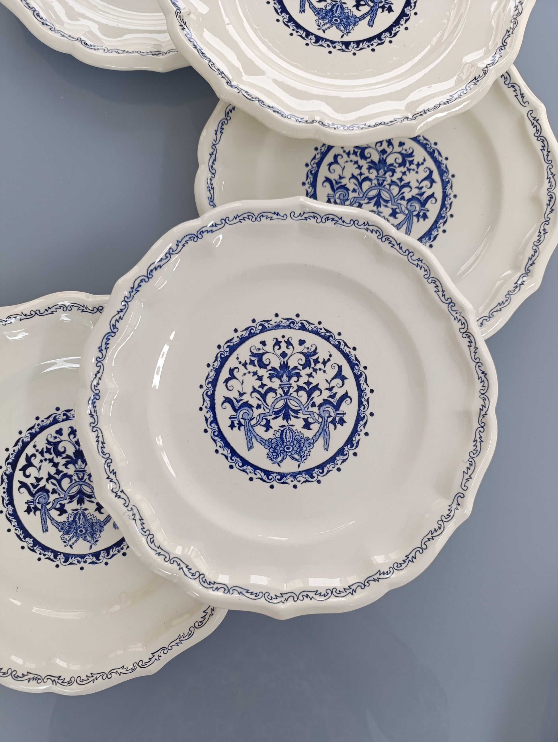 Assiette en terre de fer bleu Gien modèle Rouen décoré de rosace et