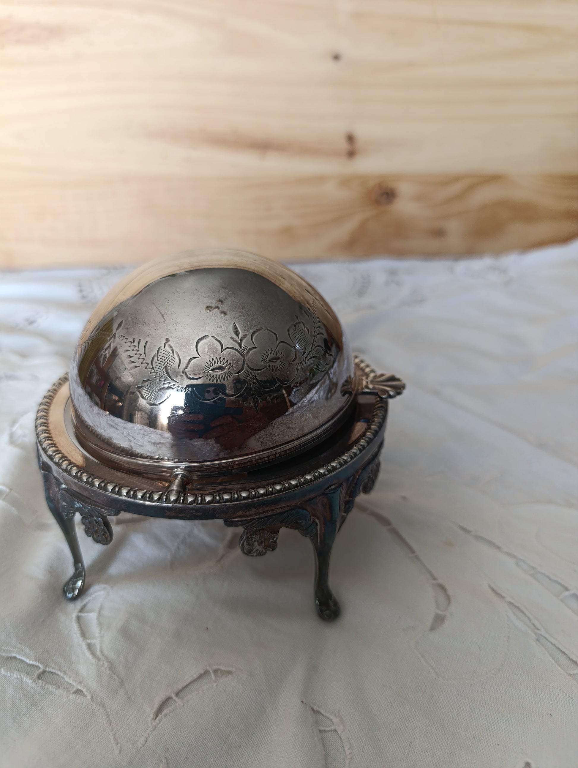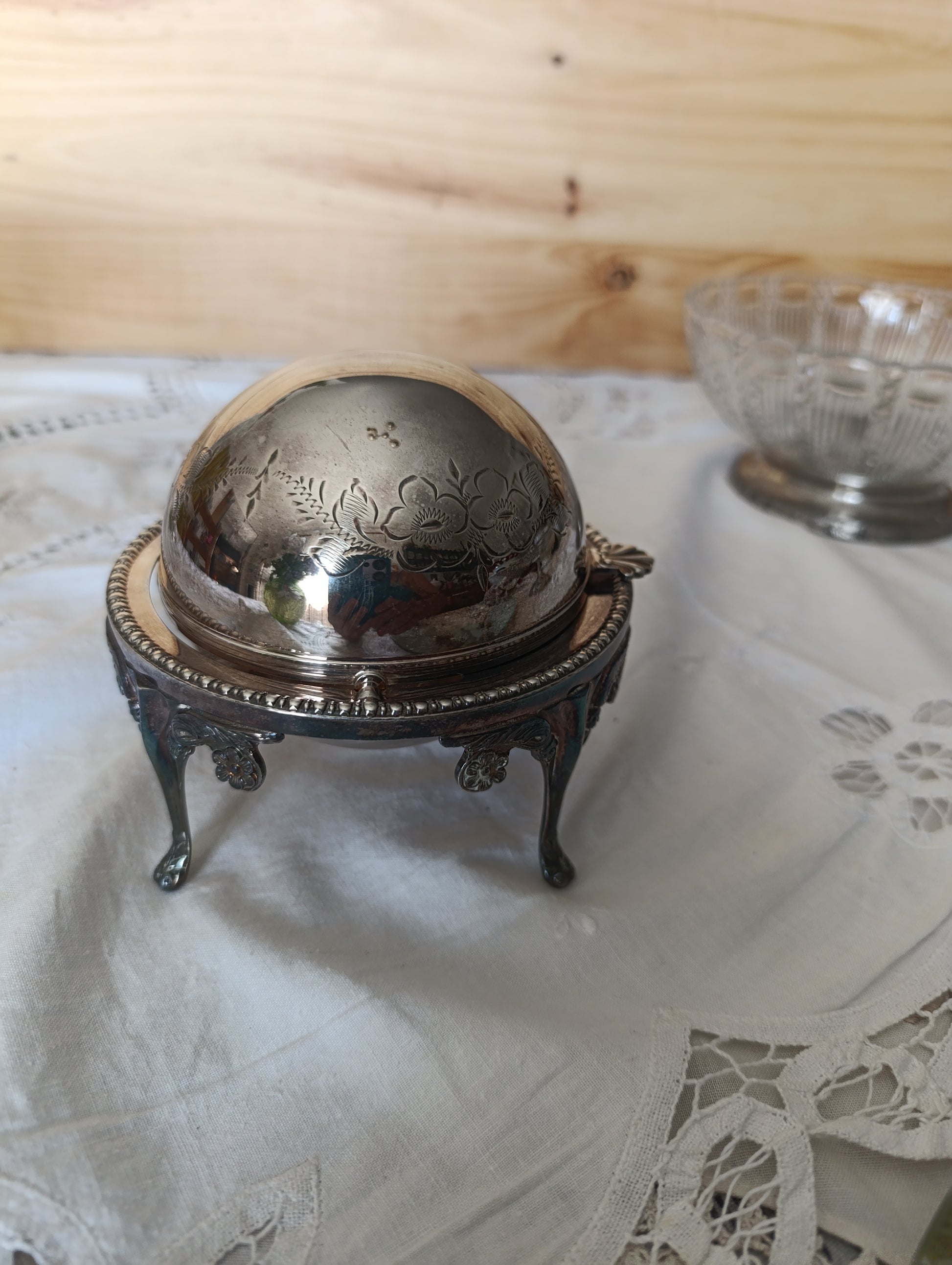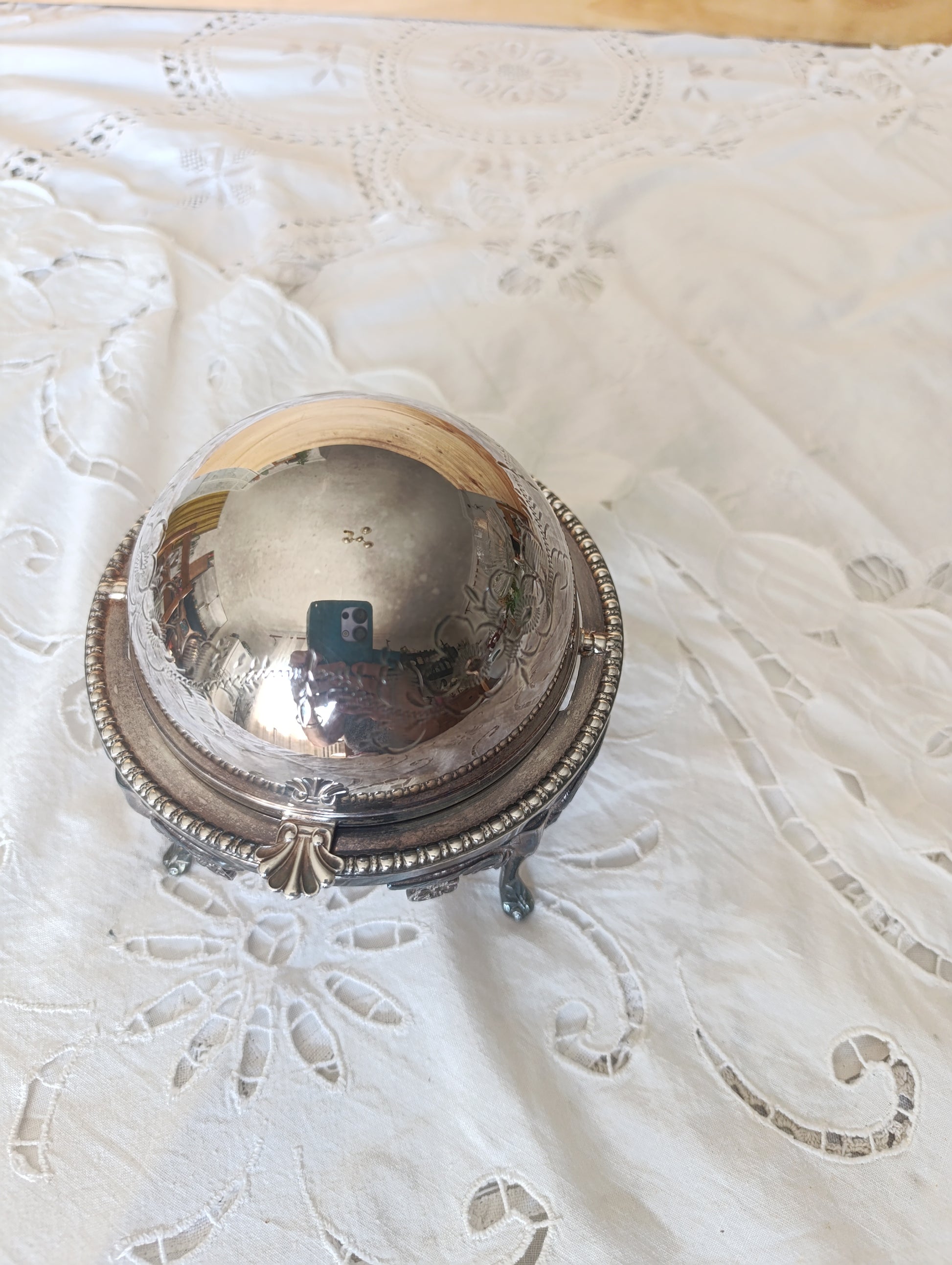 Petit dôme à caviar ou beurrier datant de l' époque victorienne marque silver plated made in England