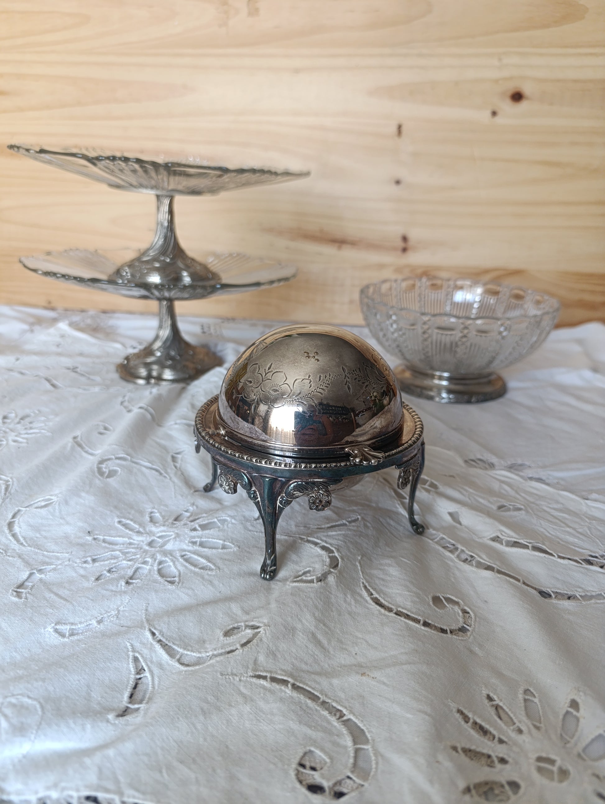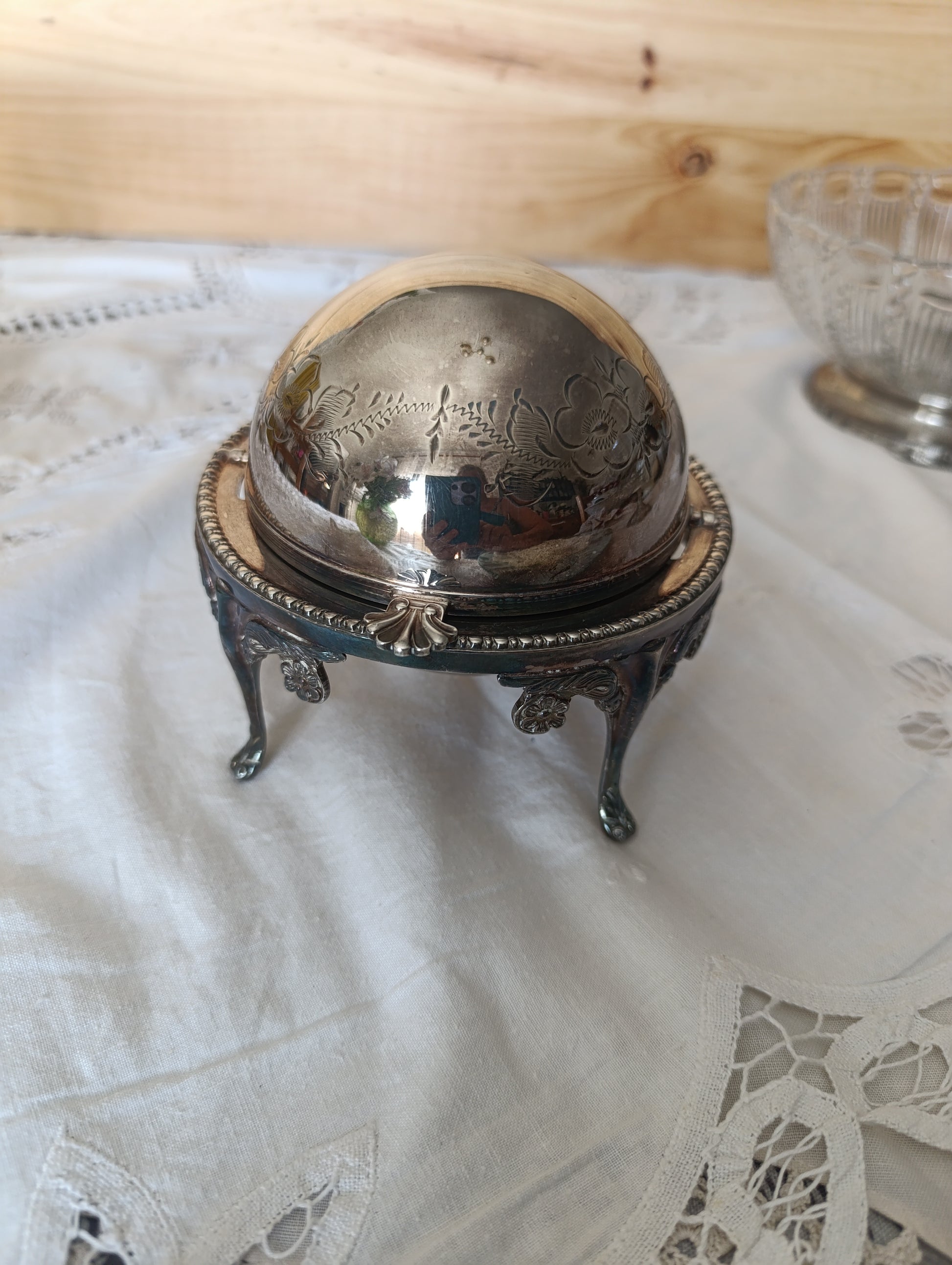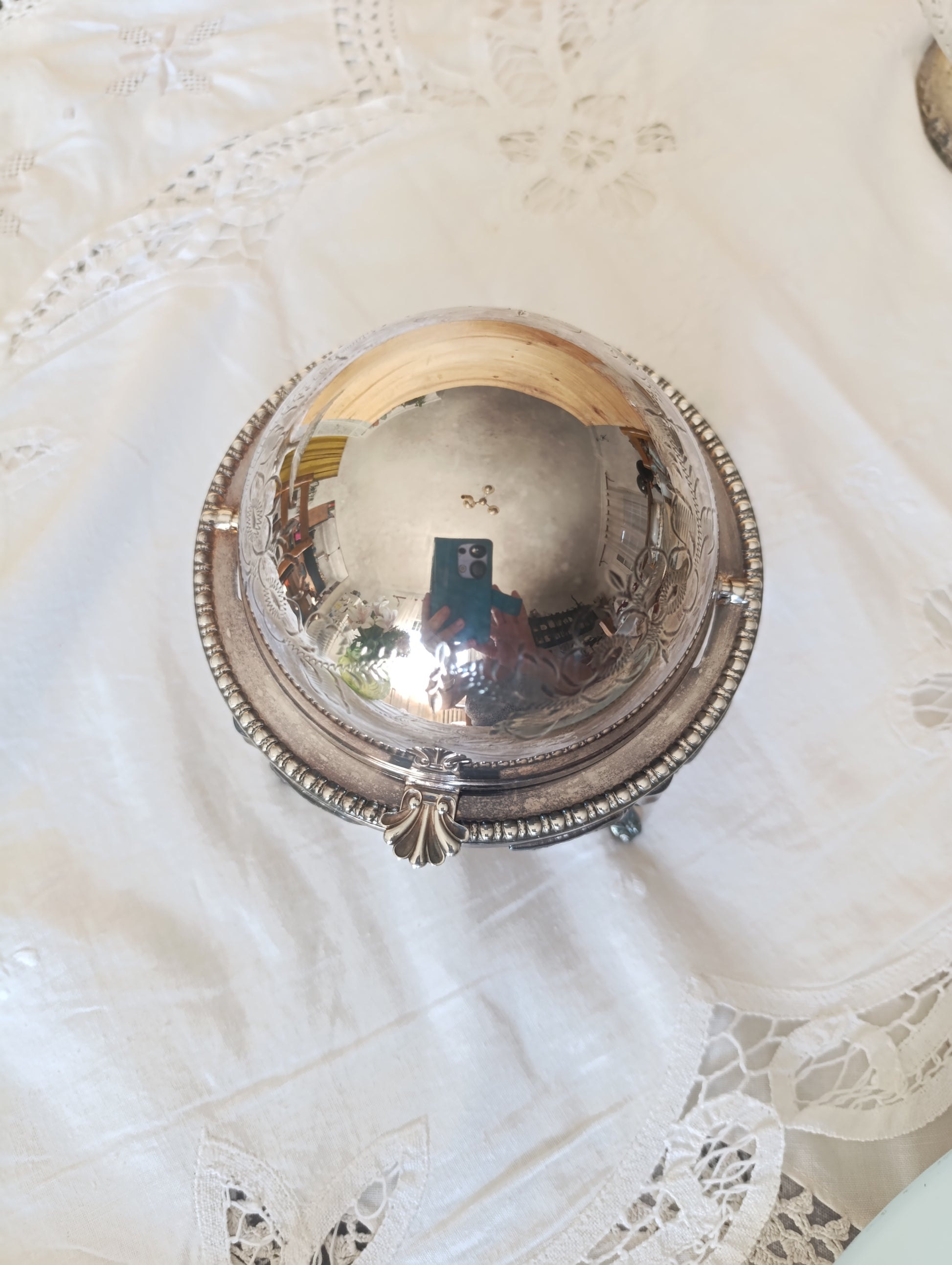Petit dôme à caviar ou beurrier datant de l' époque victorienne marque silver plated made in England