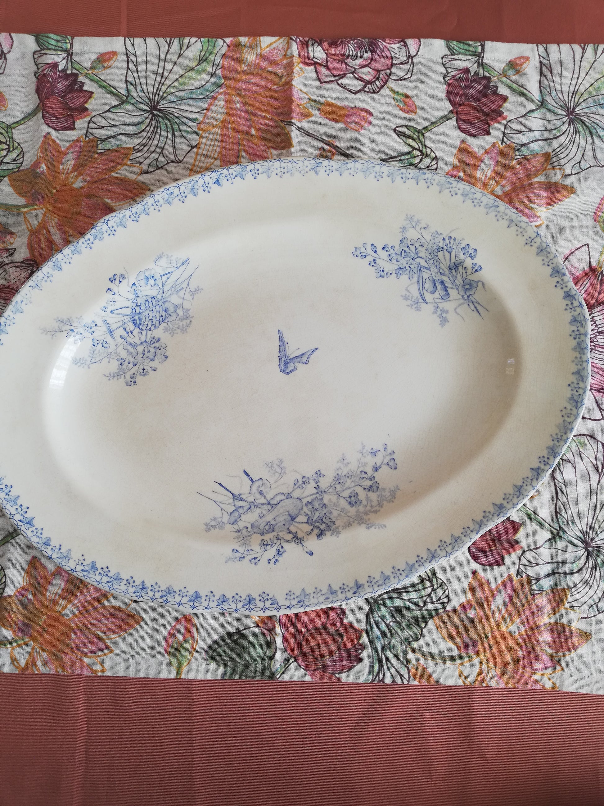 Grand plat oval en terre de fer modèle Moisson de la faiencerie d Onnaing