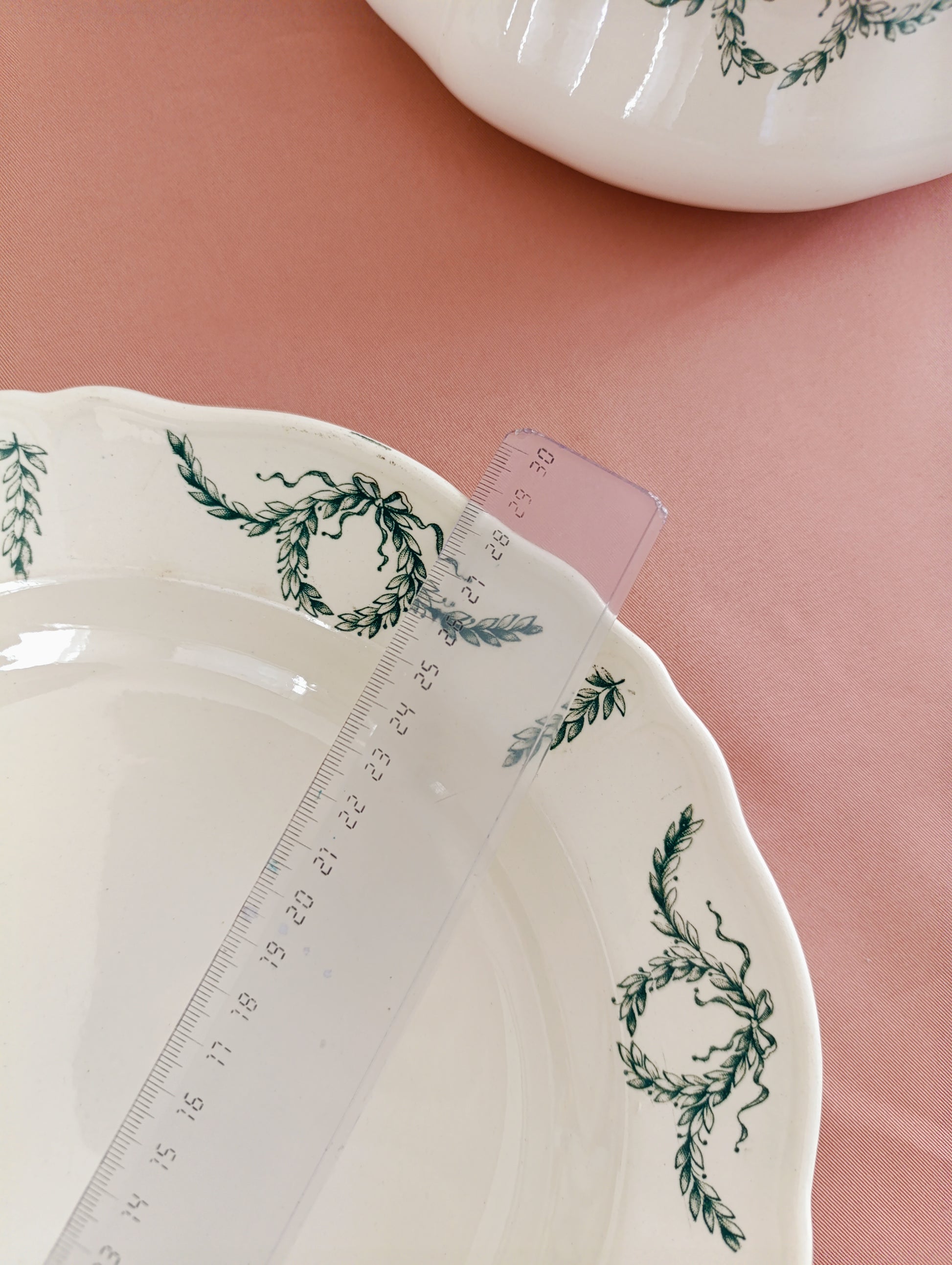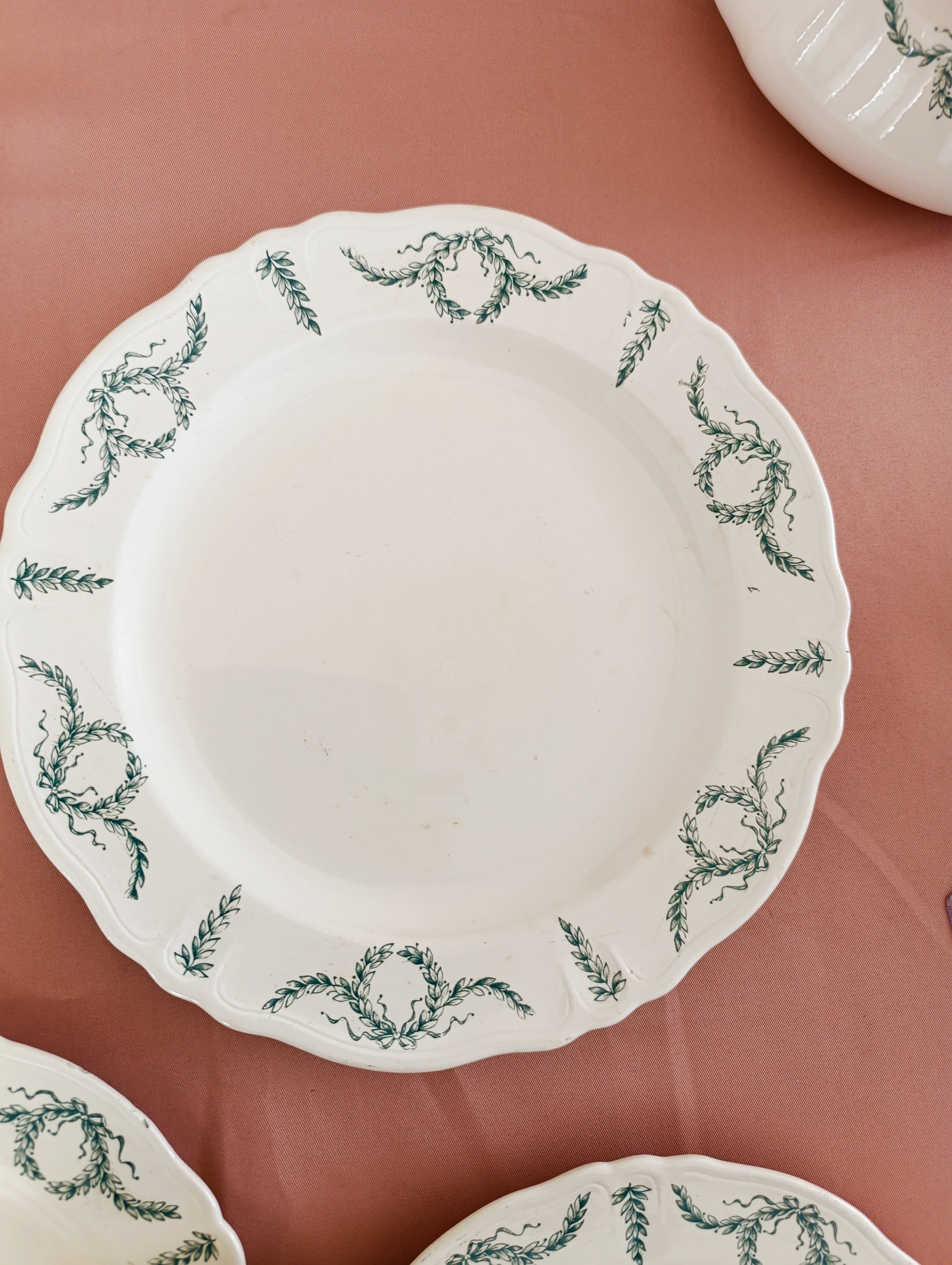 Plat rond et creux modèle Villey de Longchamp en terre de fer motif couleur vert