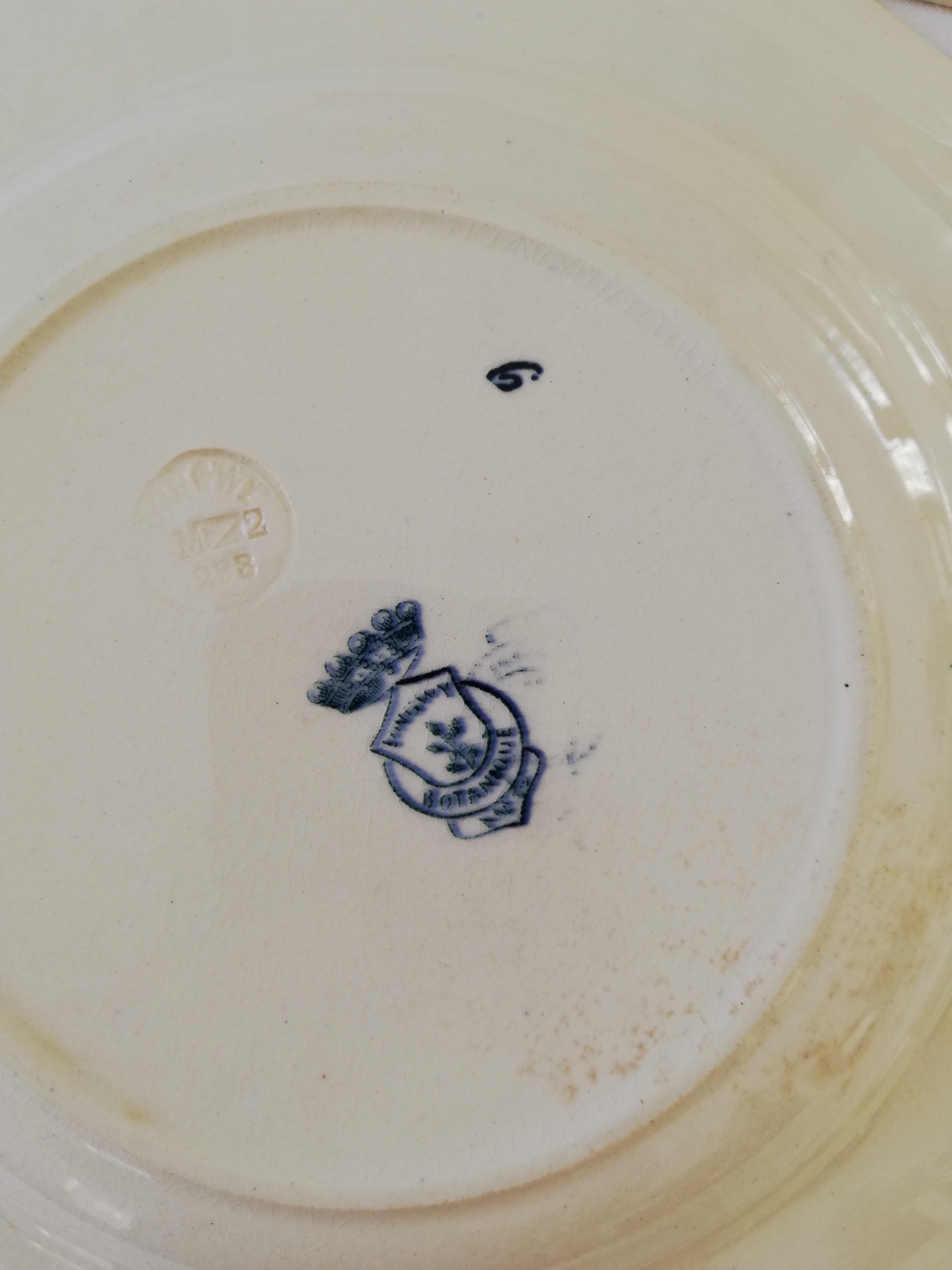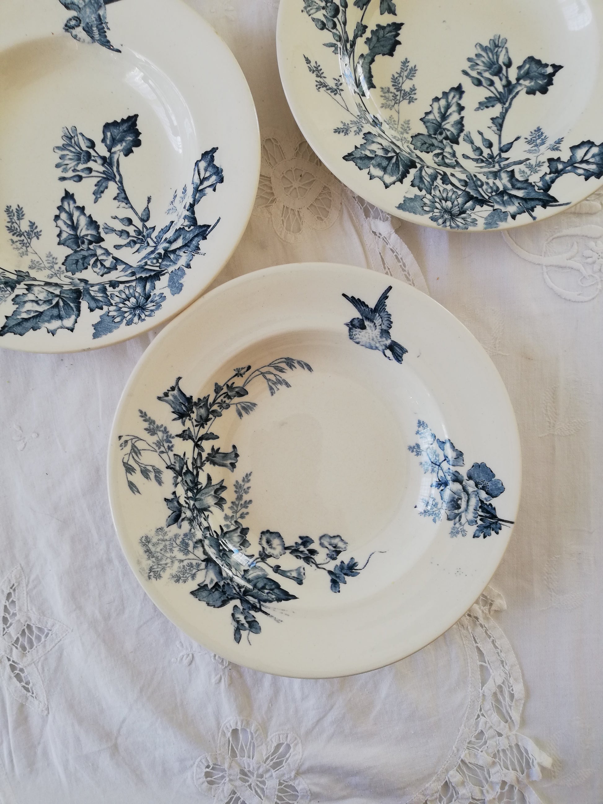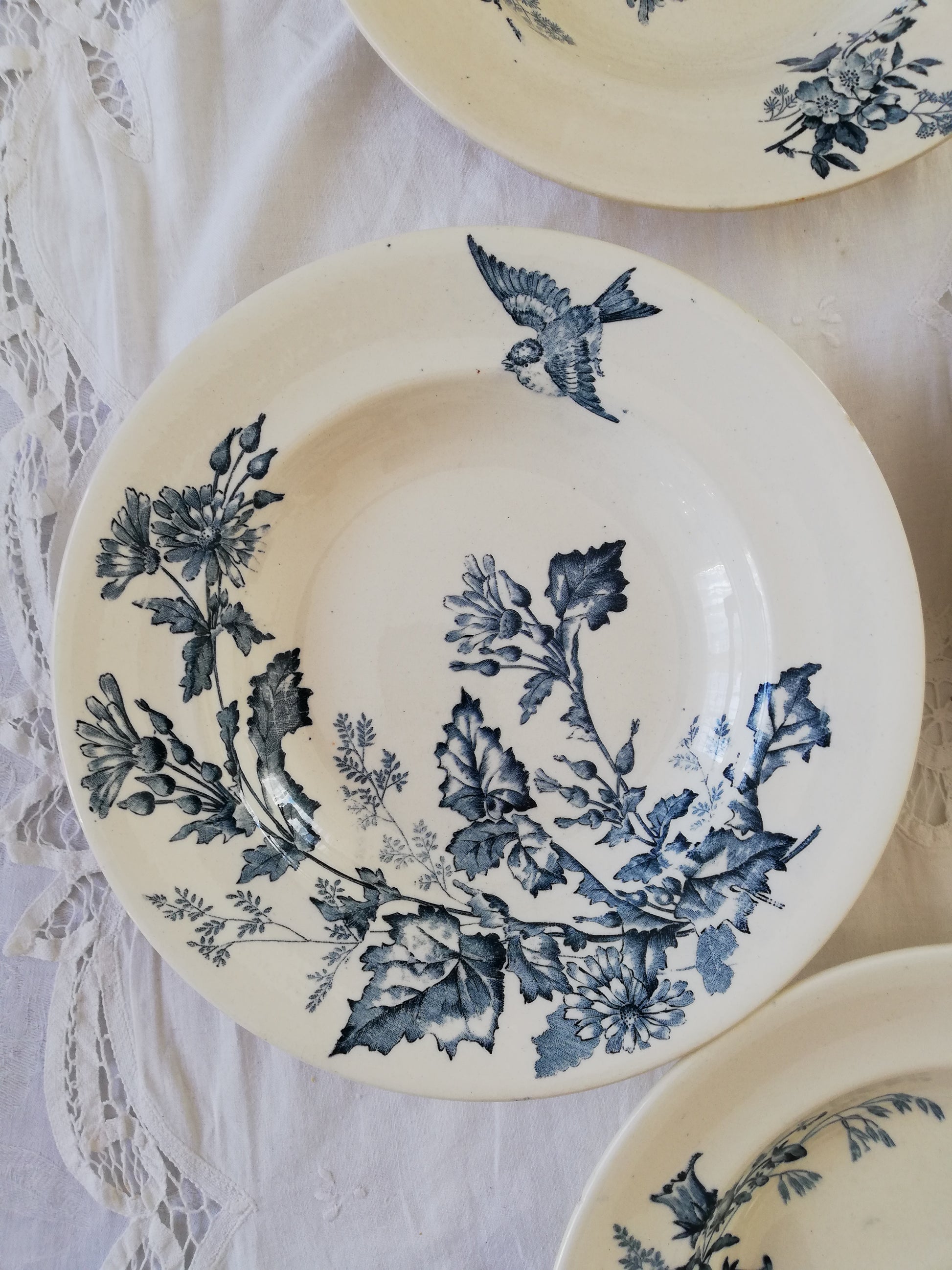 Assiette creuse modèle Botanique de la faiencerie de Longwy décoré d oiseau ou de papillon