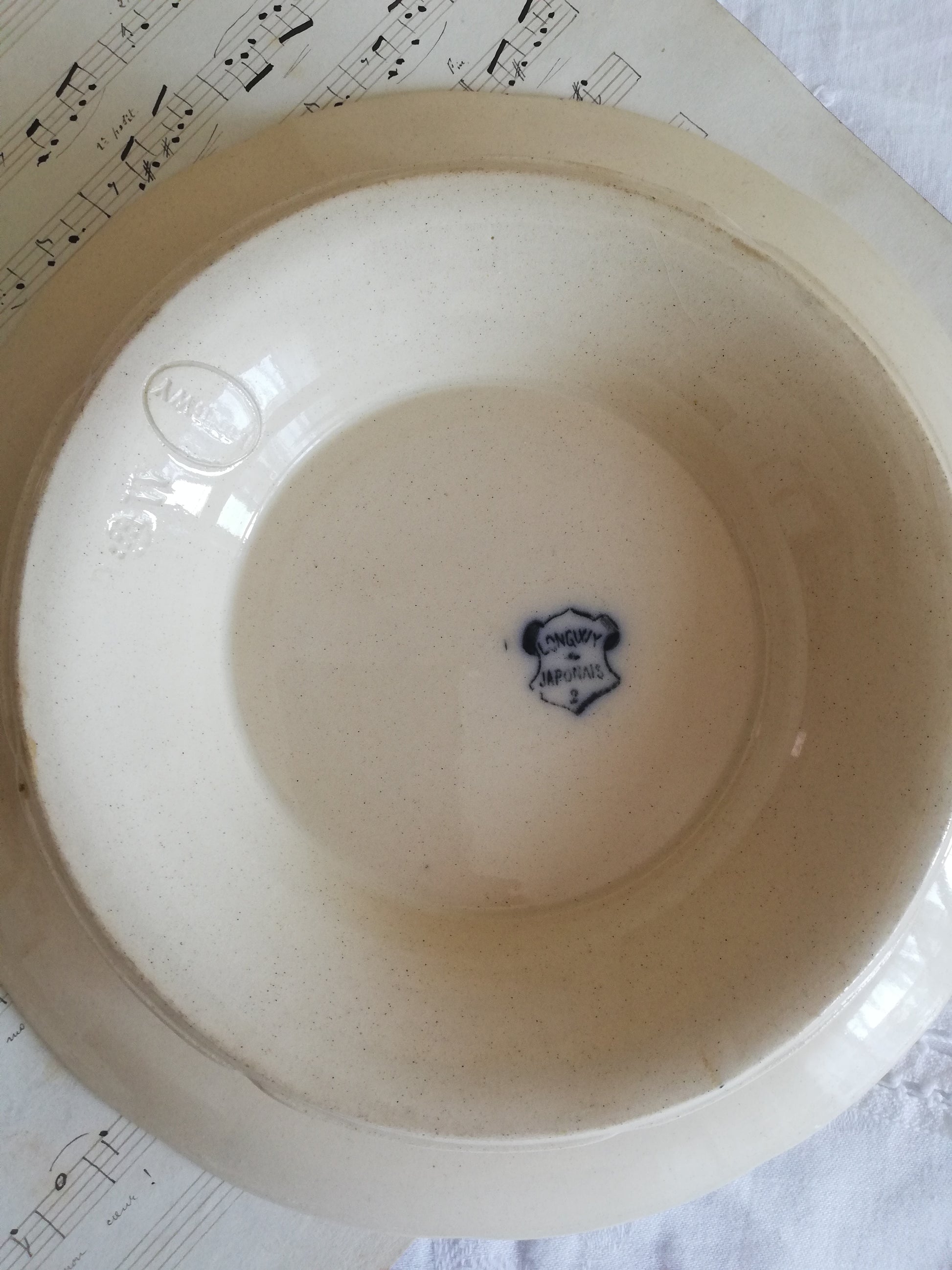 Compotier bas en terre de fer modèle japonais de la faïencerie de Longwy époque fin 19e