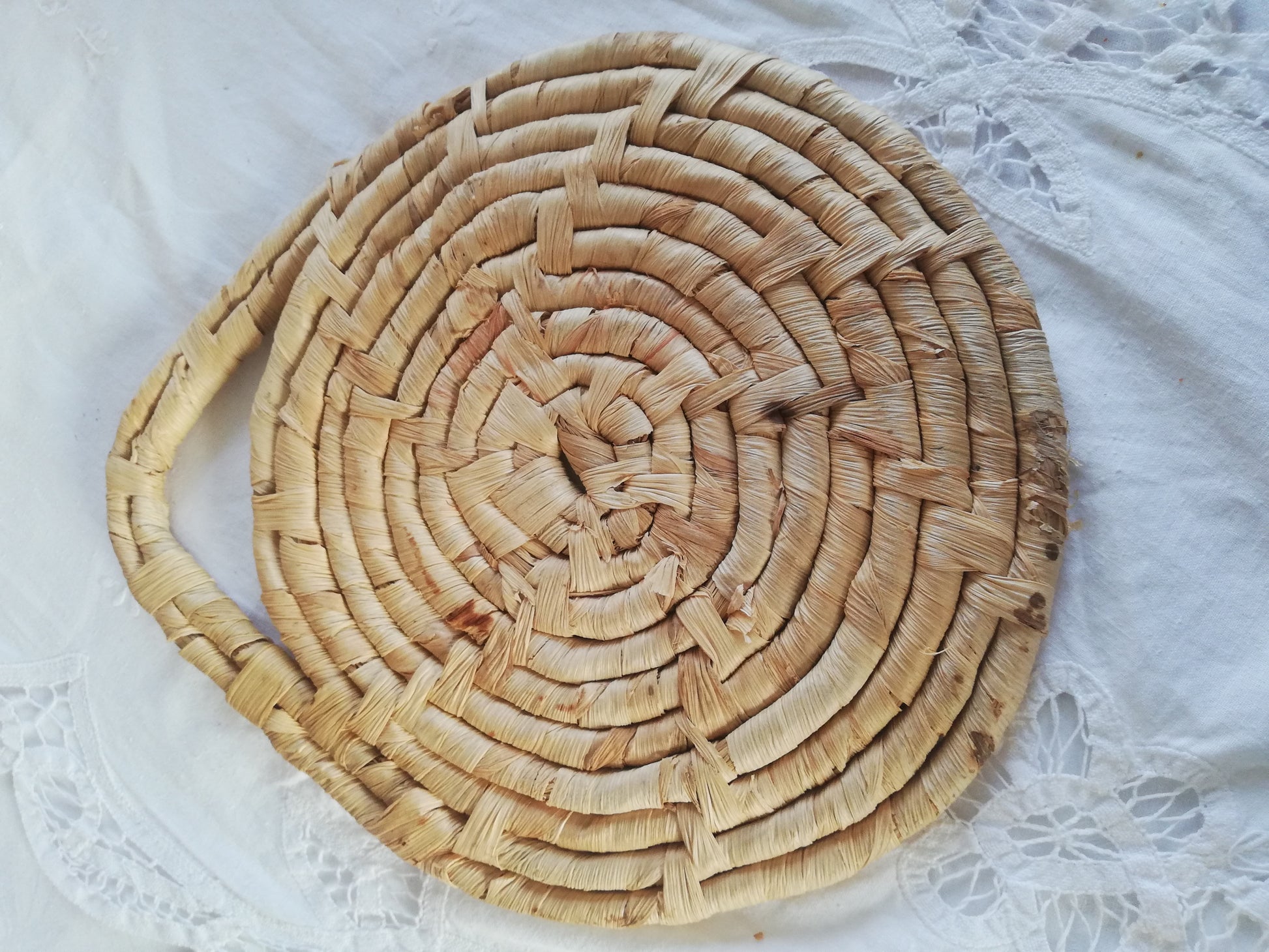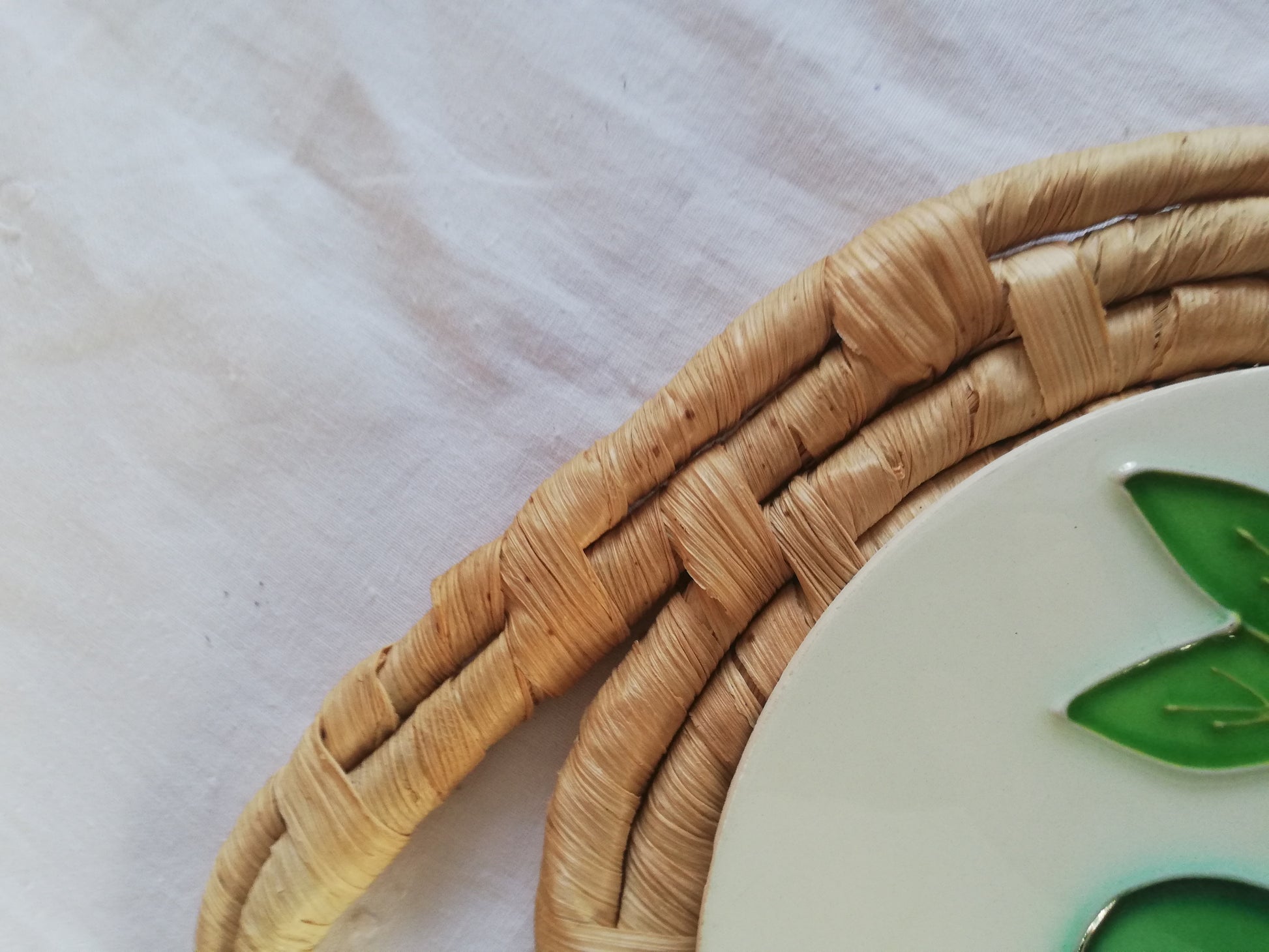 Dessous de plat vintage en raffia et céramique