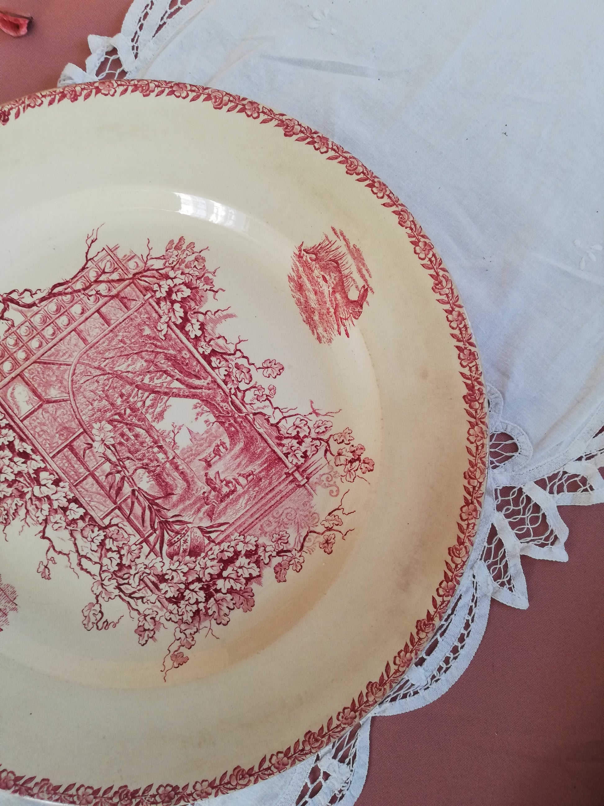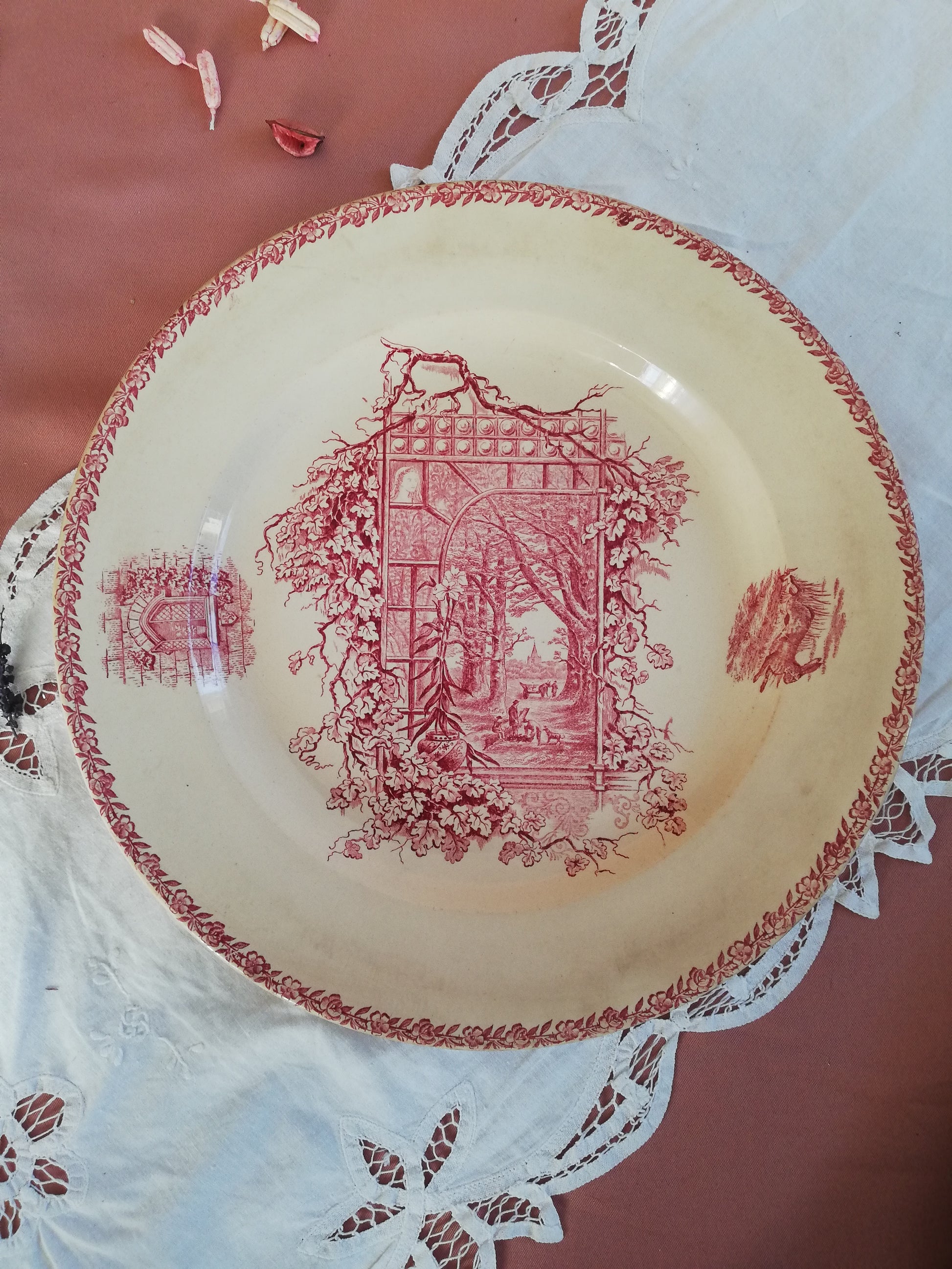 Plat rond Pexonne œdème Campagne en terre de fer rose