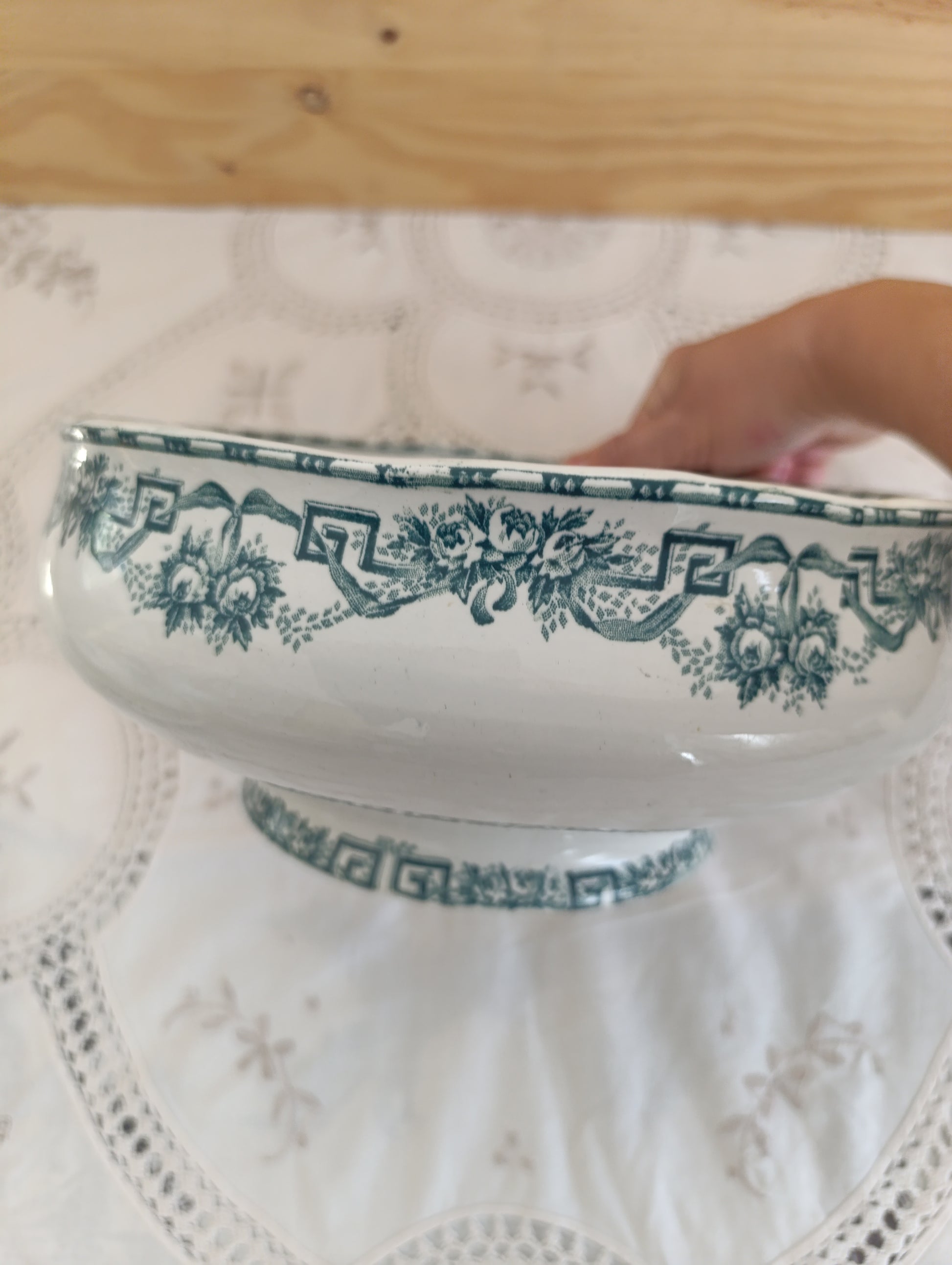 Maladie en terre de fer vert modèle Athènes de la manufacture Saint-Amand moulin des loups